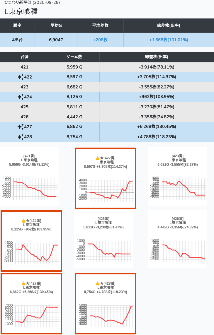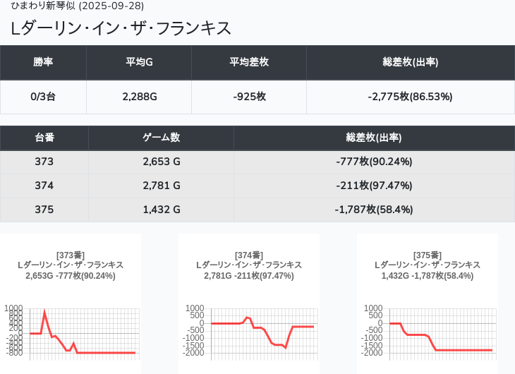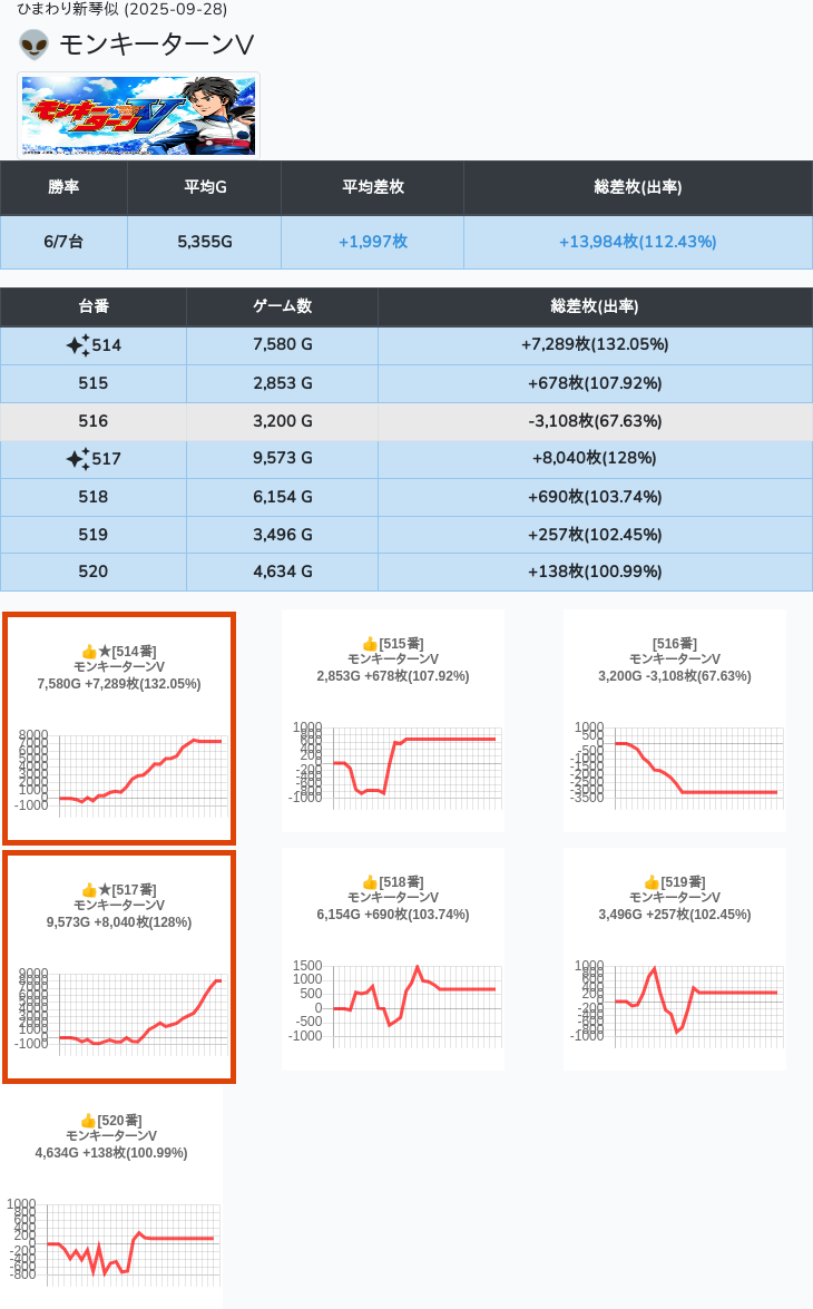 【オンサロ要望】 9月28日 ひまわり新琴似 +24,942枚 Lいざ!番長 3/4台 スマスロ北斗 9/16台 モンキーターンV 6/7台