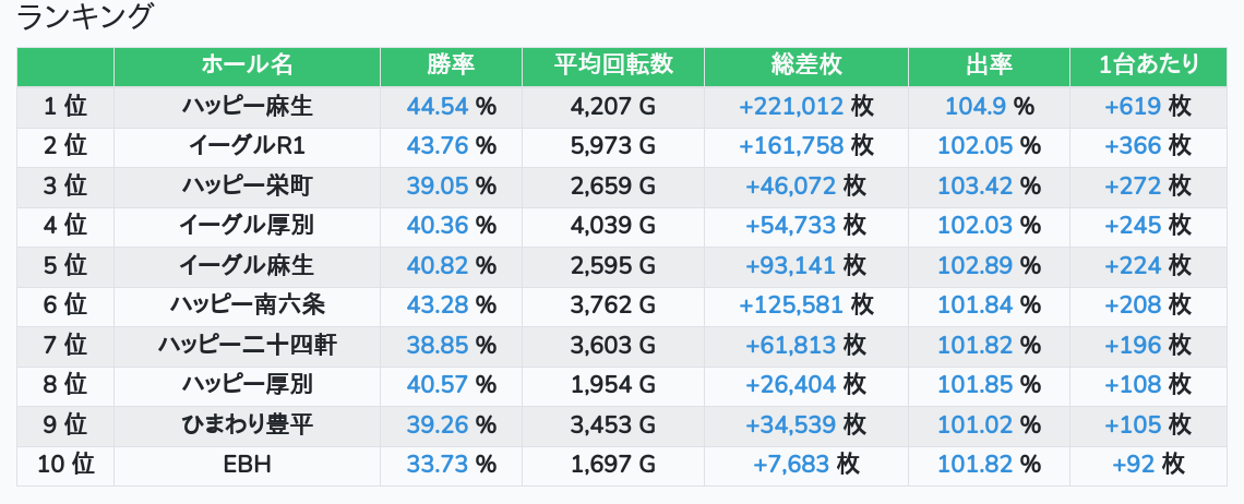 札幌ランキングの簡易データ 2025-10-07