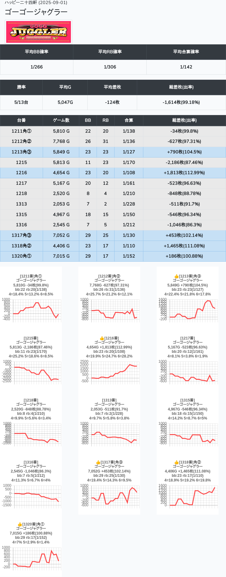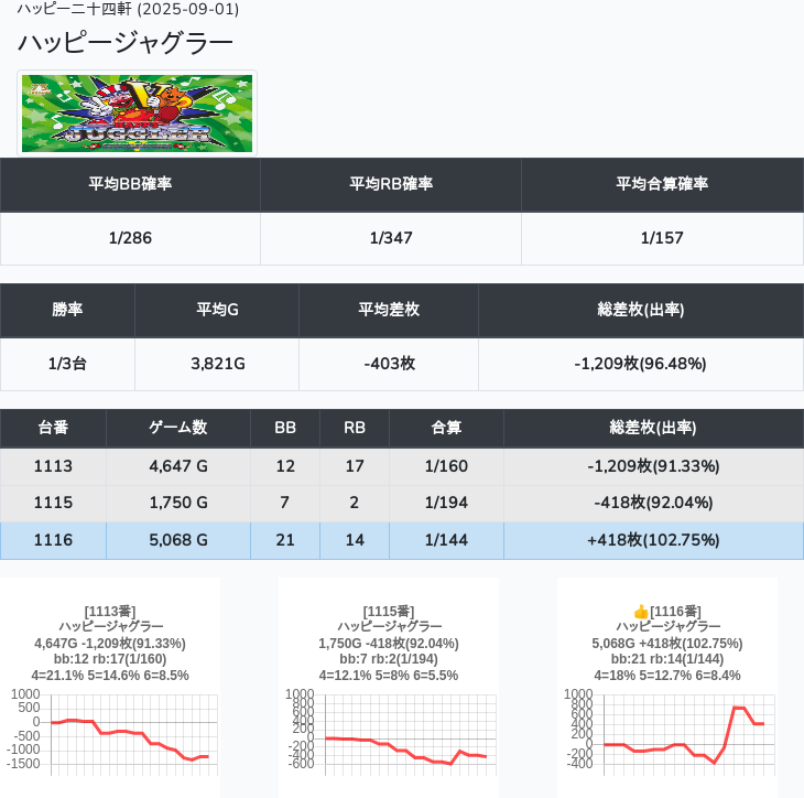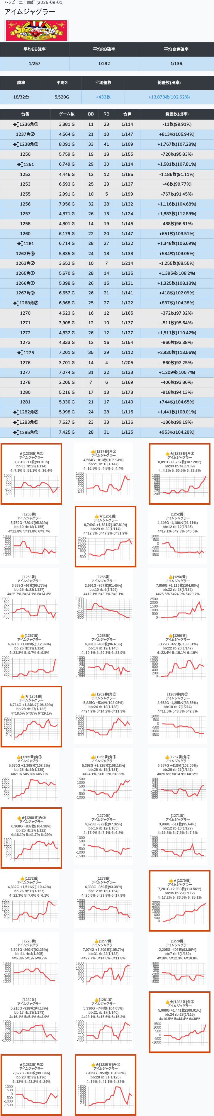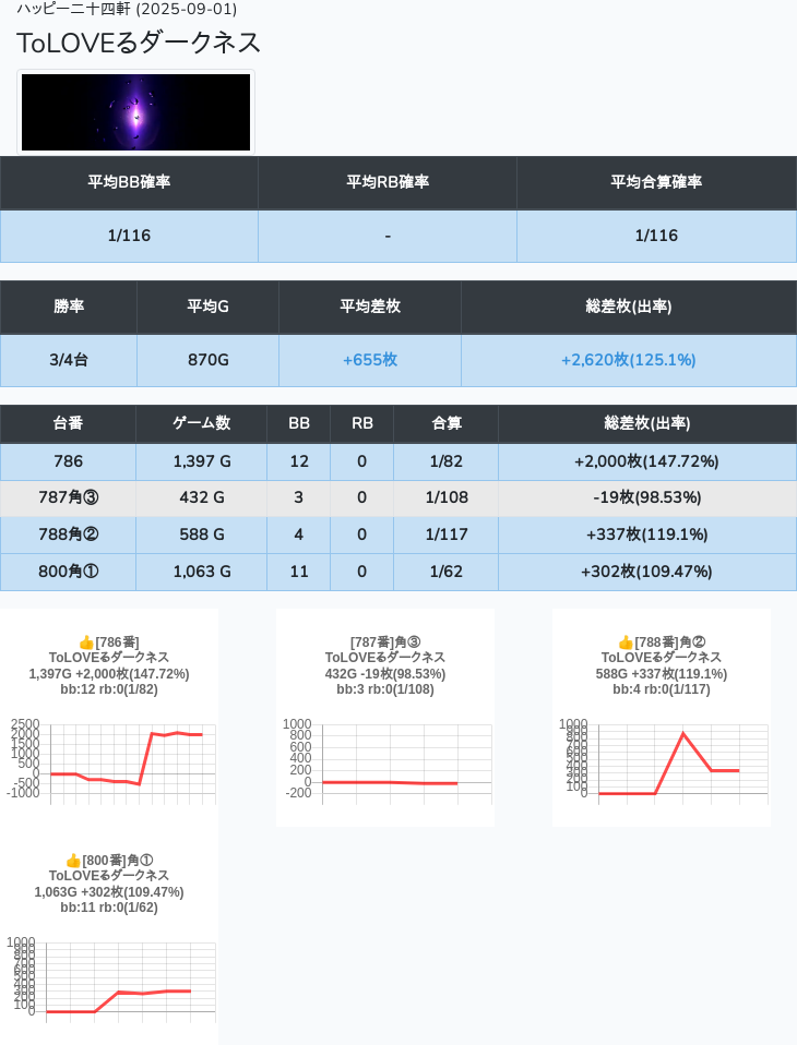【オンサロ要望】 9月1日 ハッピー二十四軒 +40,932枚 アイムジャグラー 18/32台 防振り 3/4台 ToLOVEるダークネス 3/4台