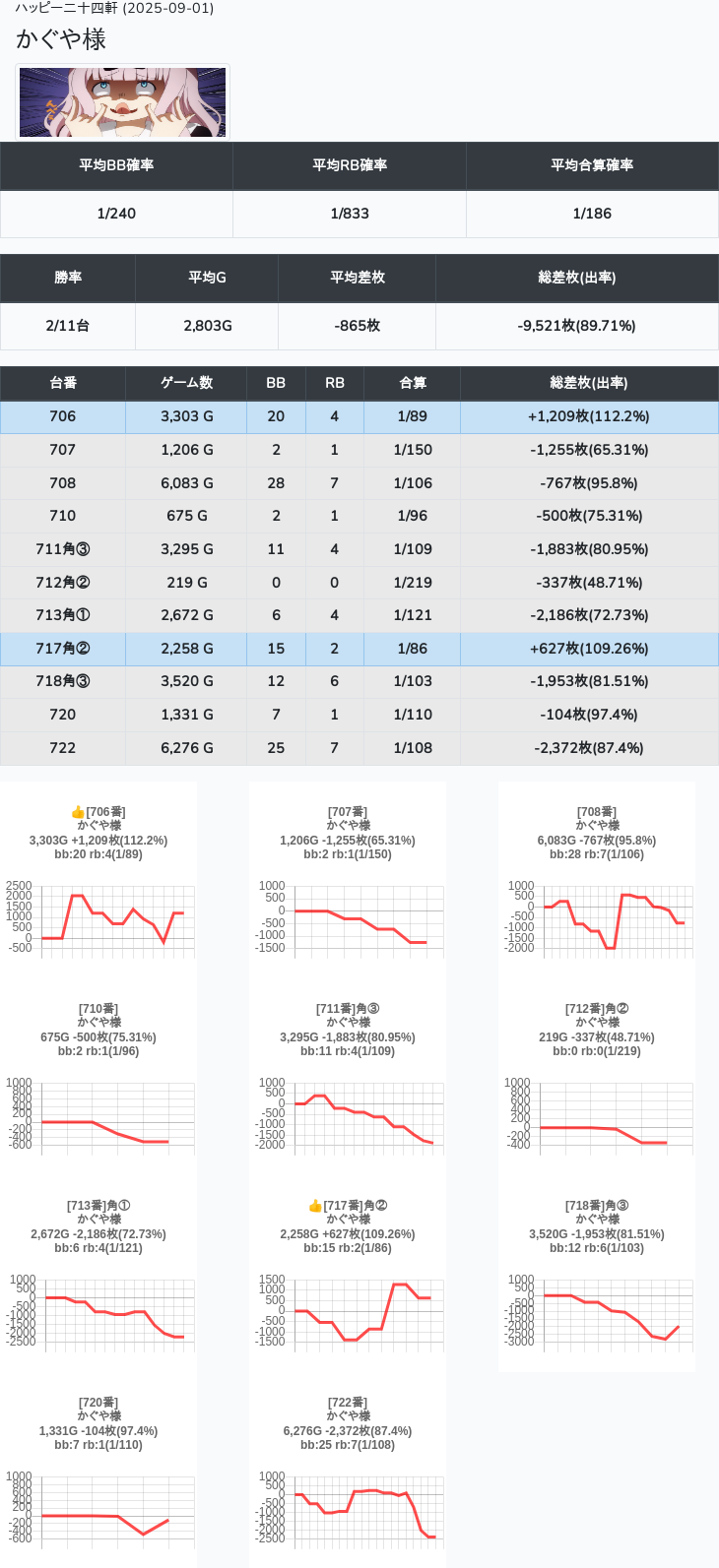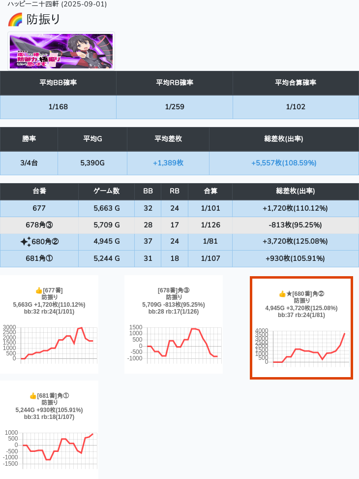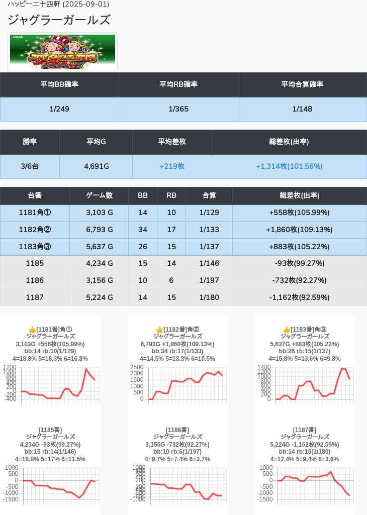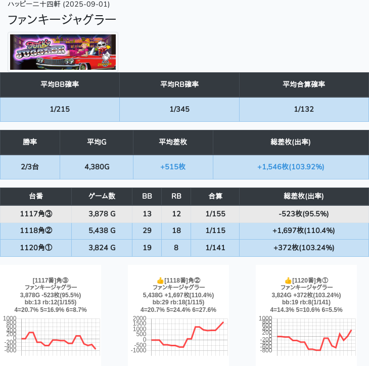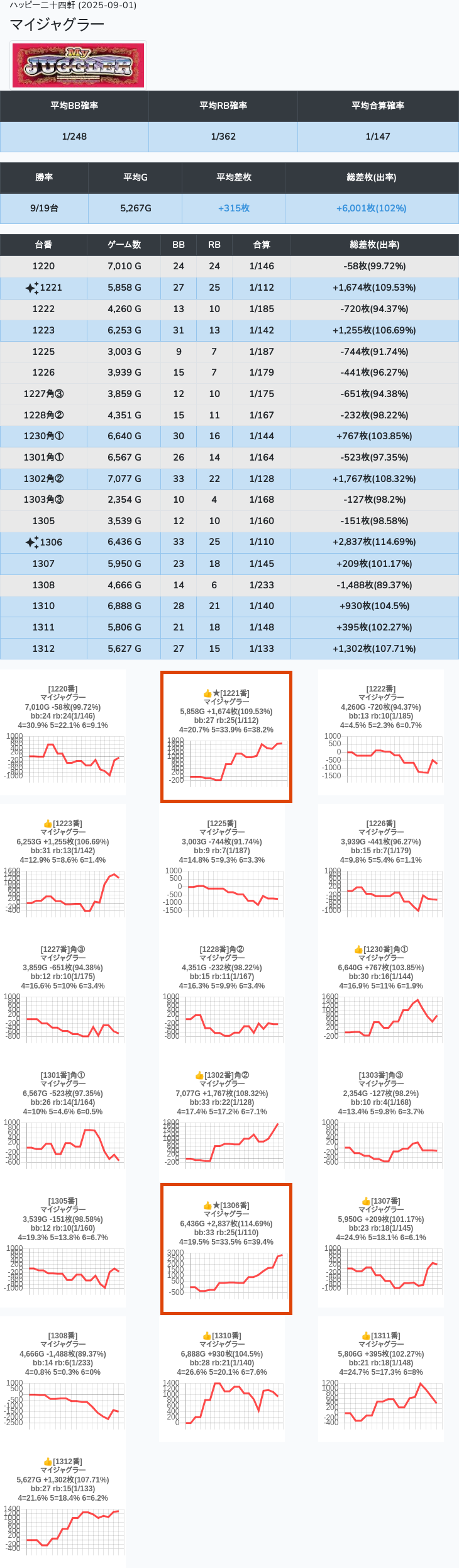 【オンサロ要望】 9月1日 ハッピー二十四軒 +40,932枚 アイムジャグラー 18/32台 防振り 3/4台 ToLOVEるダークネス 3/4台