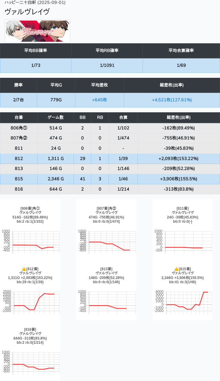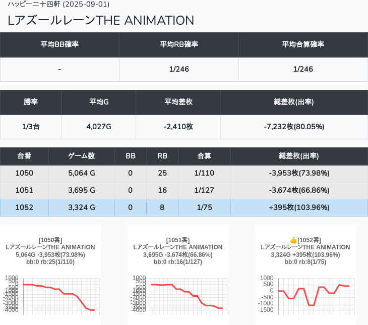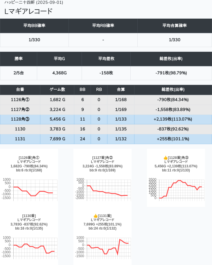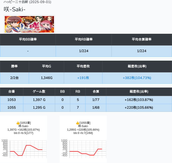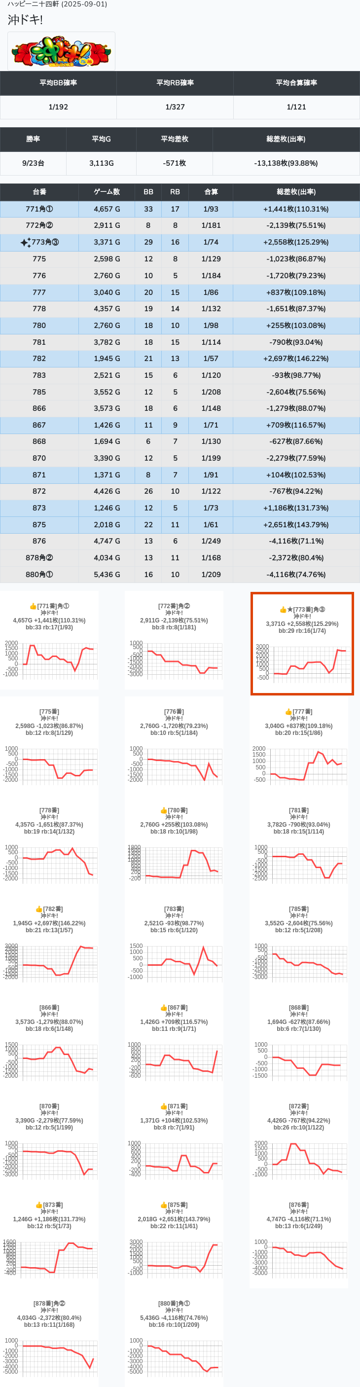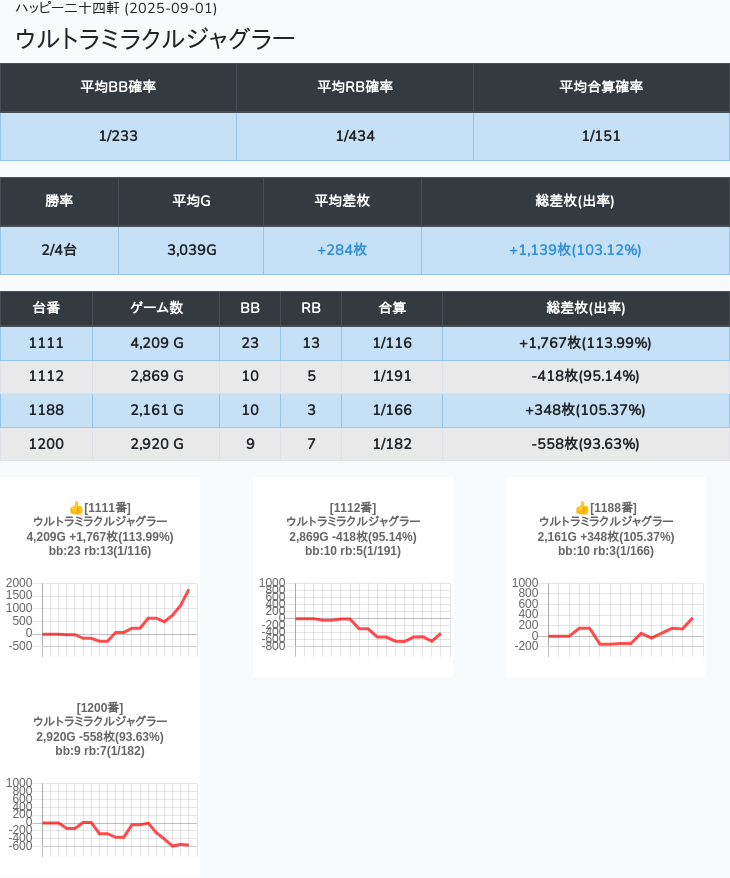 【オンサロ要望】 9月1日 ハッピー二十四軒 +40,932枚 アイムジャグラー 18/32台 防振り 3/4台 ToLOVEるダークネス 3/4台