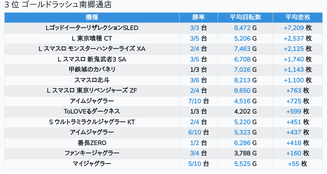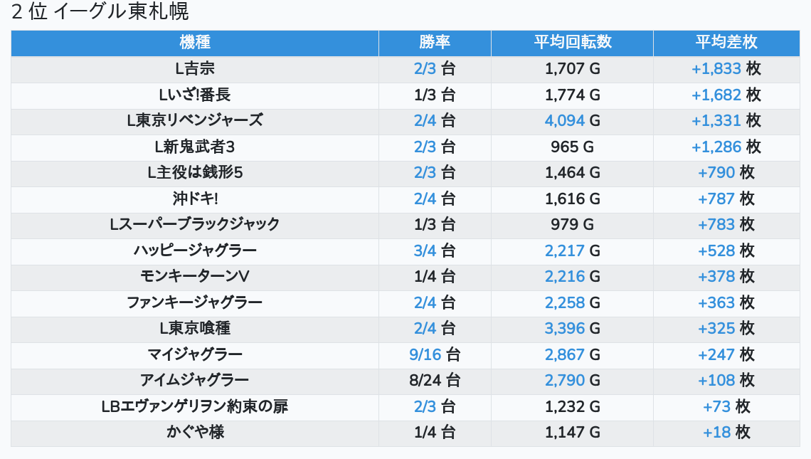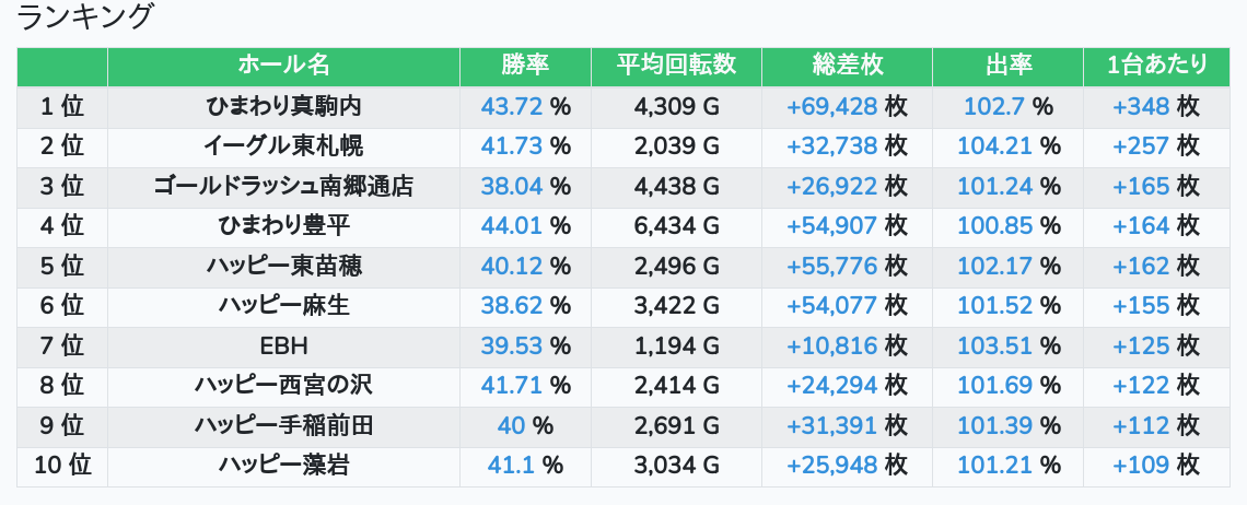 札幌ランキングの簡易データ 2025-10-20