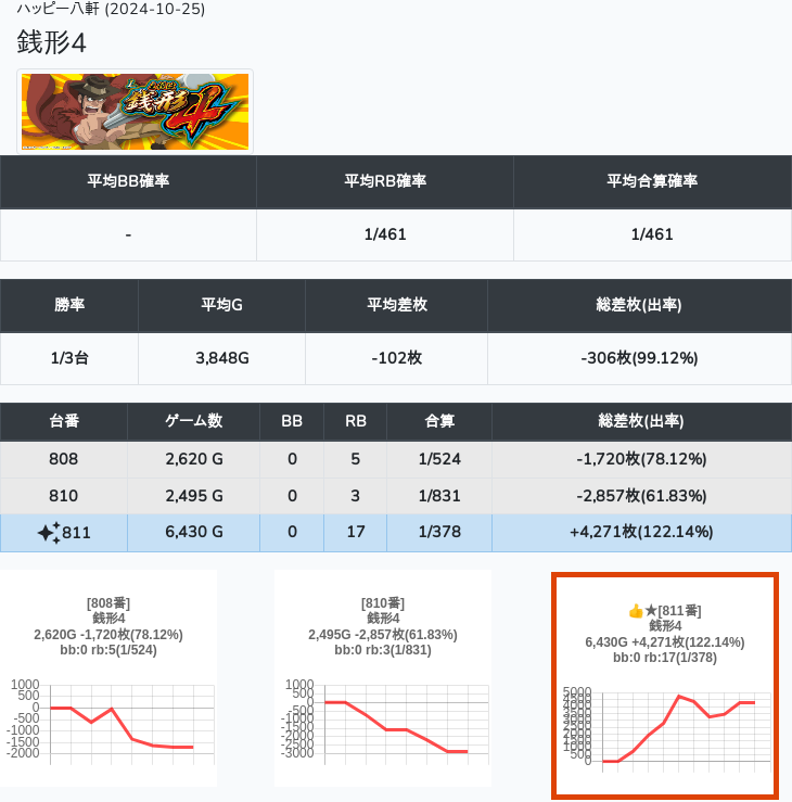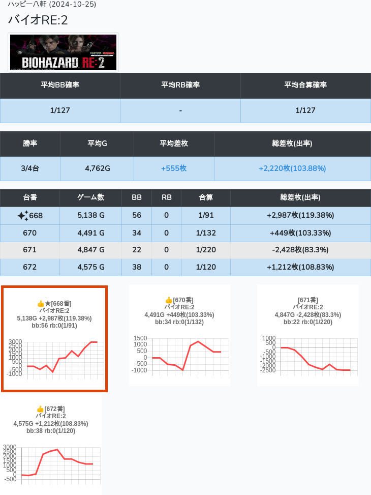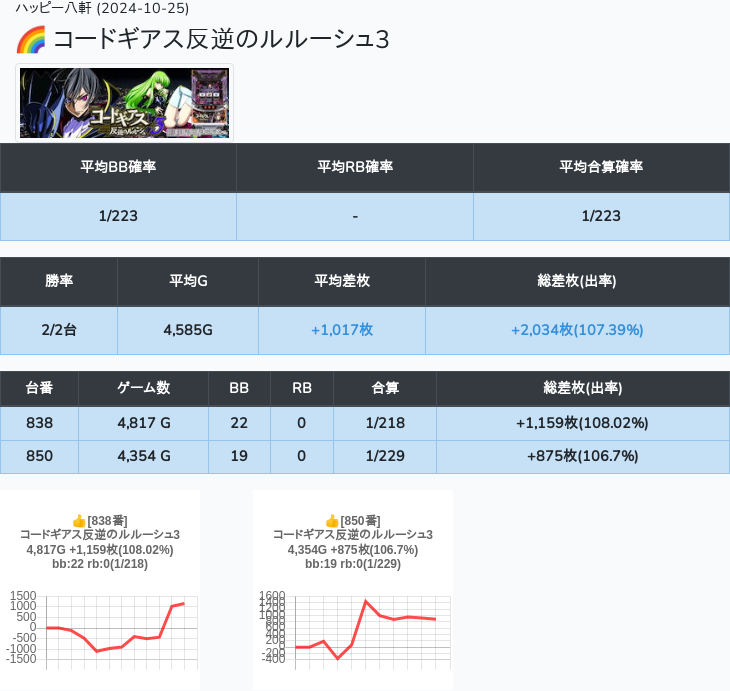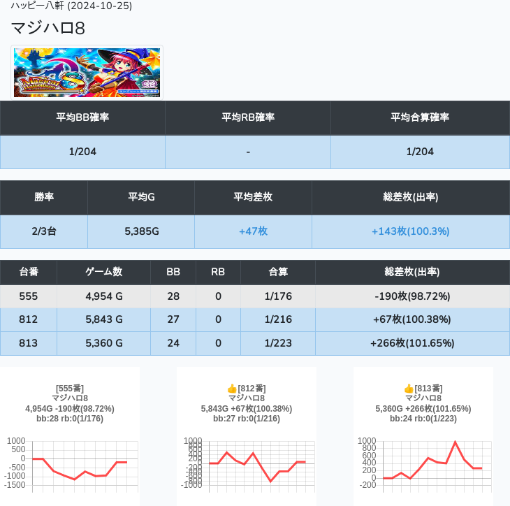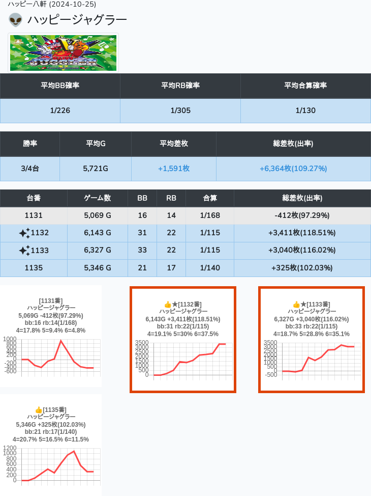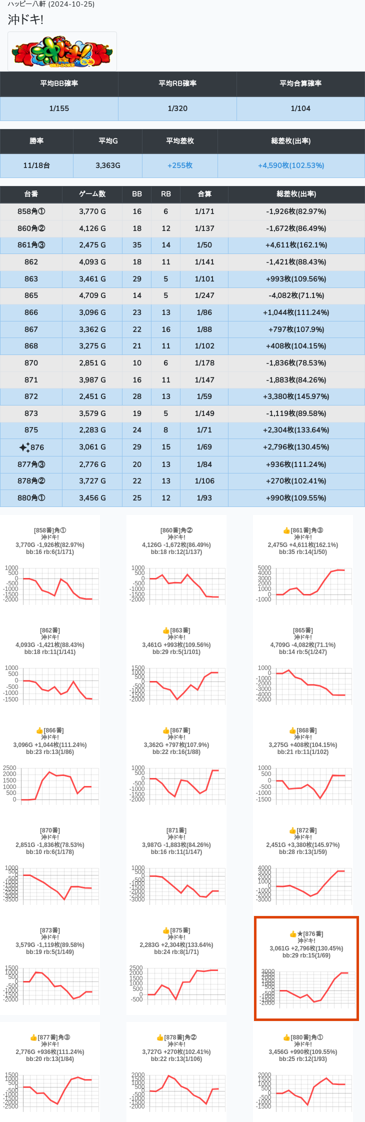 【オンサロ要望】 10月25日 ハッピー八軒 +91,906枚 聖闘士星矢海皇覚醒 3/4台 ハナビ 3/4台 モンキーターンV 3/3台