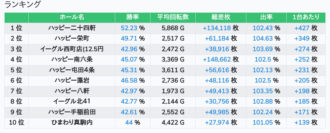 札幌ランキングの簡易データ 2025-10-24