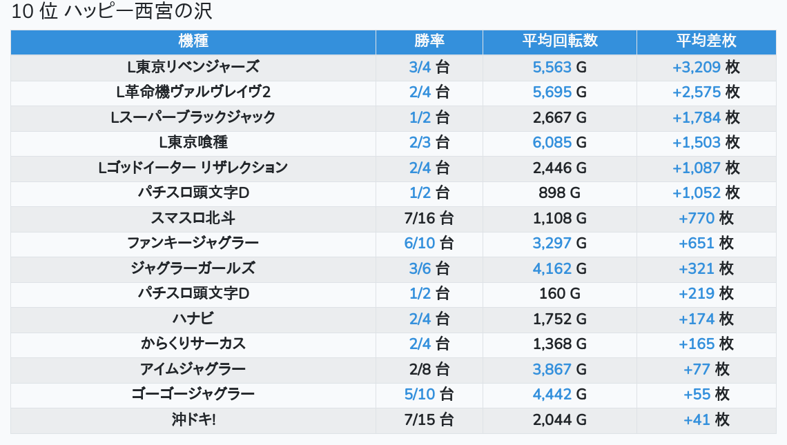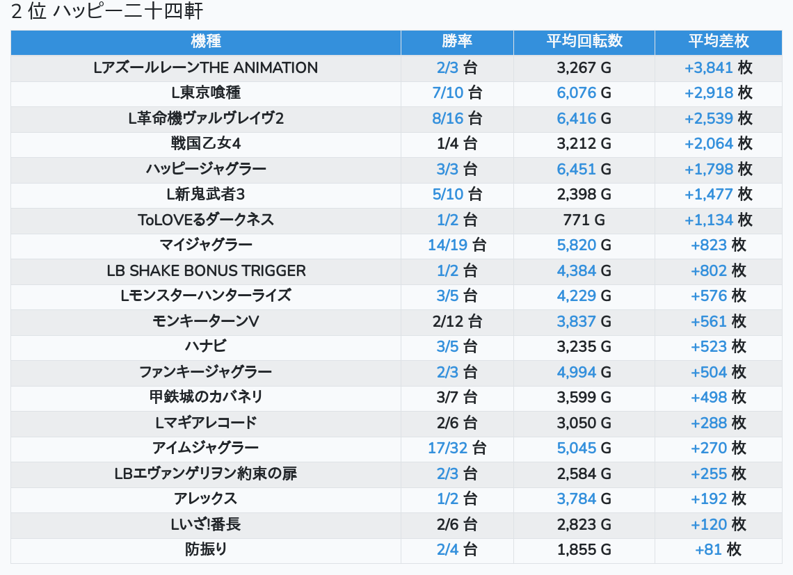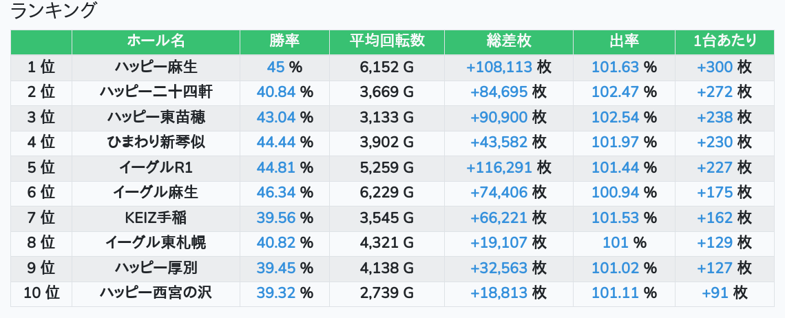 札幌ランキングの簡易データ 2025-11-09