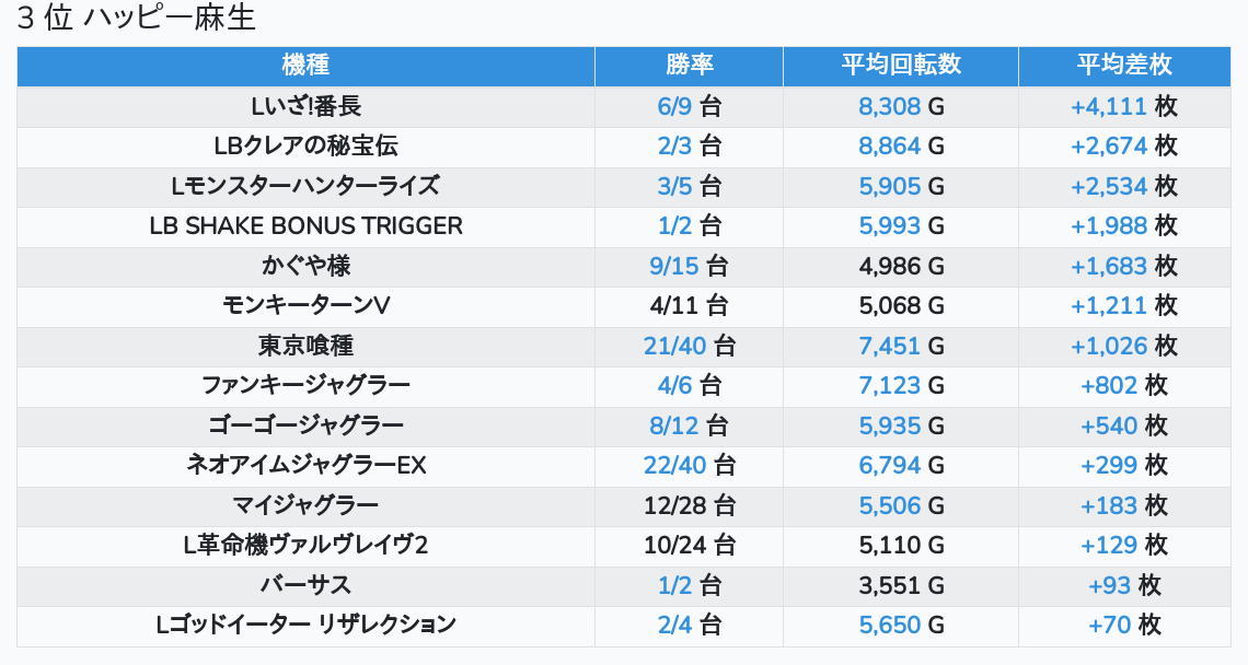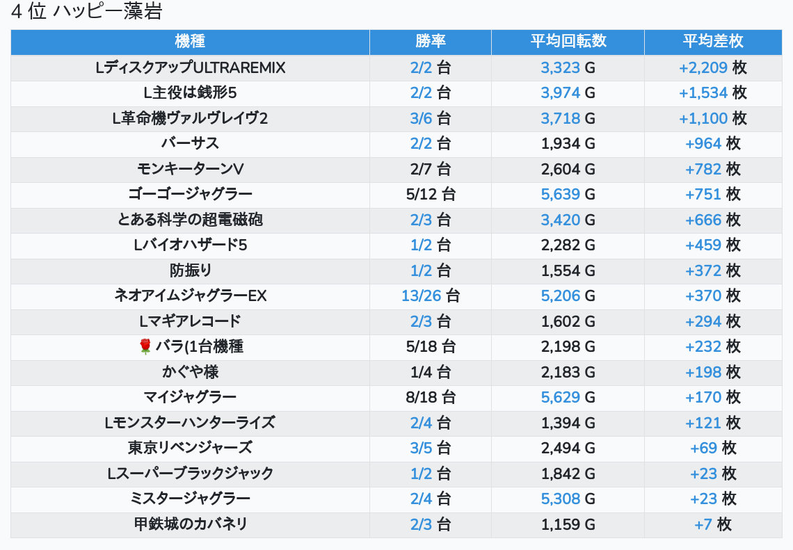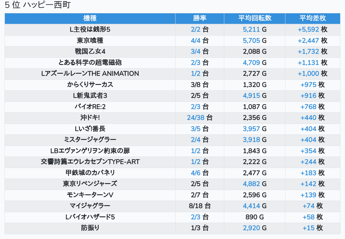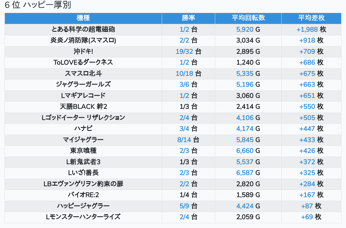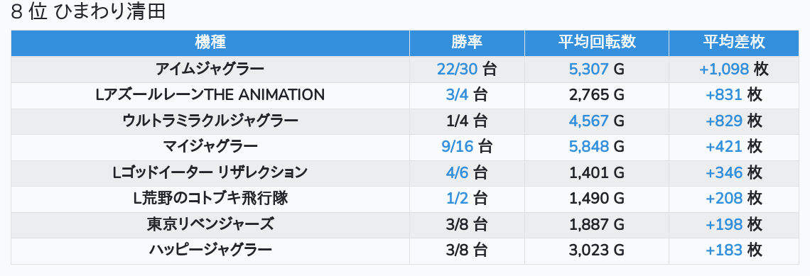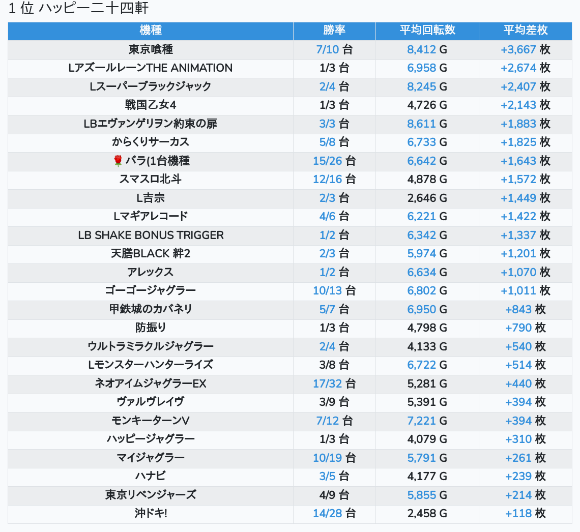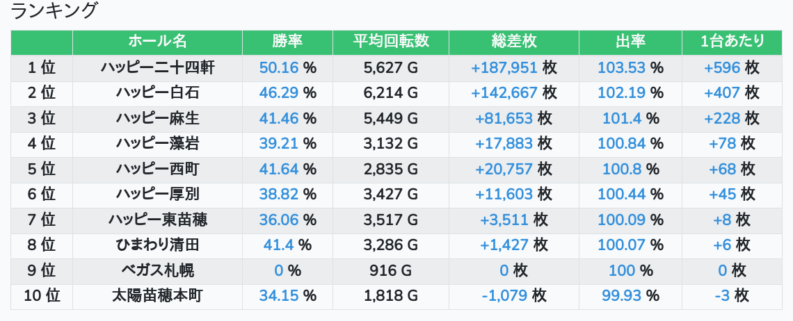 札幌ランキングの簡易データ 2025-11-16