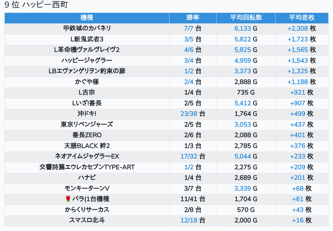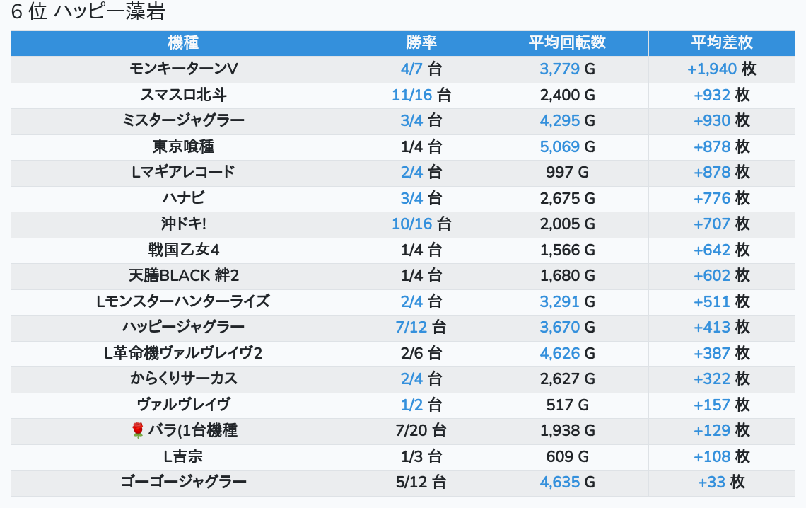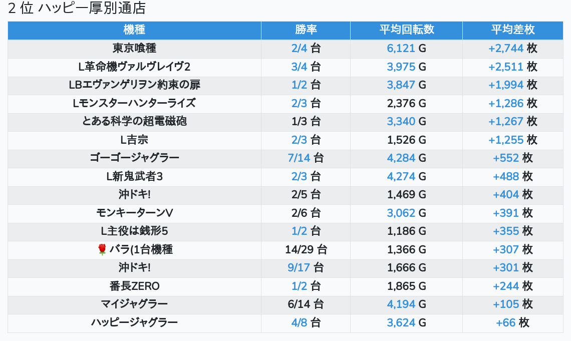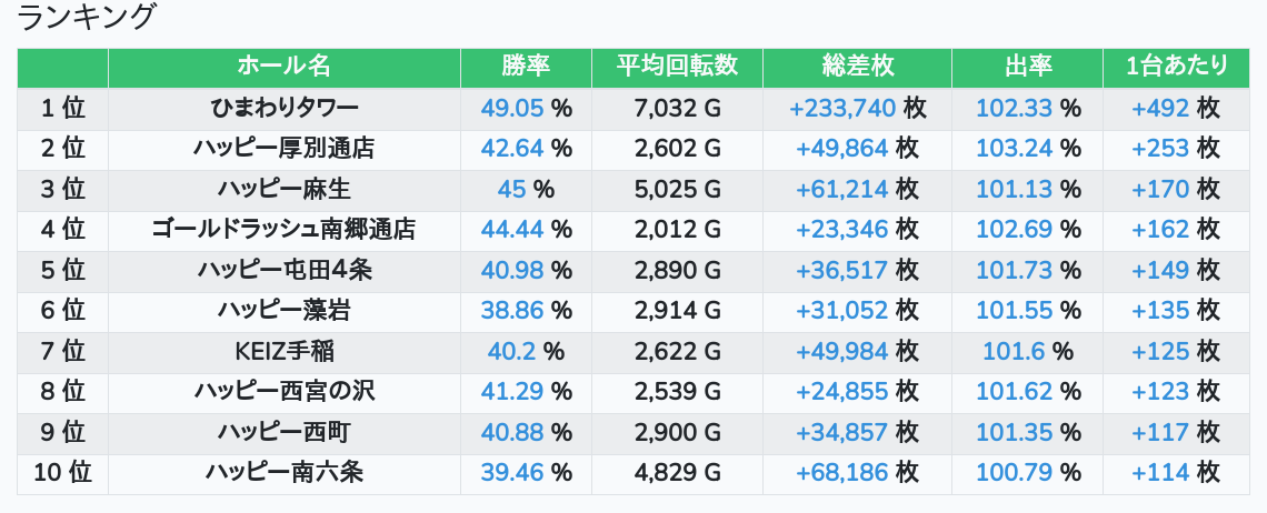 札幌ランキングの簡易データ 2025-11-18