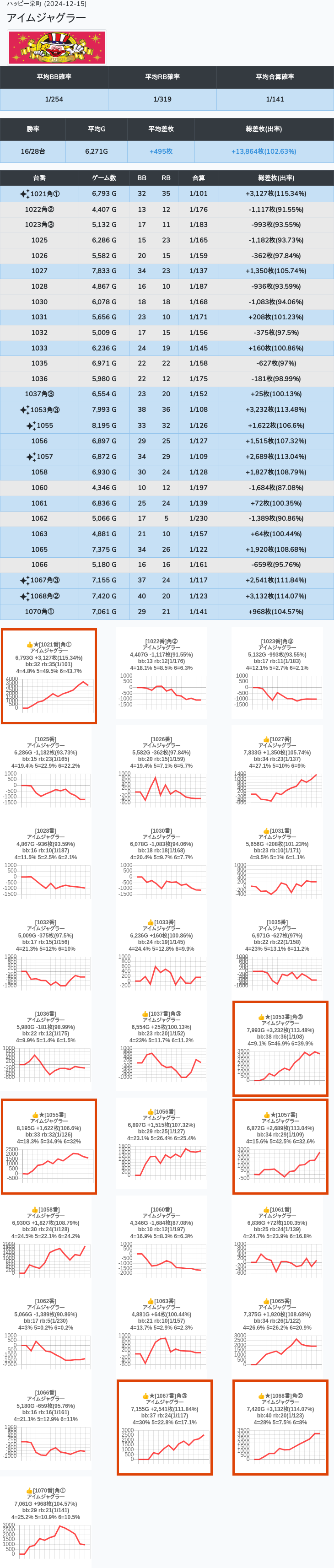 【オンサロ要望】 12月15日 ハッピー栄町 +32,476枚 アイムジャグラー 16/28台 スマスロ北斗 12/14台 甲鉄城のカバネリ 4/4台