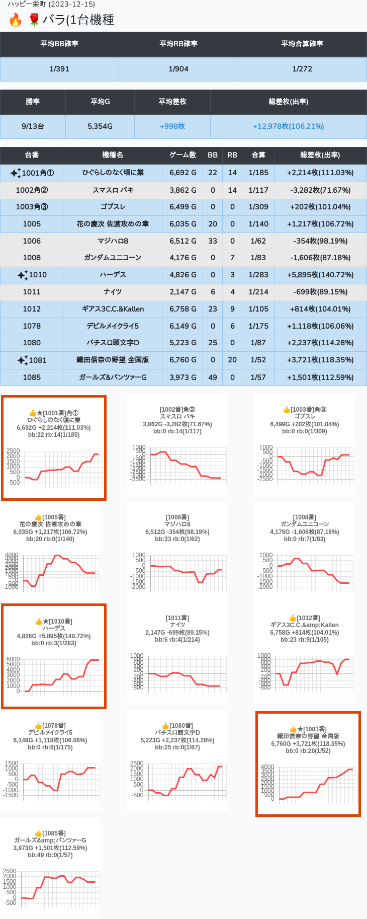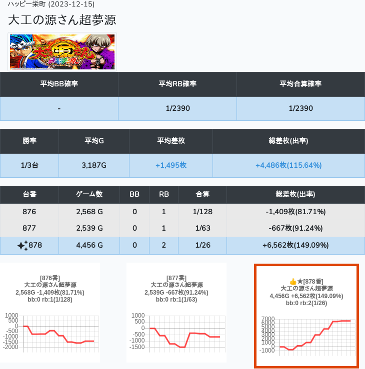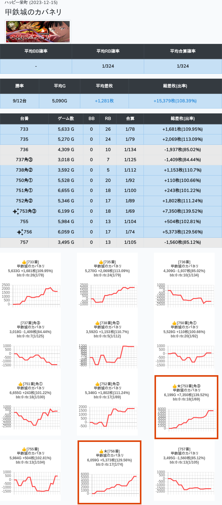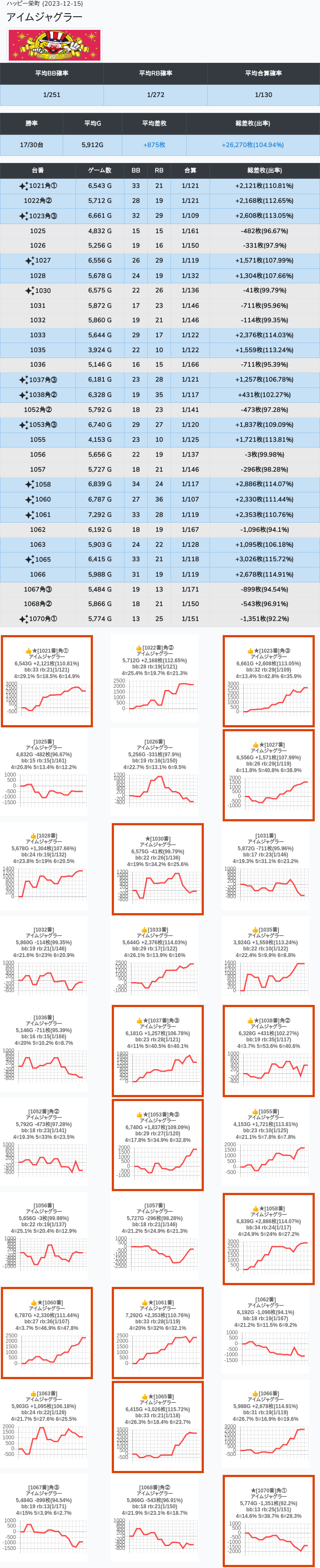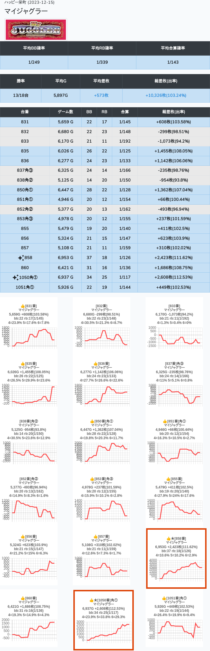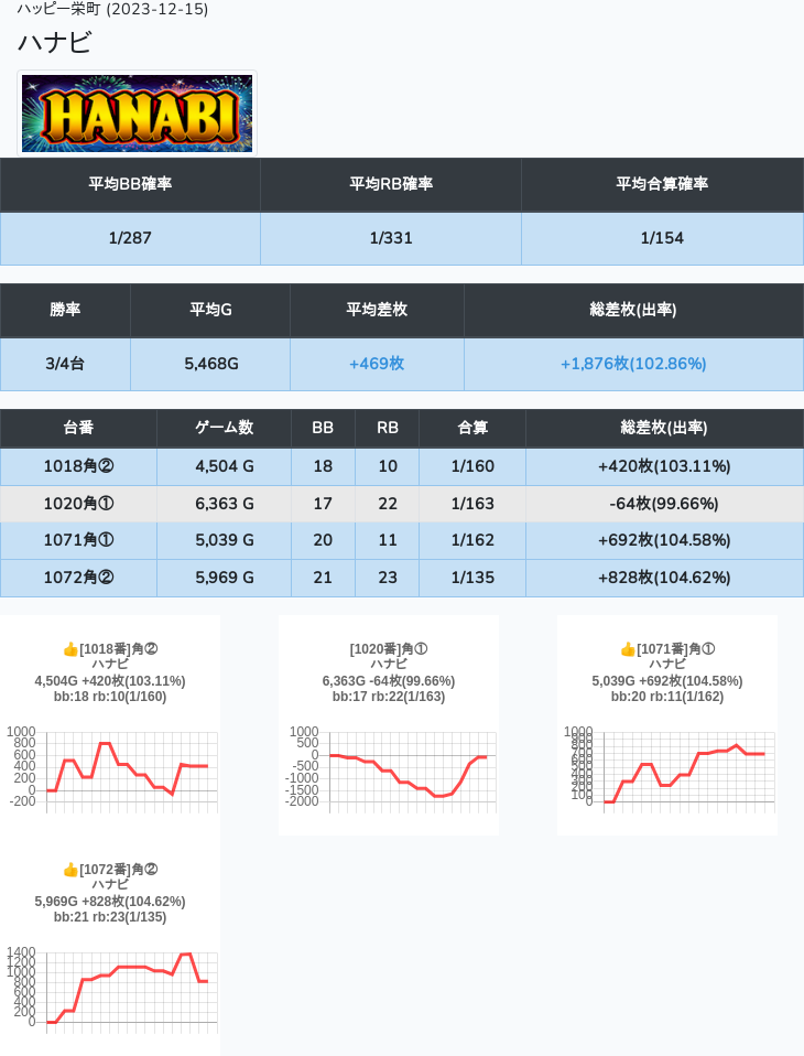【オンサロ要望】 12月15日 ハッピー栄町 +146,342枚 ハナビ 3/4台 アイムジャグラー 17/30台 マイジャグラー 13/18台