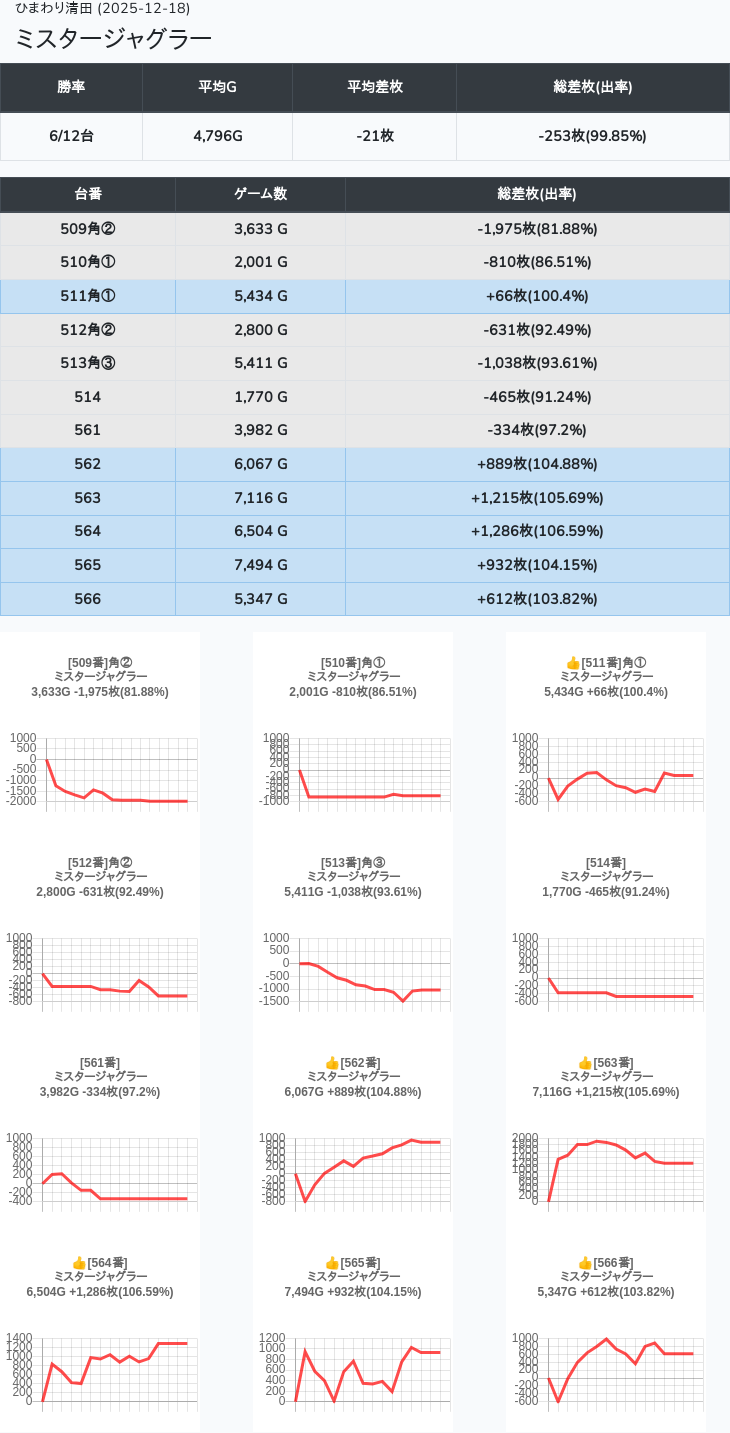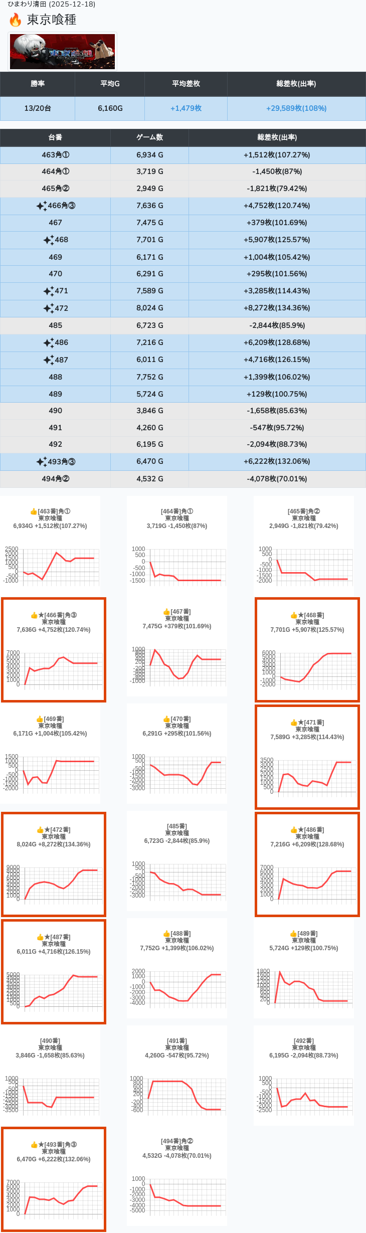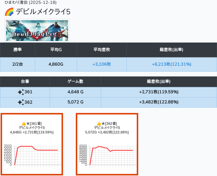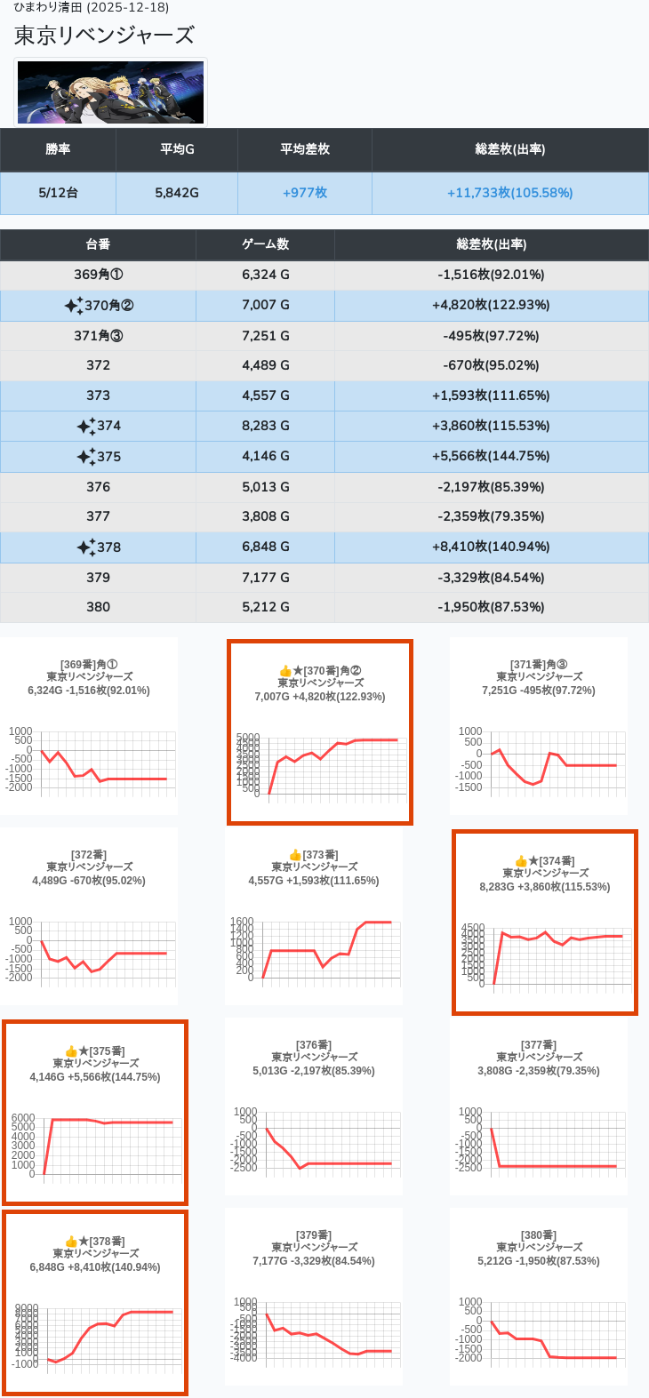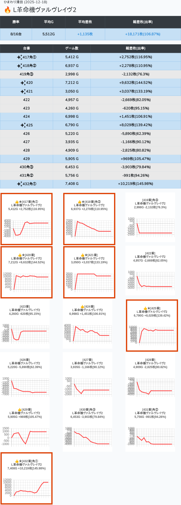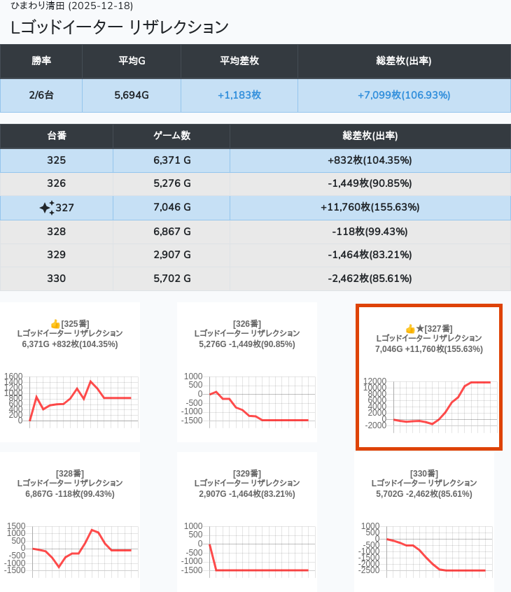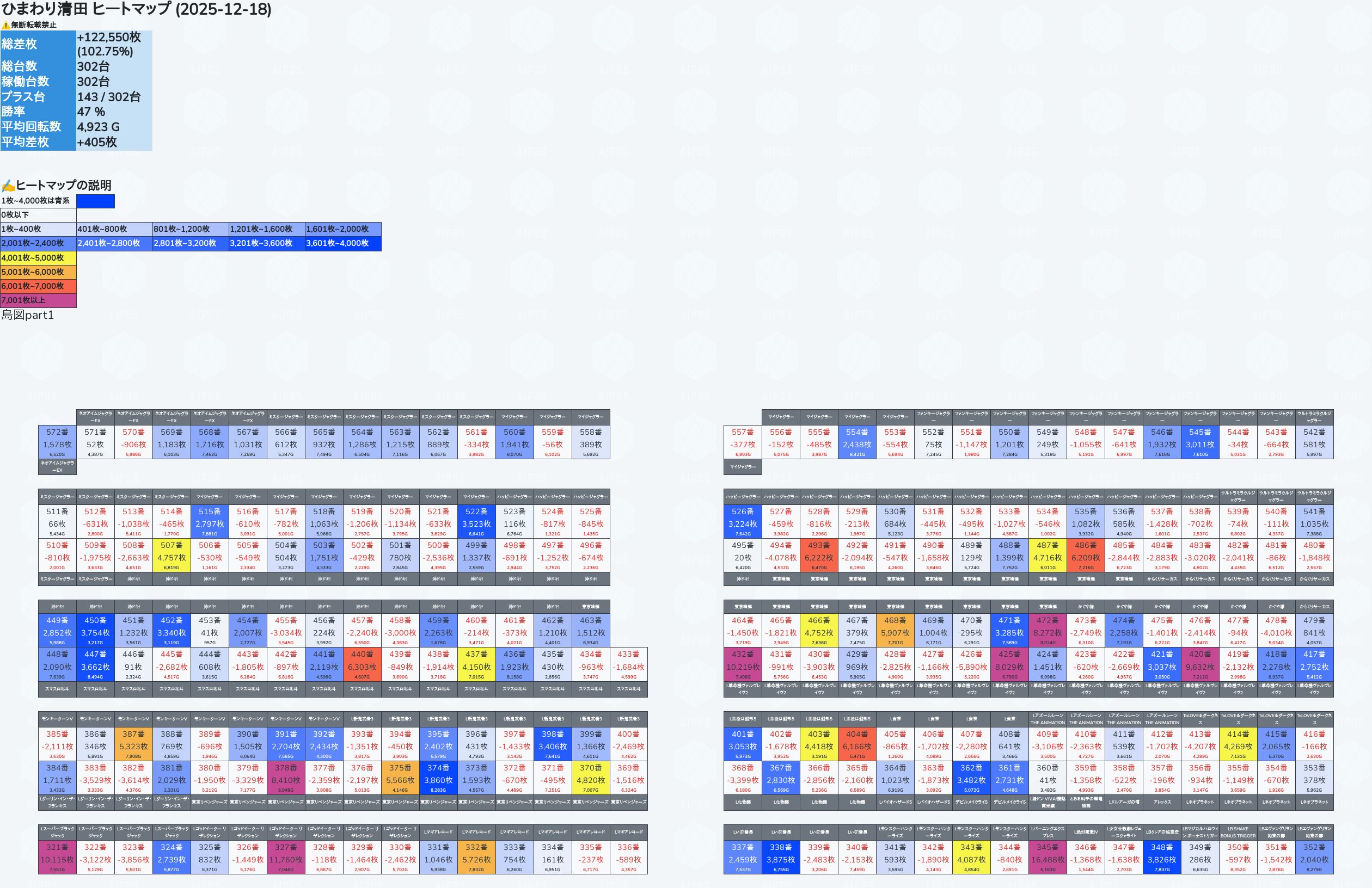 12月18日 ひまわり清田 +122,550枚 Lマギアレコード 4/6台 モンキーターンV 6/8台 L主役は銭形5 3/4台