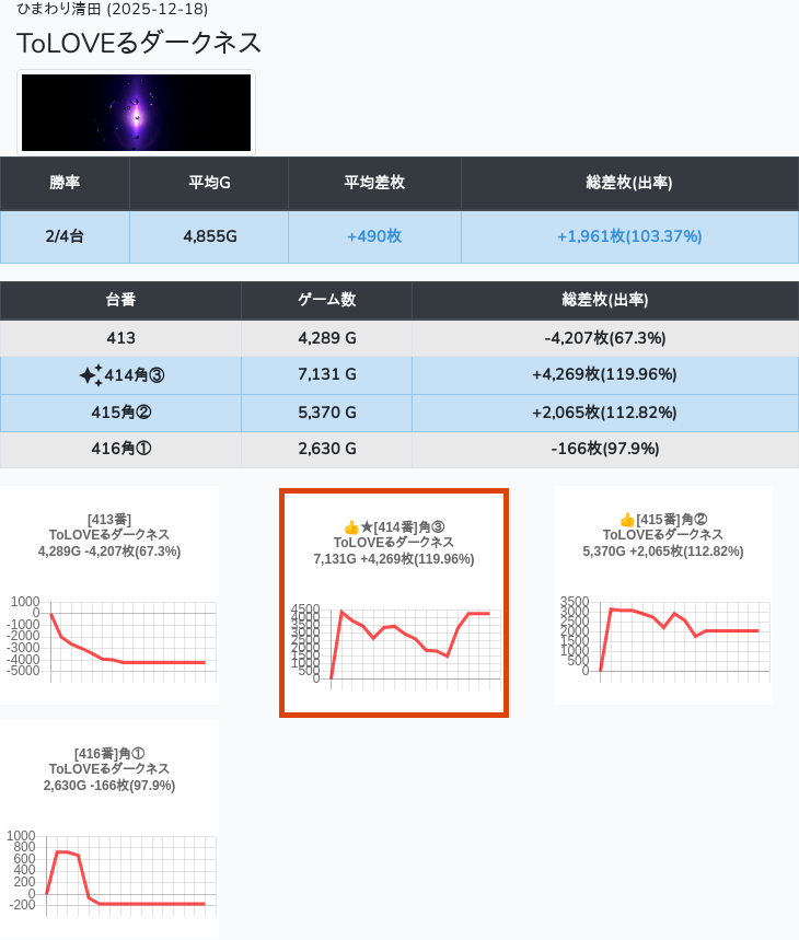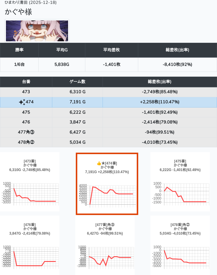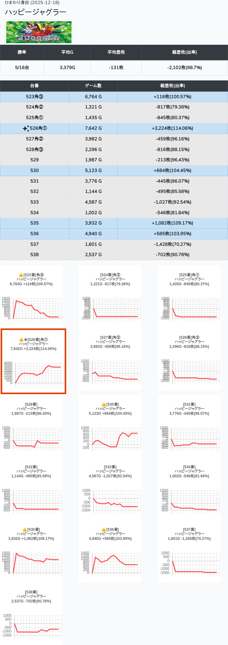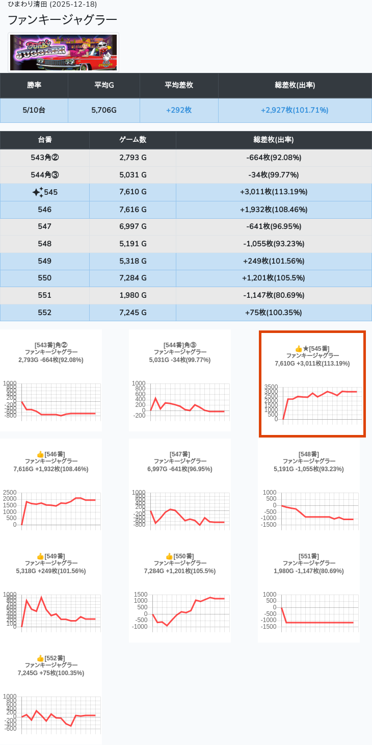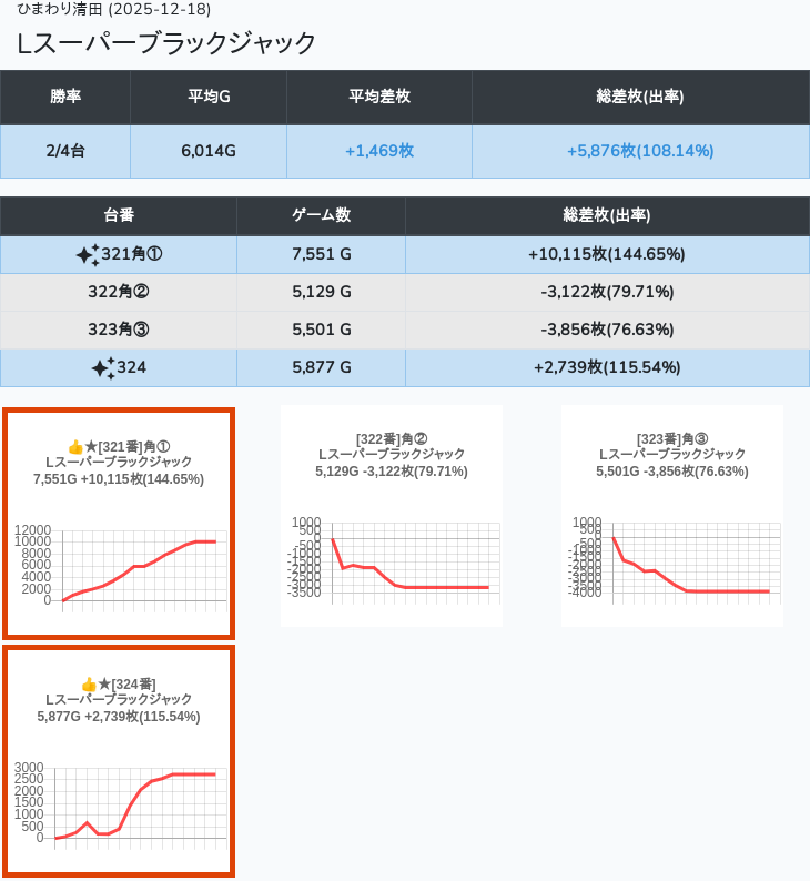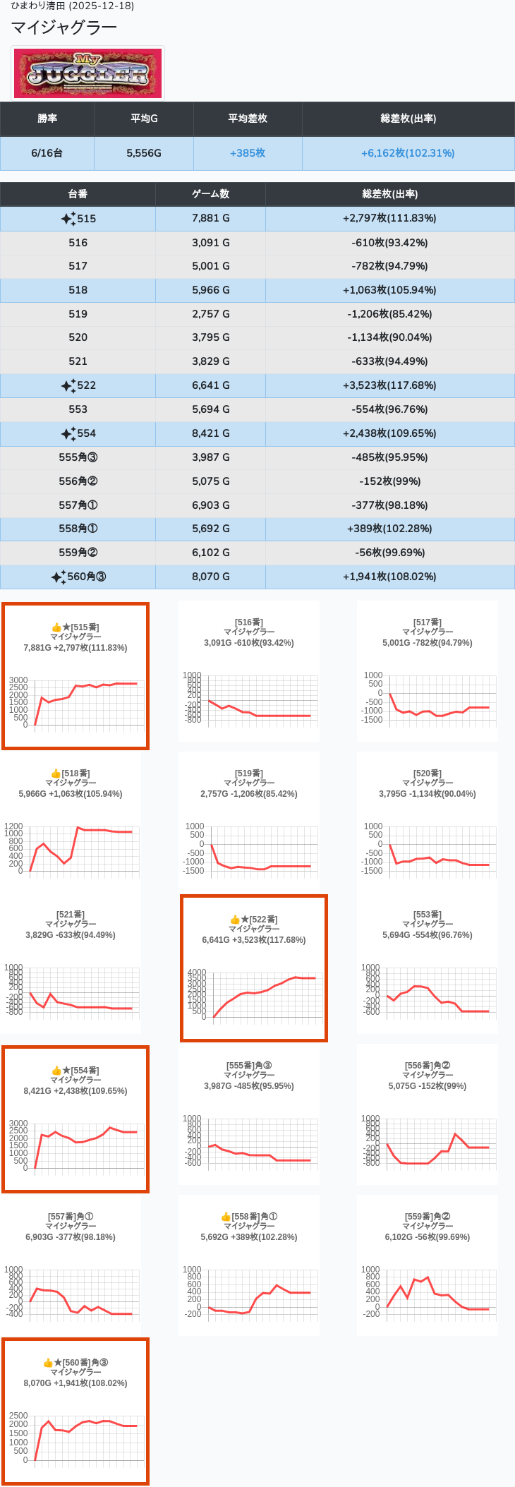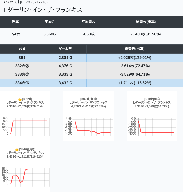 12月18日 ひまわり清田 +122,550枚 Lマギアレコード 4/6台 モンキーターンV 6/8台 L主役は銭形5 3/4台