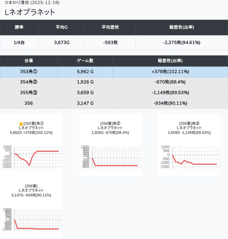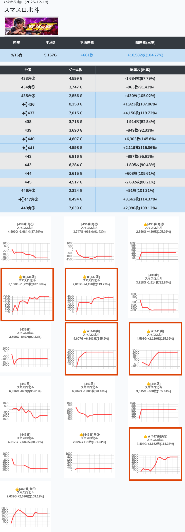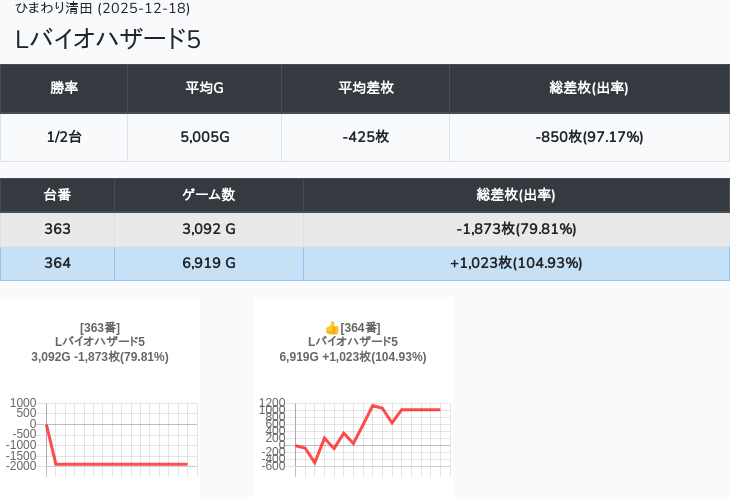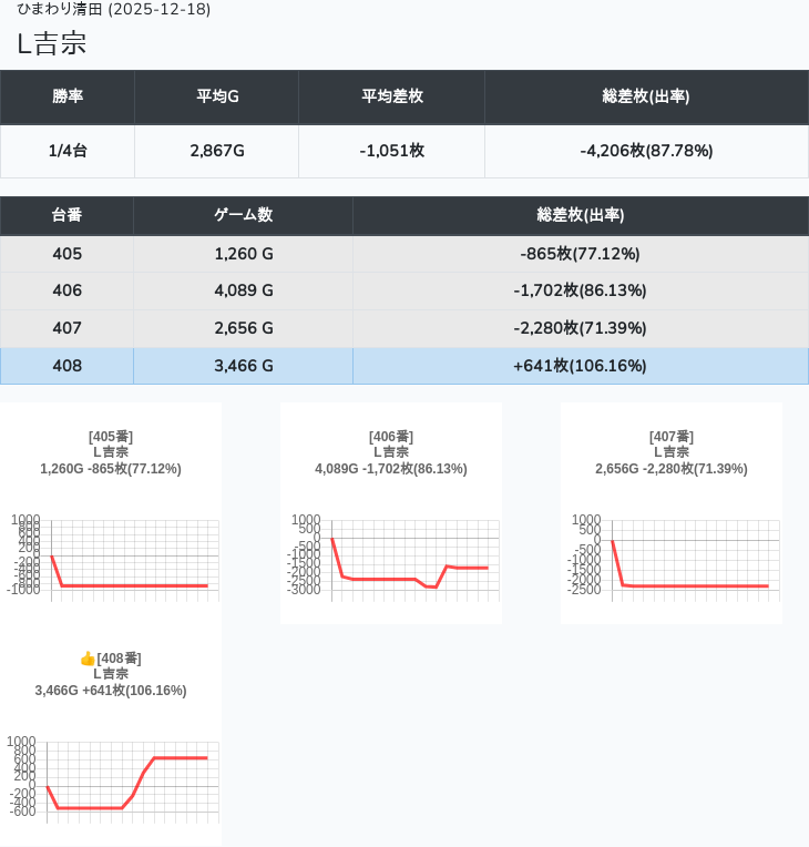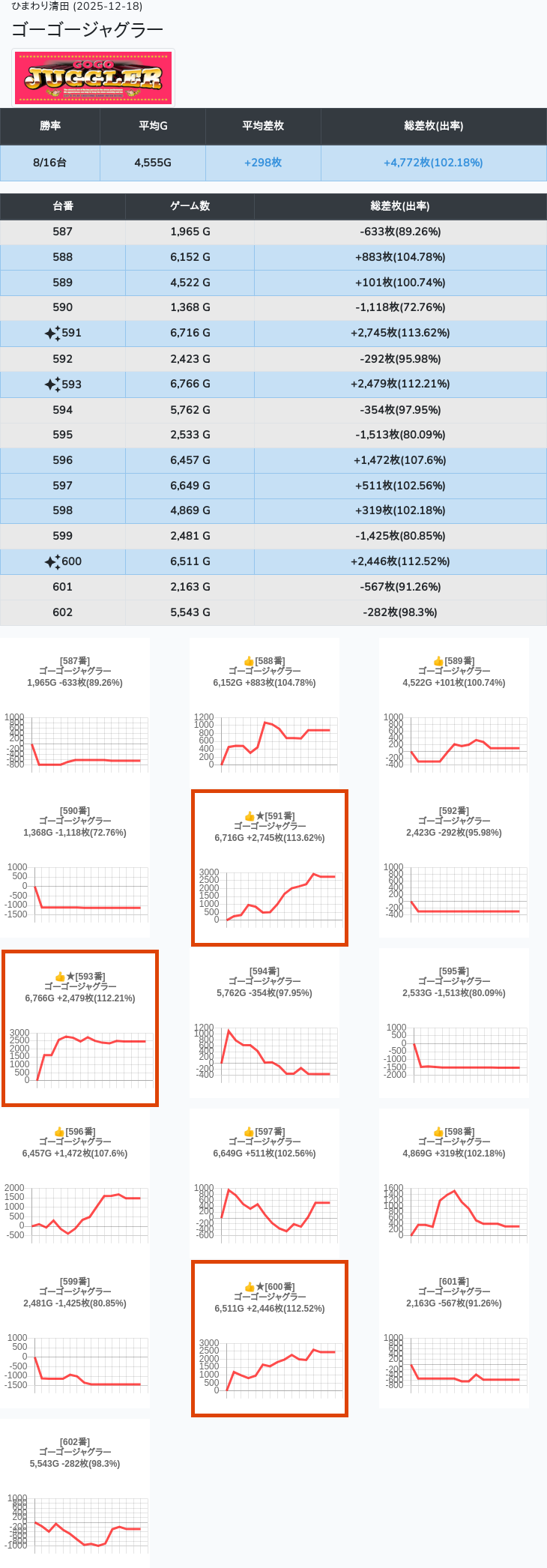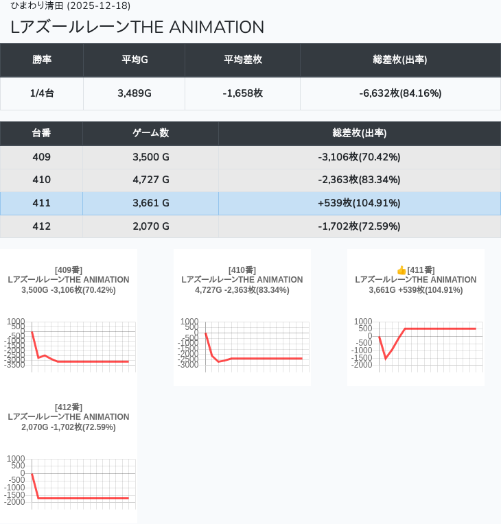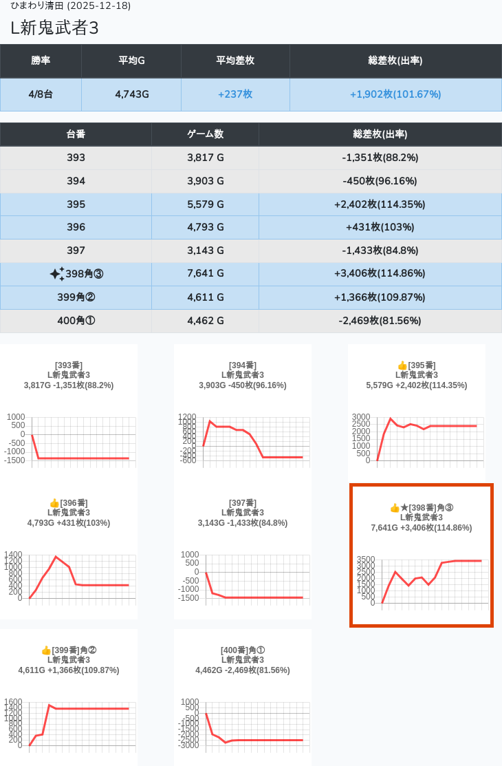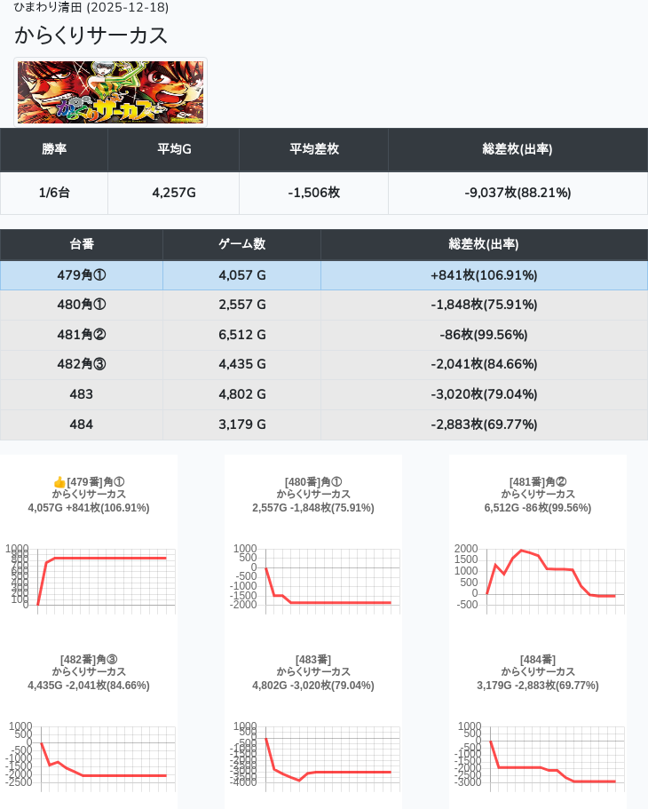 12月18日 ひまわり清田 +122,550枚 Lマギアレコード 4/6台 モンキーターンV 6/8台 L主役は銭形5 3/4台