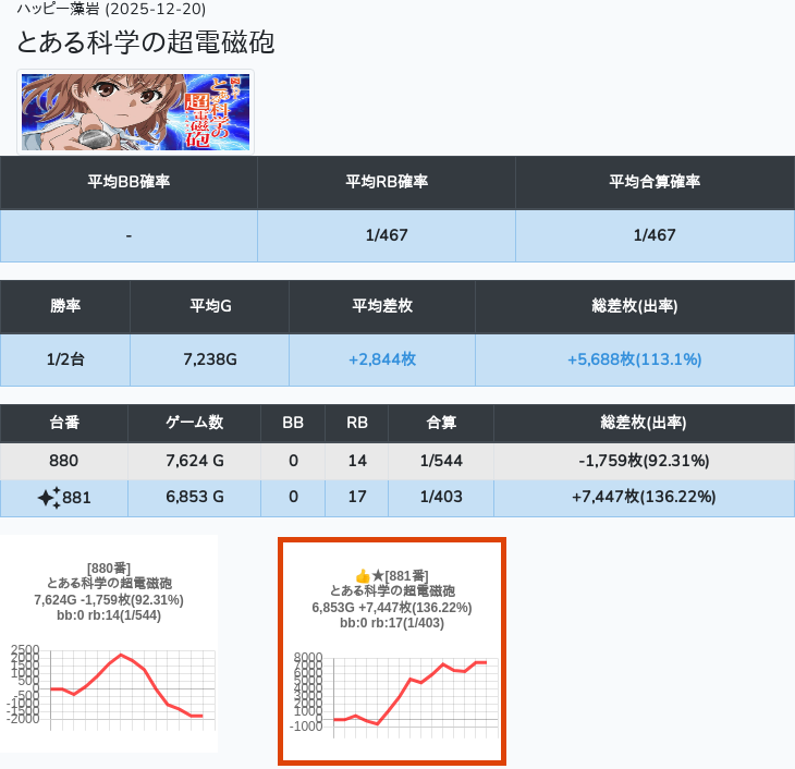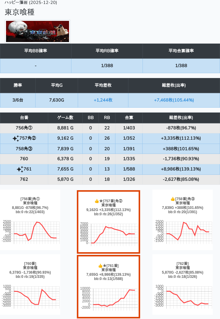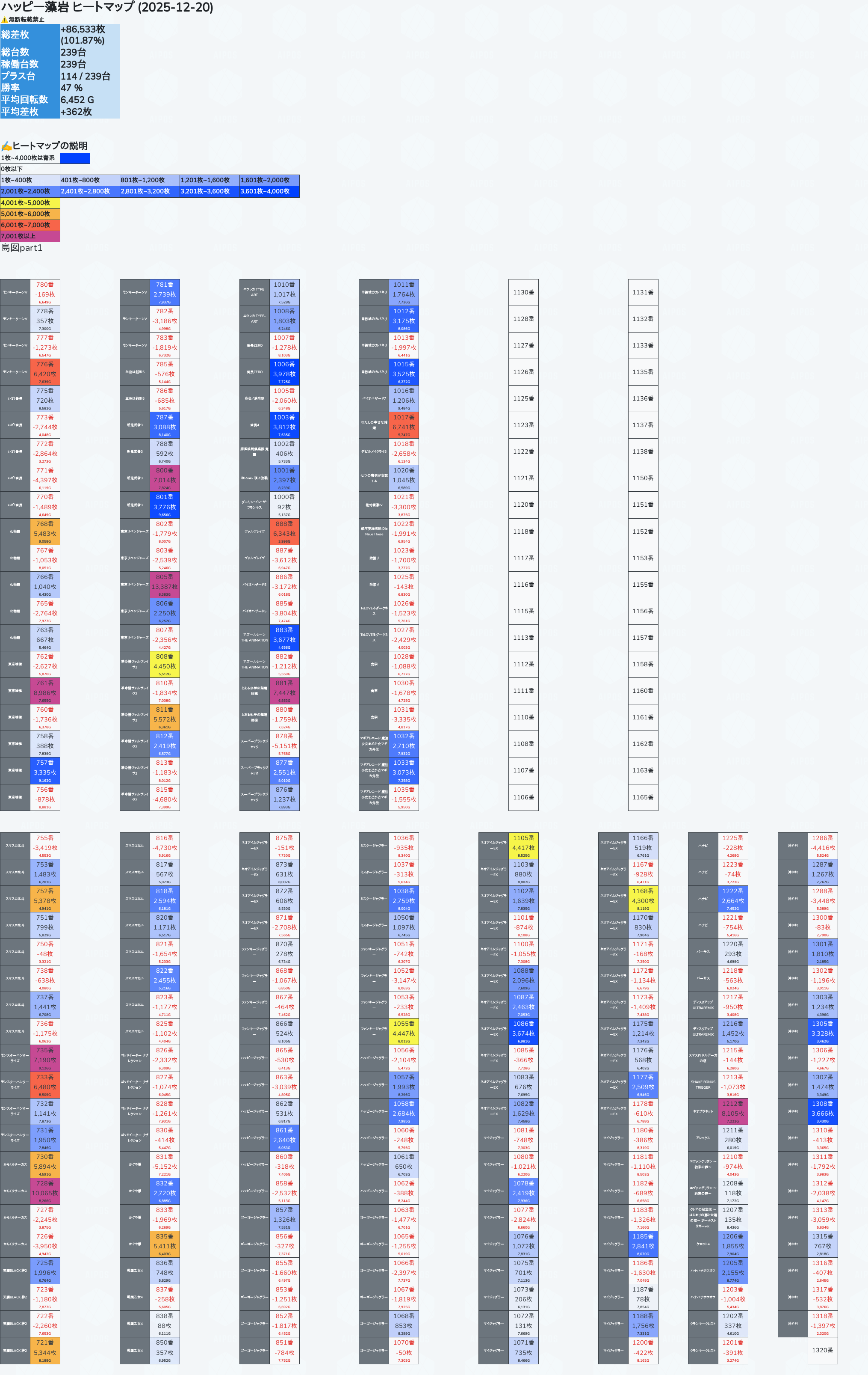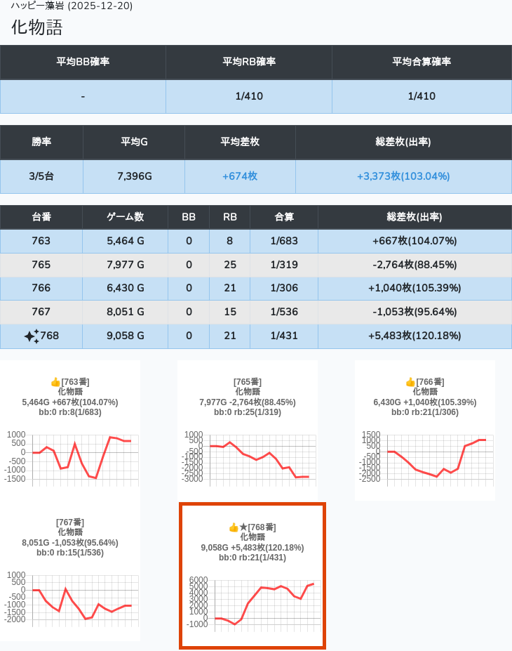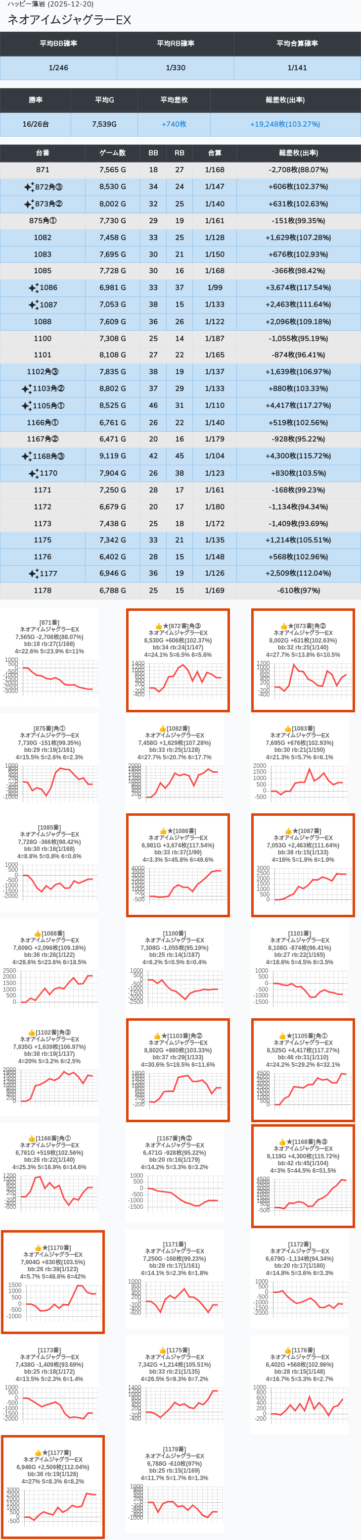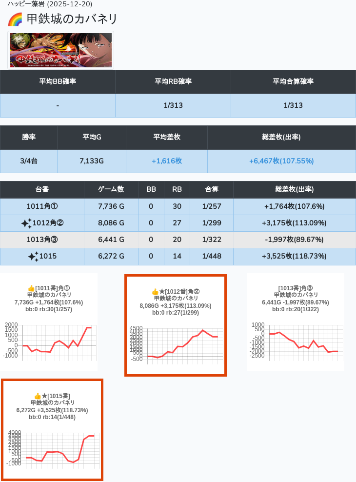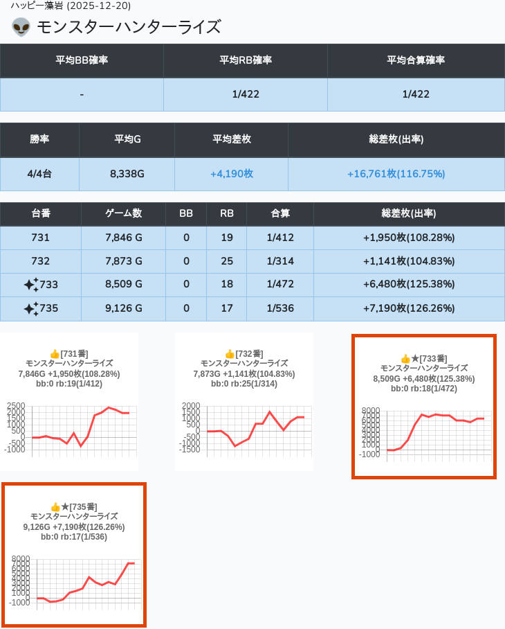 【オンサロ要望】 12月20日 ハッピー藻岩 +86,533枚 甲鉄城のカバネリ 3/4台 ネオアイムジャグラーEX 16/26台 モンスターハンターライズ 4/4台