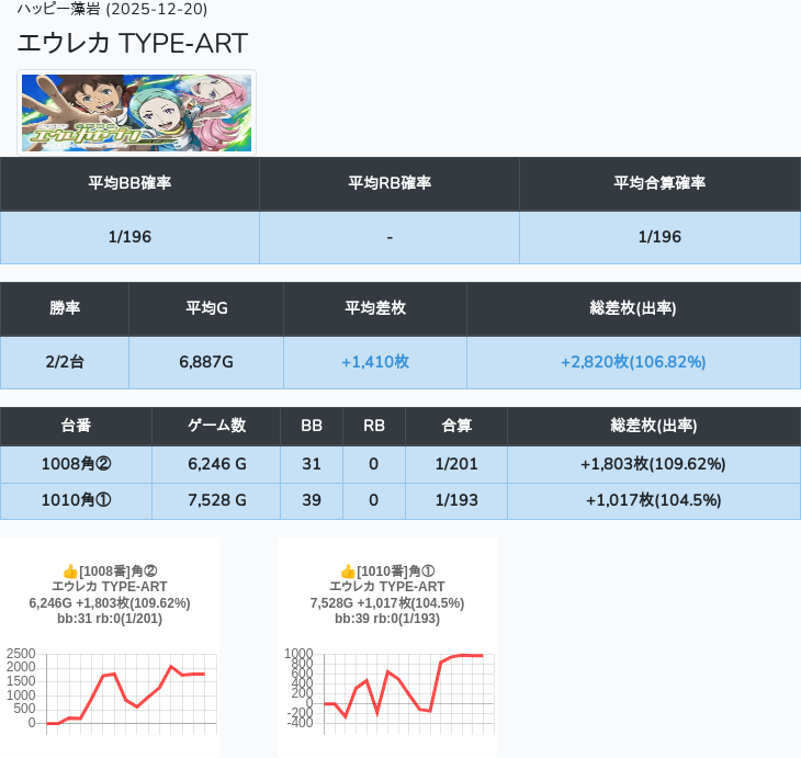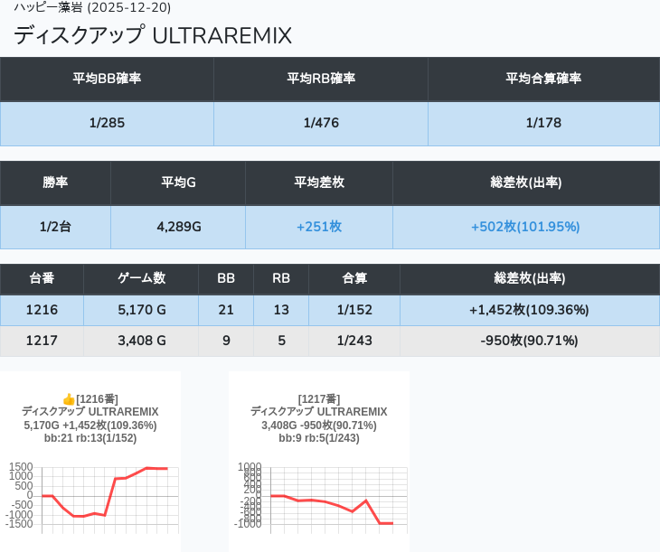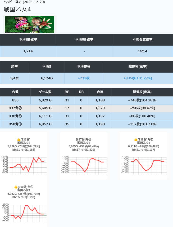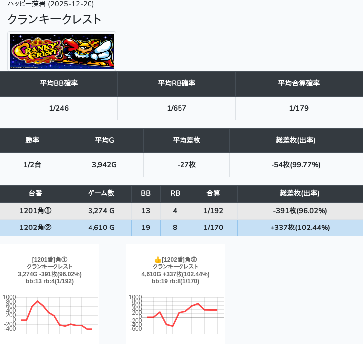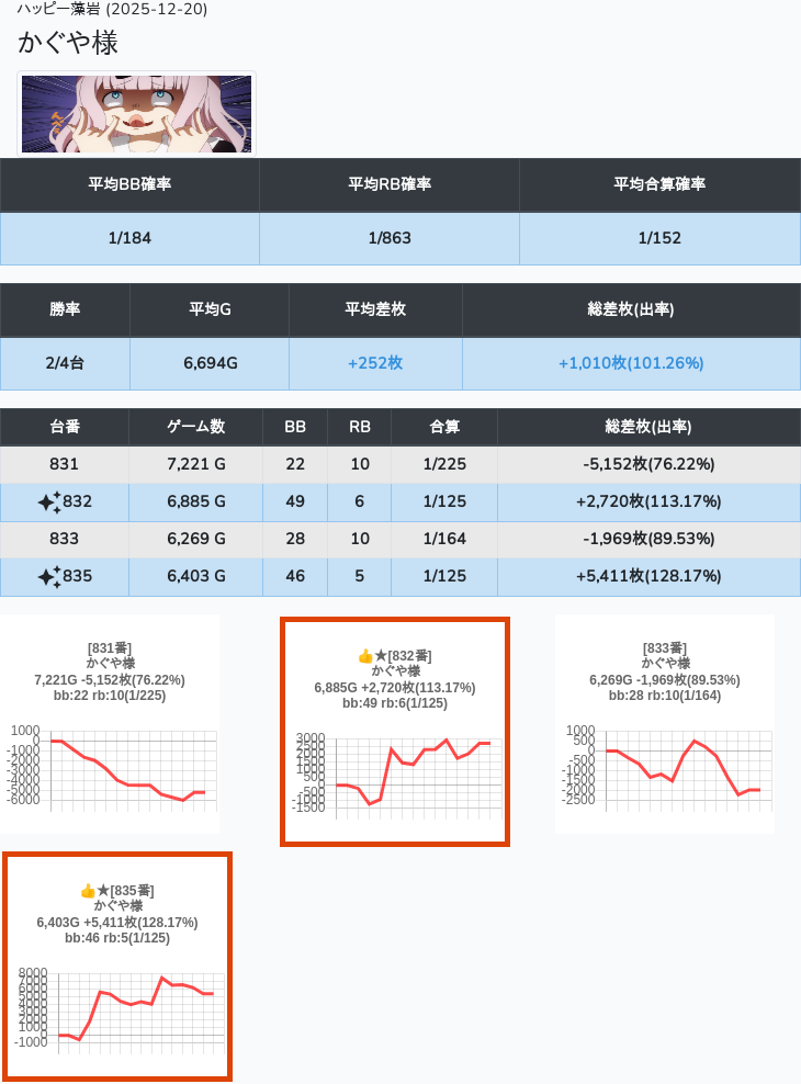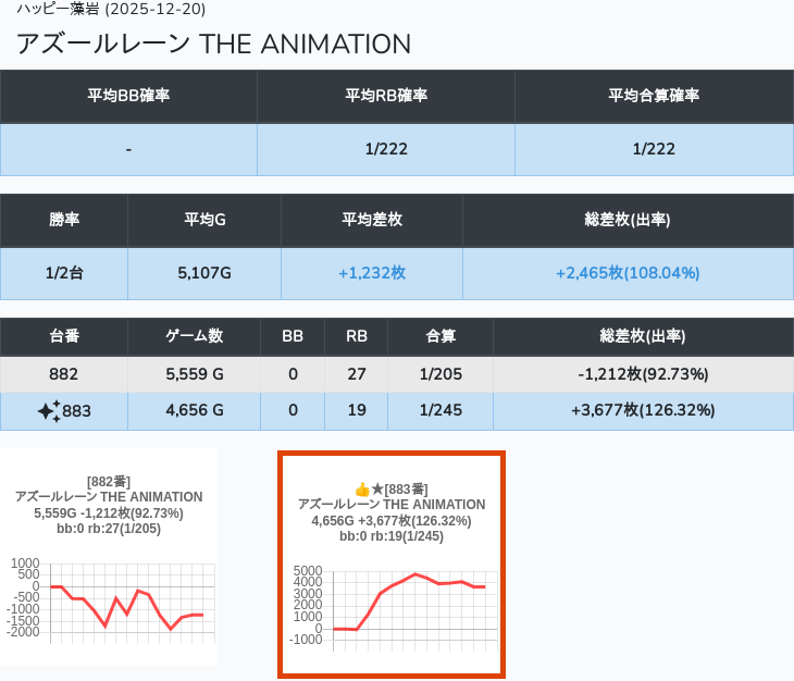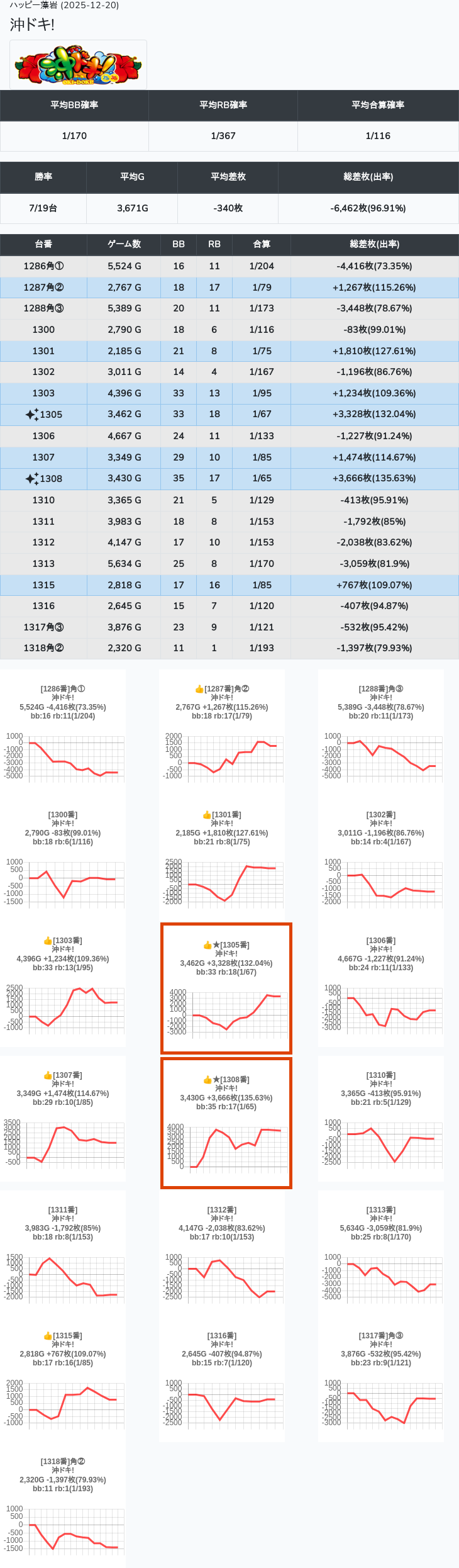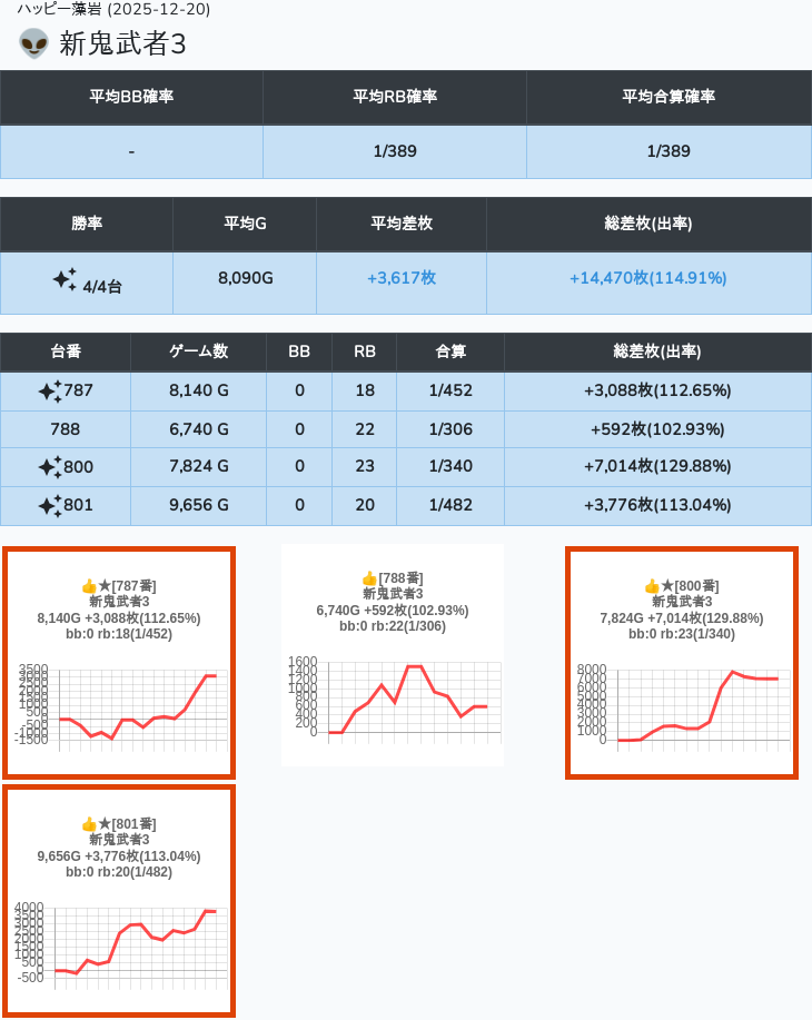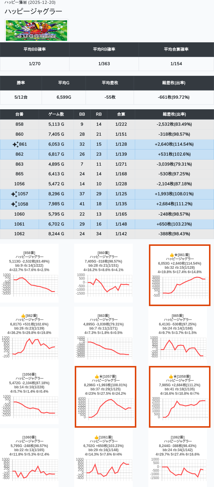 【オンサロ要望】 12月20日 ハッピー藻岩 +86,533枚 甲鉄城のカバネリ 3/4台 ネオアイムジャグラーEX 16/26台 モンスターハンターライズ 4/4台