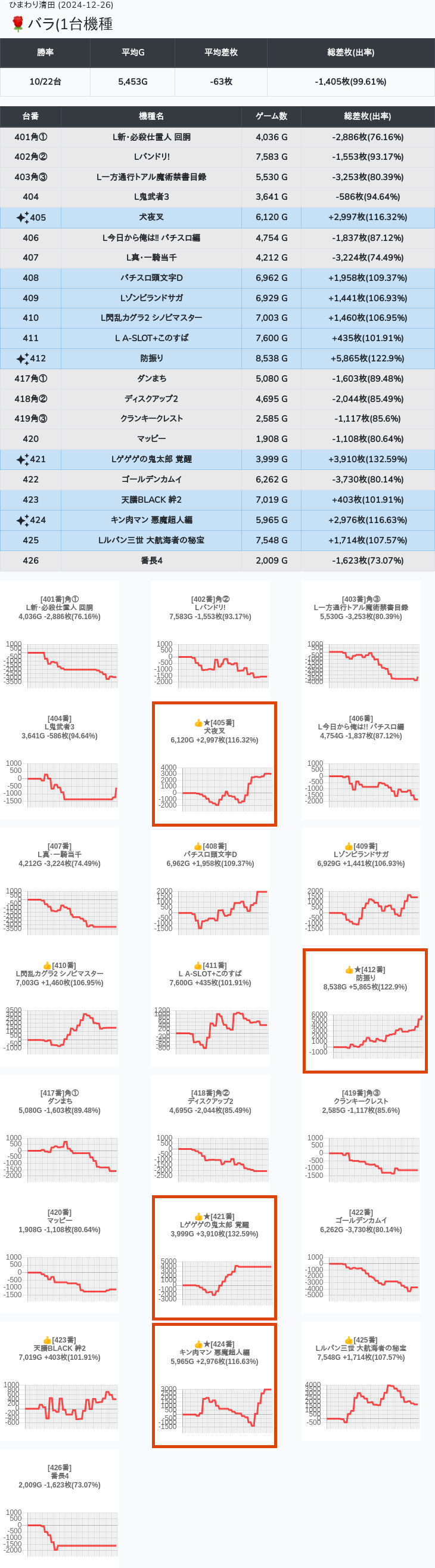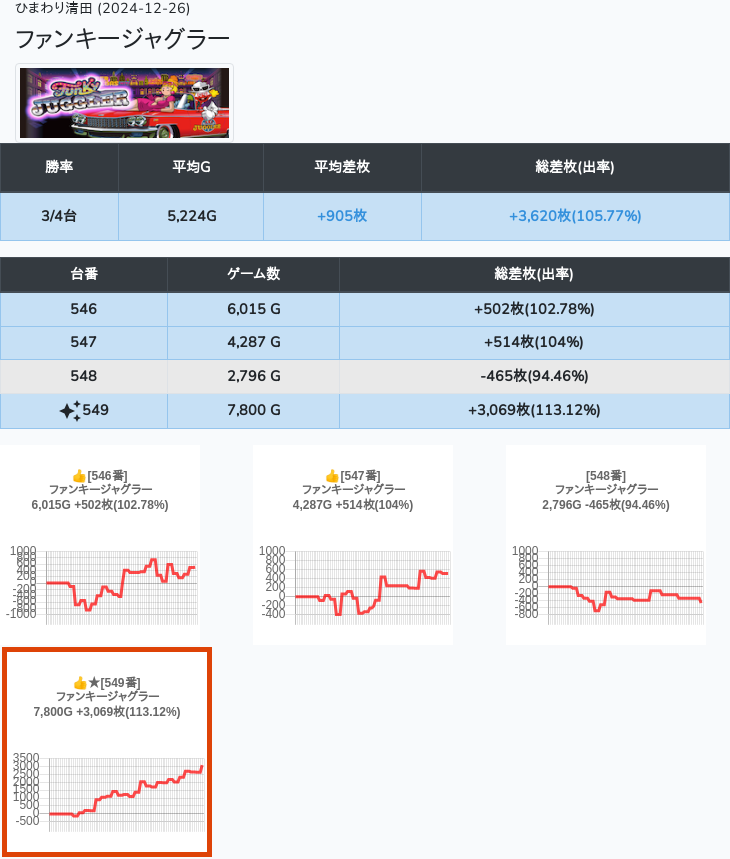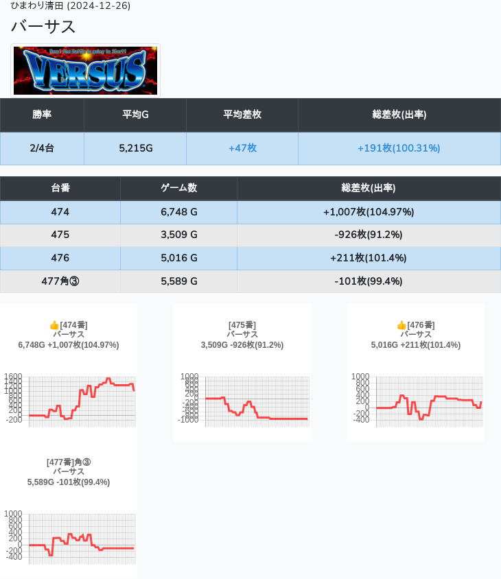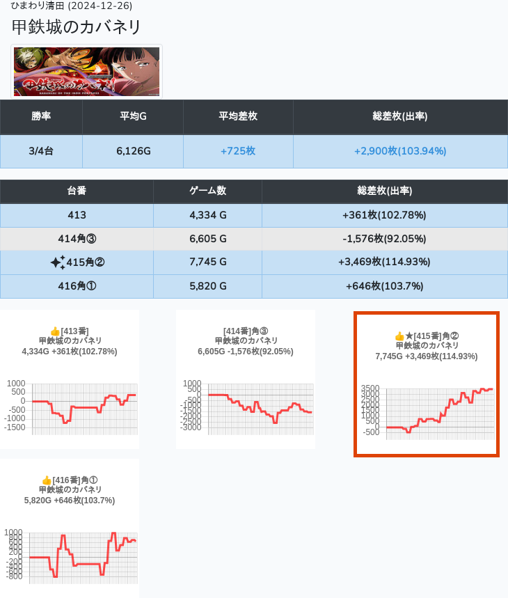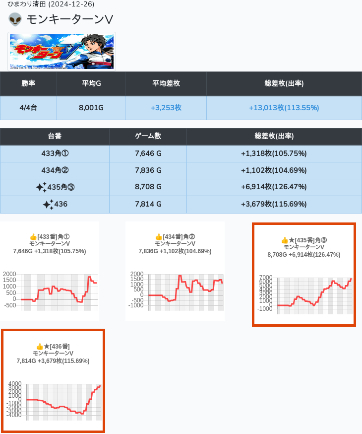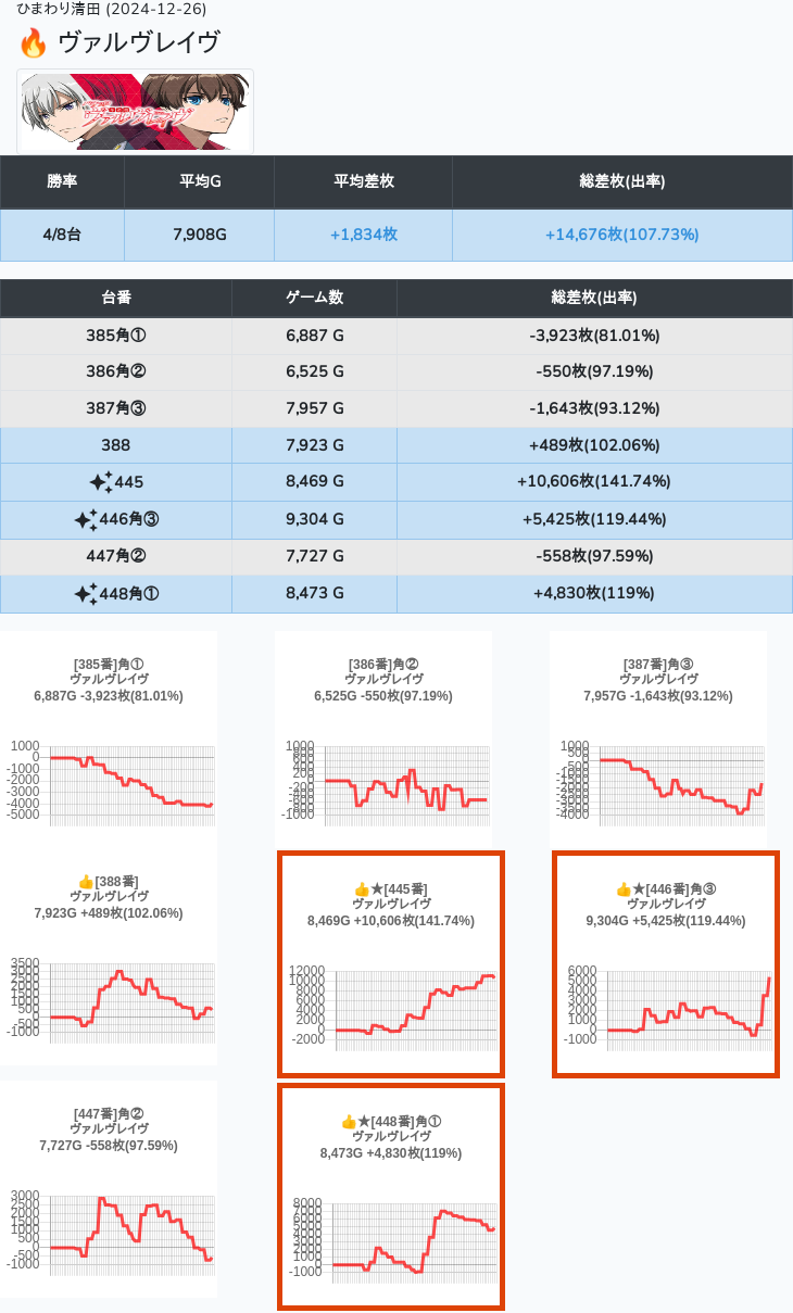 【オンサロ要望】 12月26日 ひまわり清田 +108,625枚 ヴァルヴレイヴ 4/8台 甲鉄城のカバネリ 3/4台 モンキーターンV 4/4台