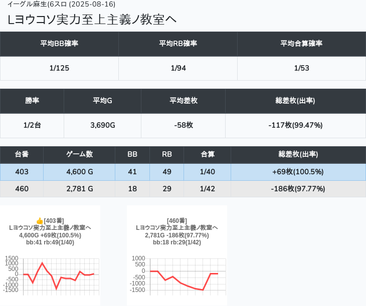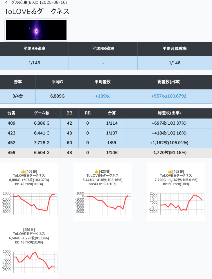 2025/12/25 aipos 【オンサロ要望】 8月16日 イーグル麻生(6スロ -37,059枚 L緑ドン VIVA!情熱南米編 3/6台 Lゴッドイーター リザレクション 4/5台 ToLOVEるダークネス 3/4台