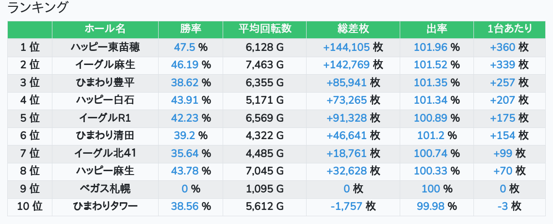 札幌ランキングの簡易データ 2025-12-29