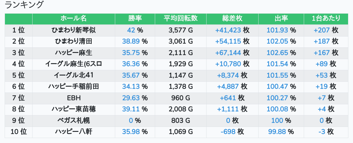 札幌ランキングの簡易データ 2025-12-31