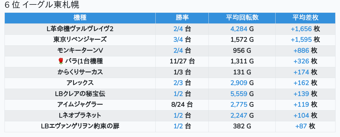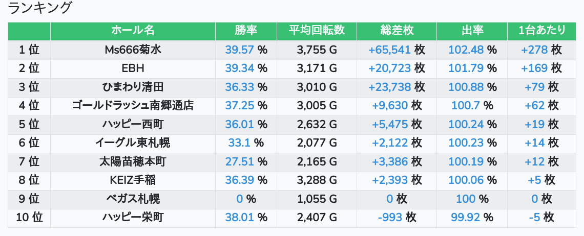 札幌ランキングの簡易データ 2026-01-06
