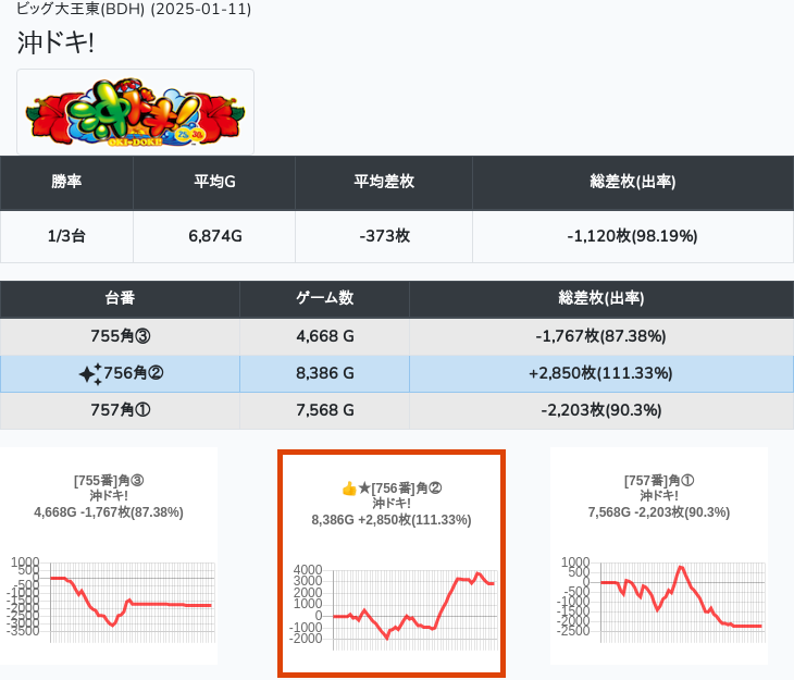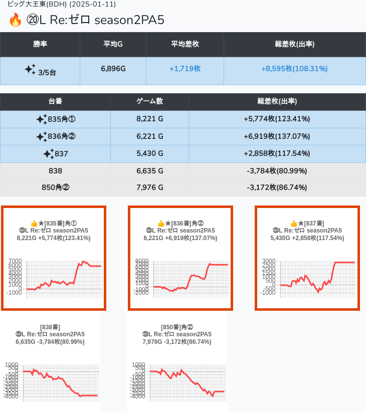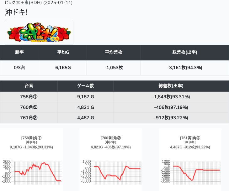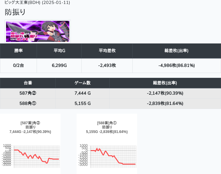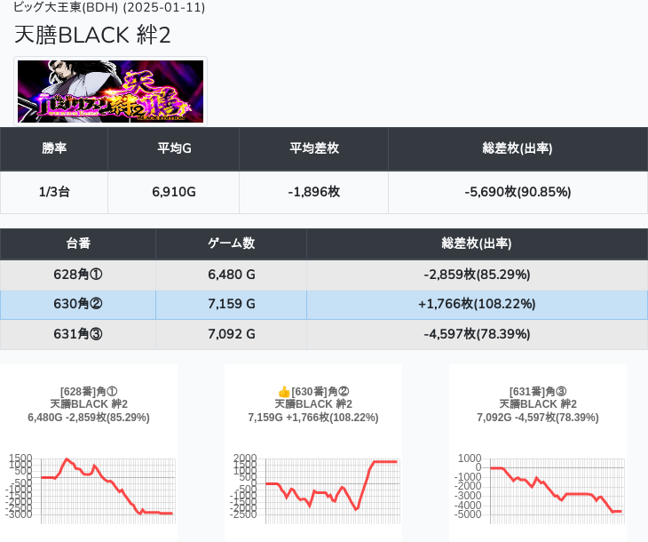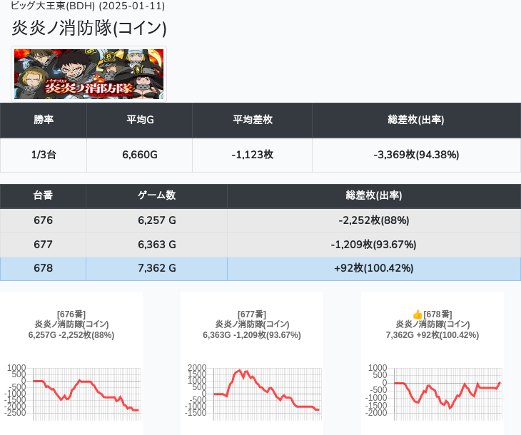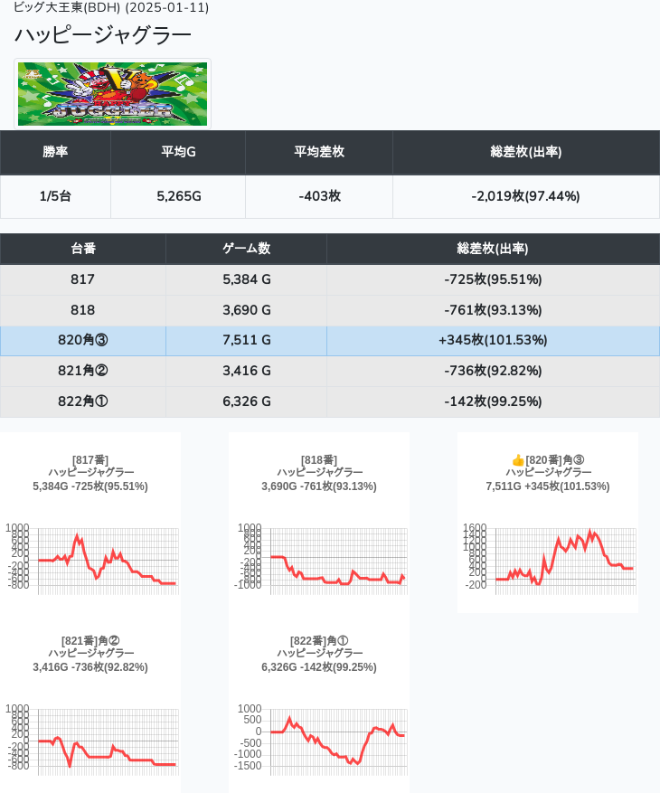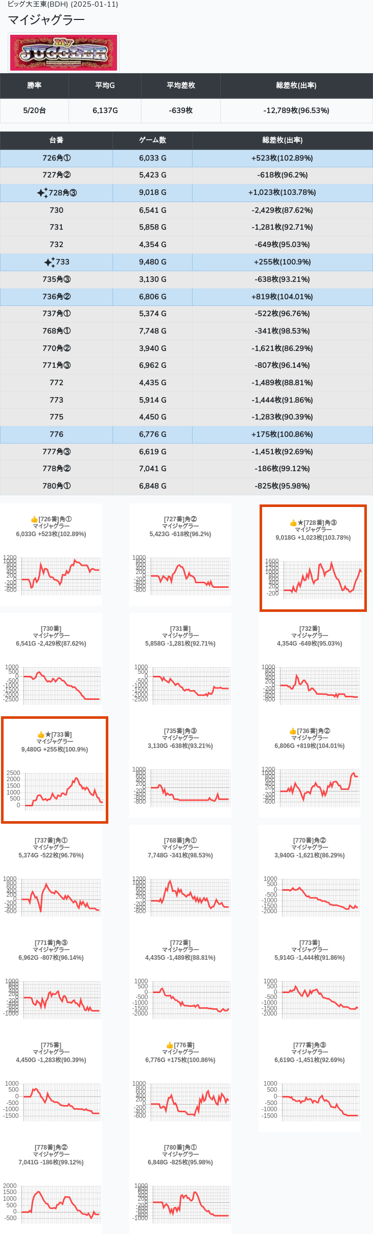 【オンサロ要望】 1月11日 ビッグ大王東(BDH) -102,864枚 スマスロ北斗 4/7台 番長4 3/3台 ファンキージャグラー 3/5台