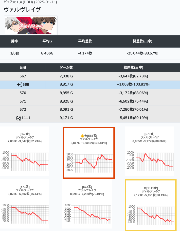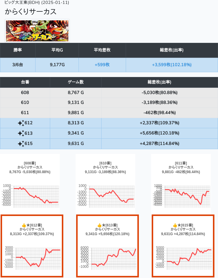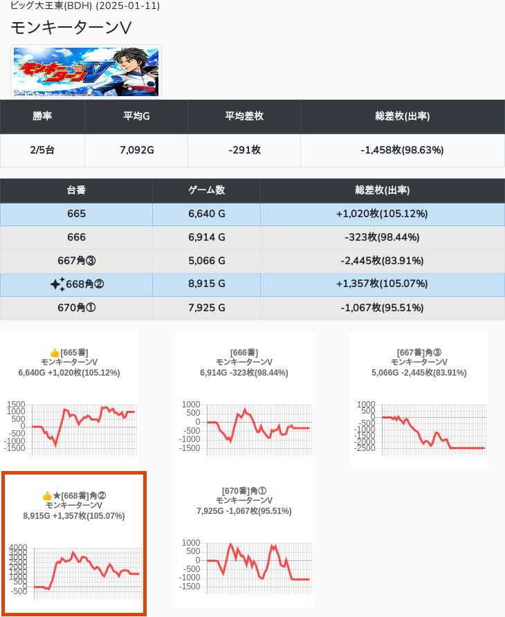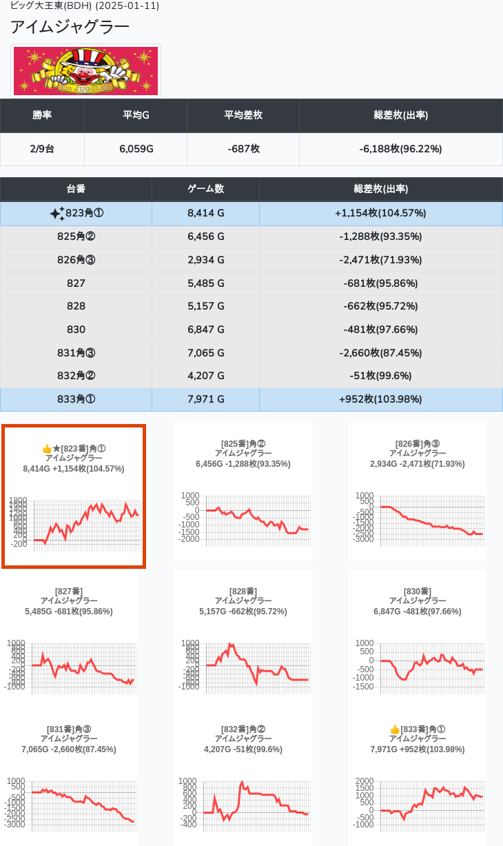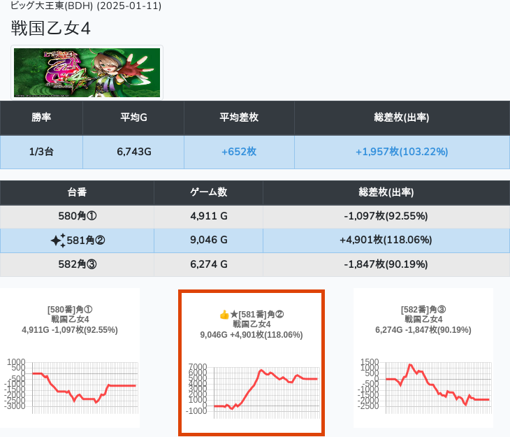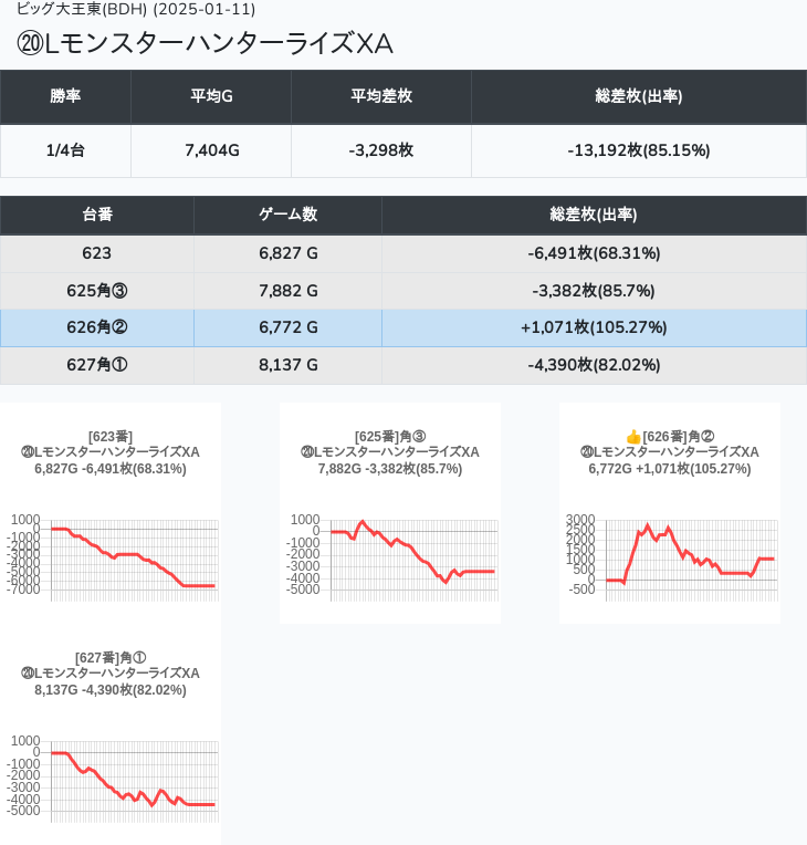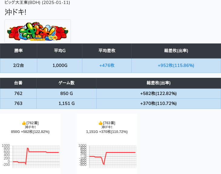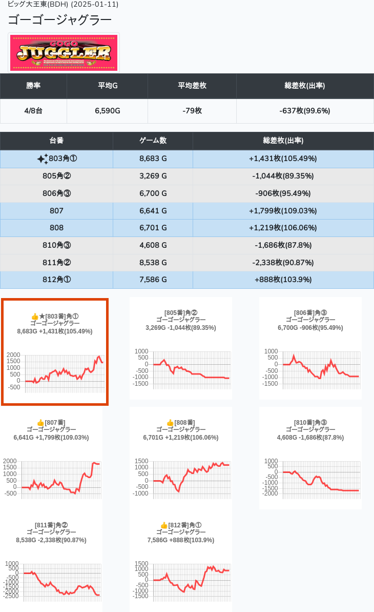 【オンサロ要望】 1月11日 ビッグ大王東(BDH) -102,864枚 スマスロ北斗 4/7台 番長4 3/3台 ファンキージャグラー 3/5台