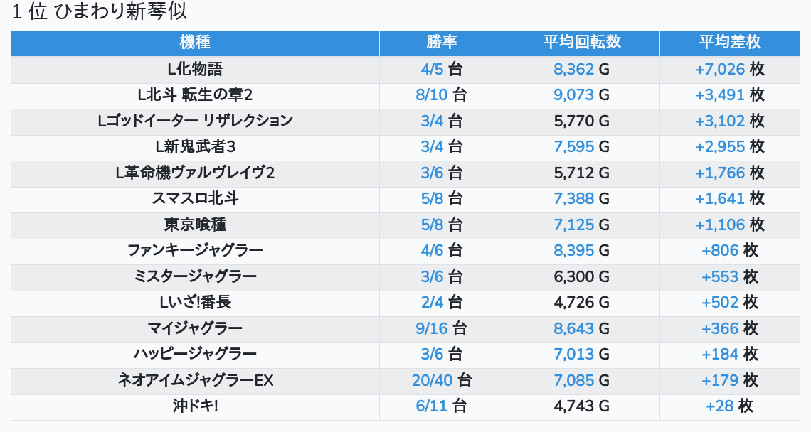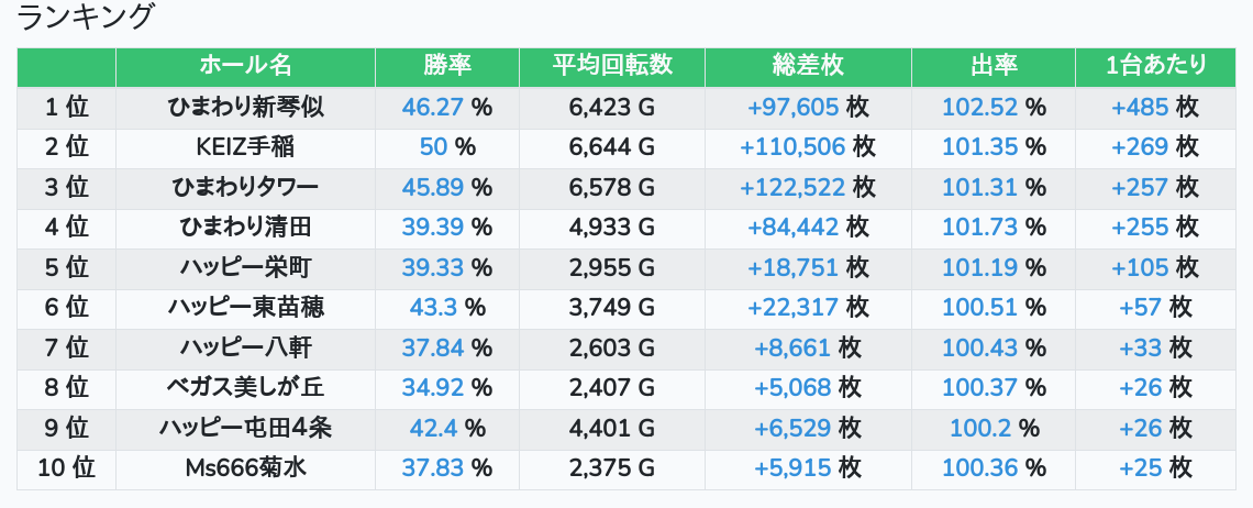 札幌ランキングの簡易データ 2026-01-10