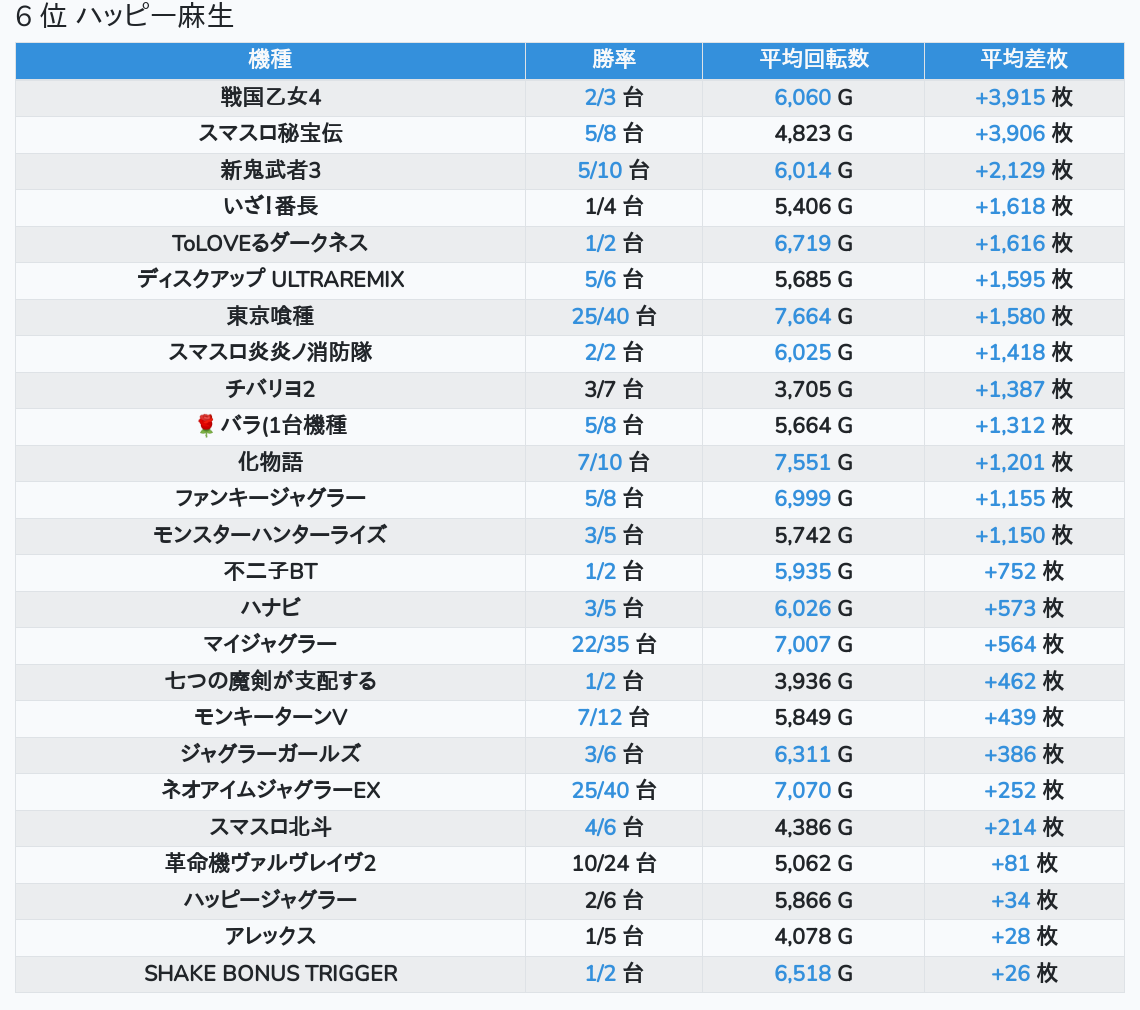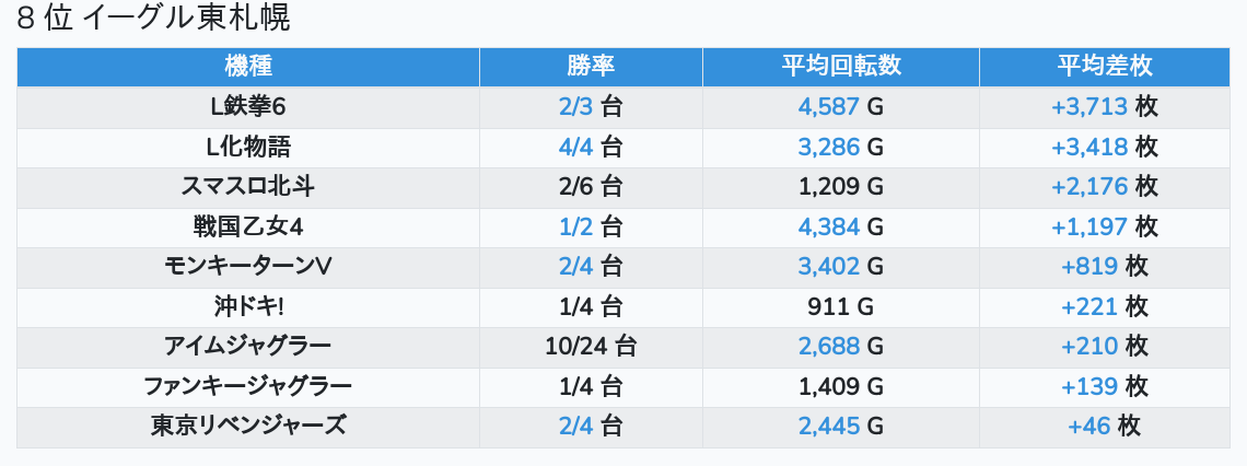 札幌ランキングの簡易データ 2026-01-11