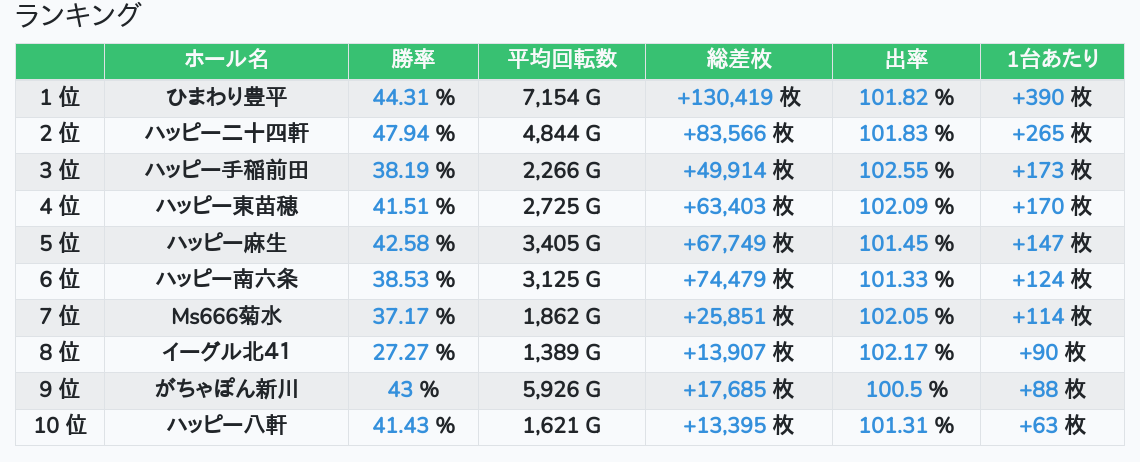 札幌ランキングの簡易データ 2026-01-22