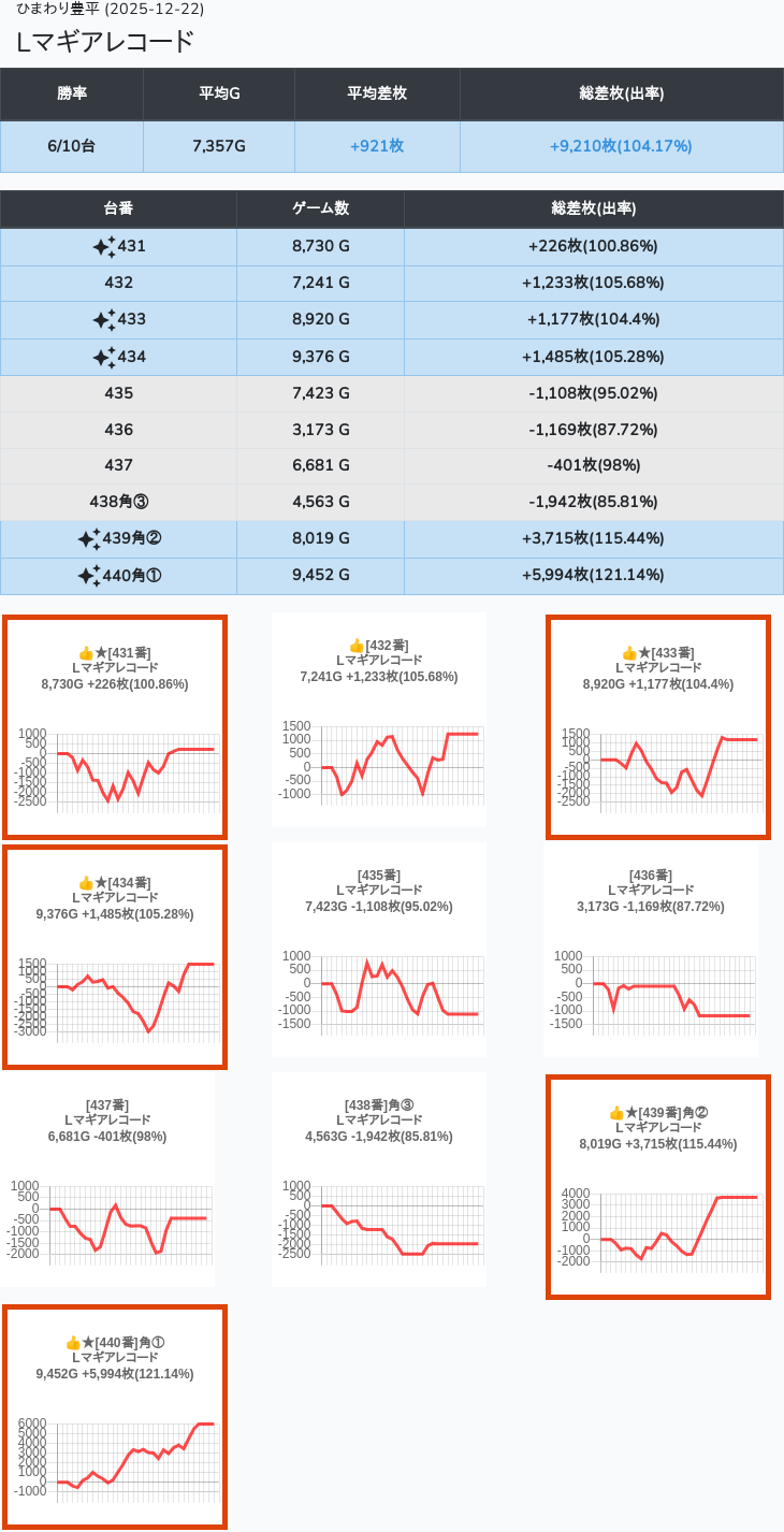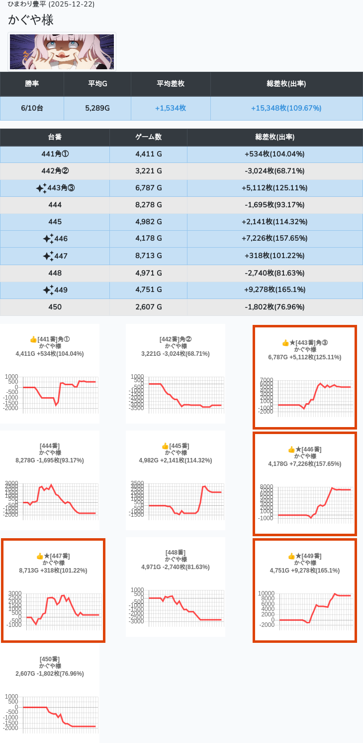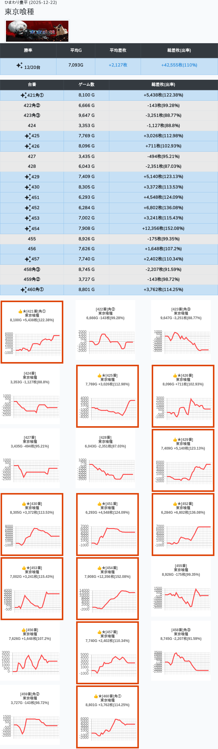 【オンサロ要望】 12月22日 ひまわり豊平 +85,278枚 東京喰種 12/20台 Lマギアレコード 6/10台 かぐや様 6/10台