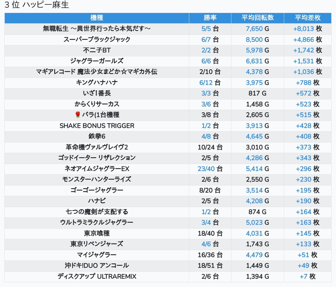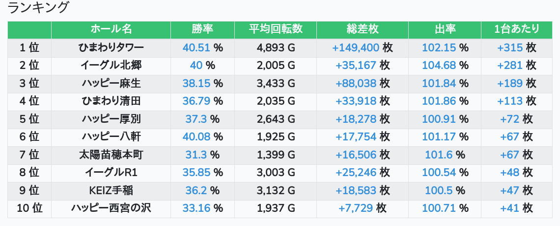 札幌ランキングの簡易データ 2026-01-25