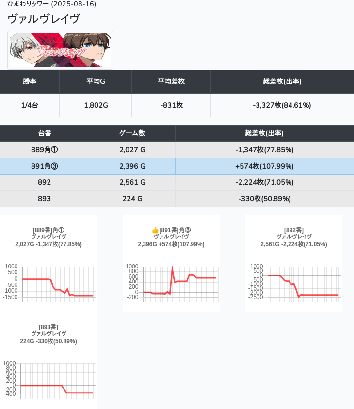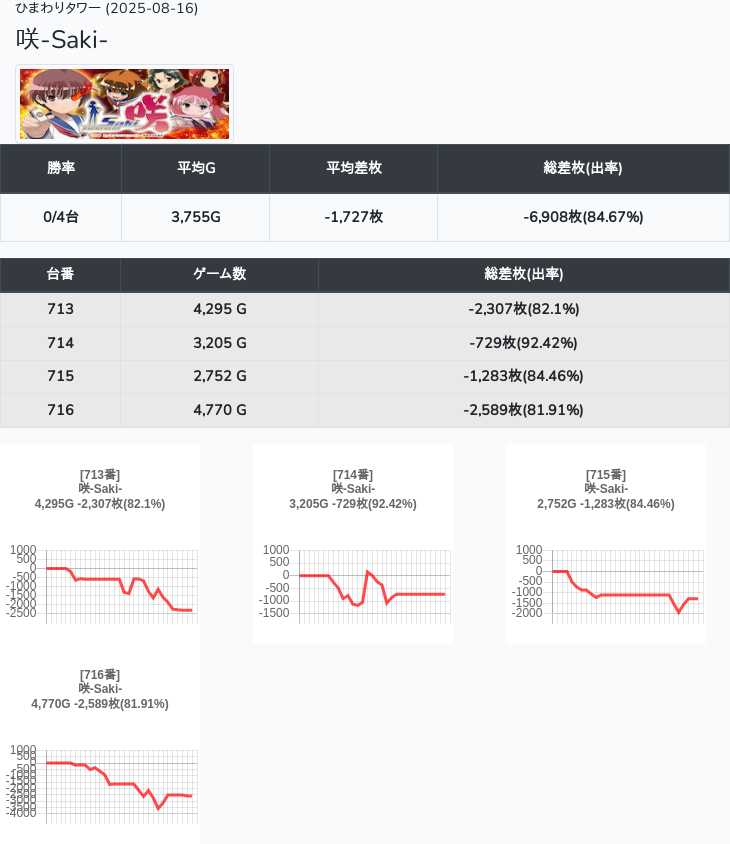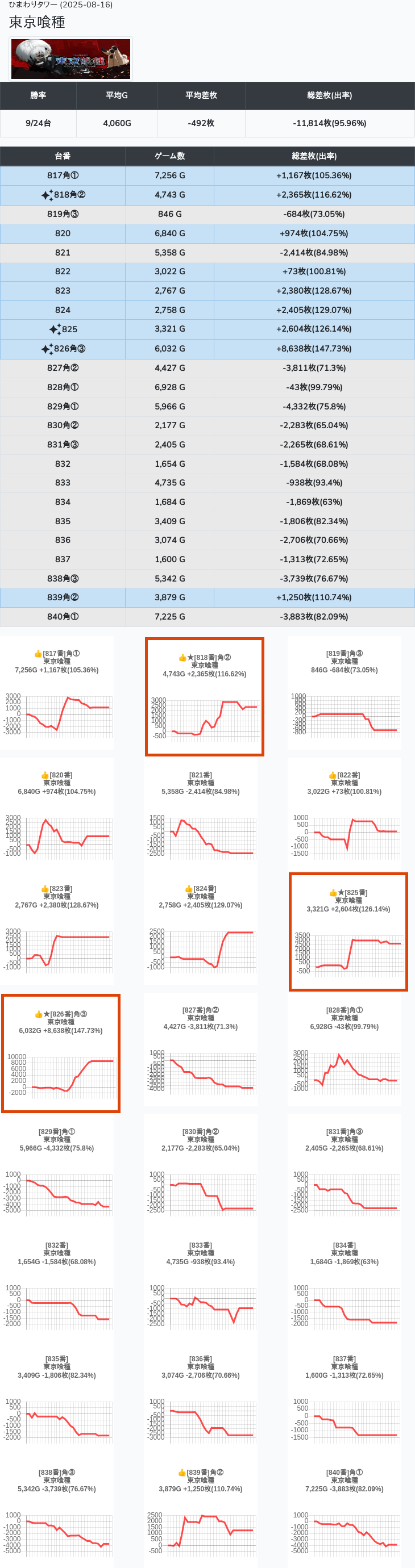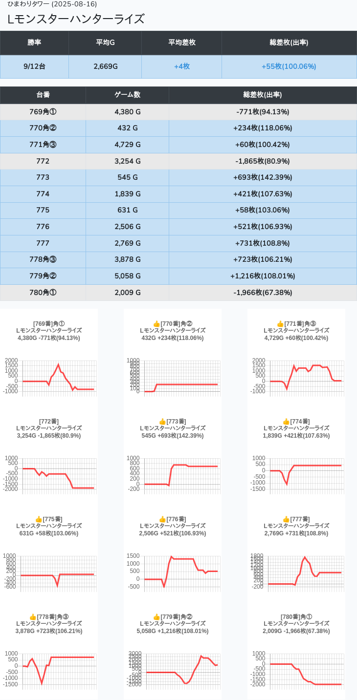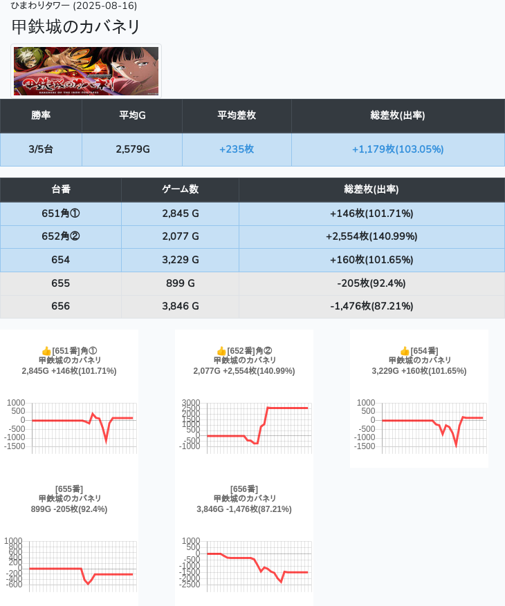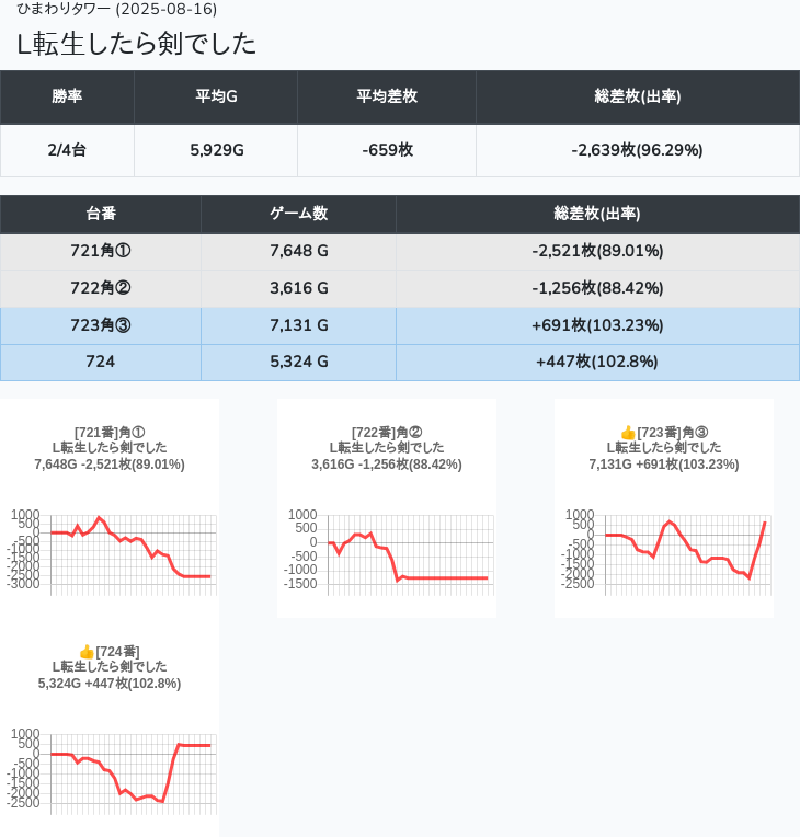 2026/01/27 aipos 【オンサロ要望】 8月16日 ひまわりタワー -83,572枚 甲鉄城のカバネリ 3/5台 Lスーパーブラックジャック 4/6台 Lモンスターハンターライズ 9/12台