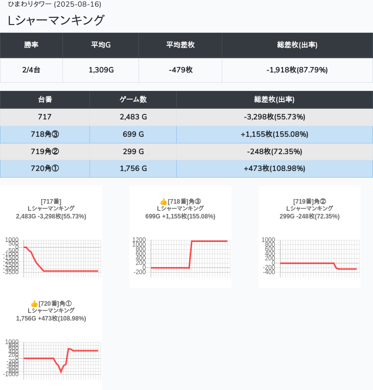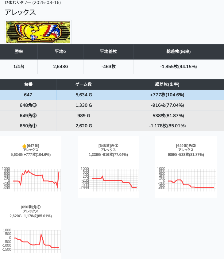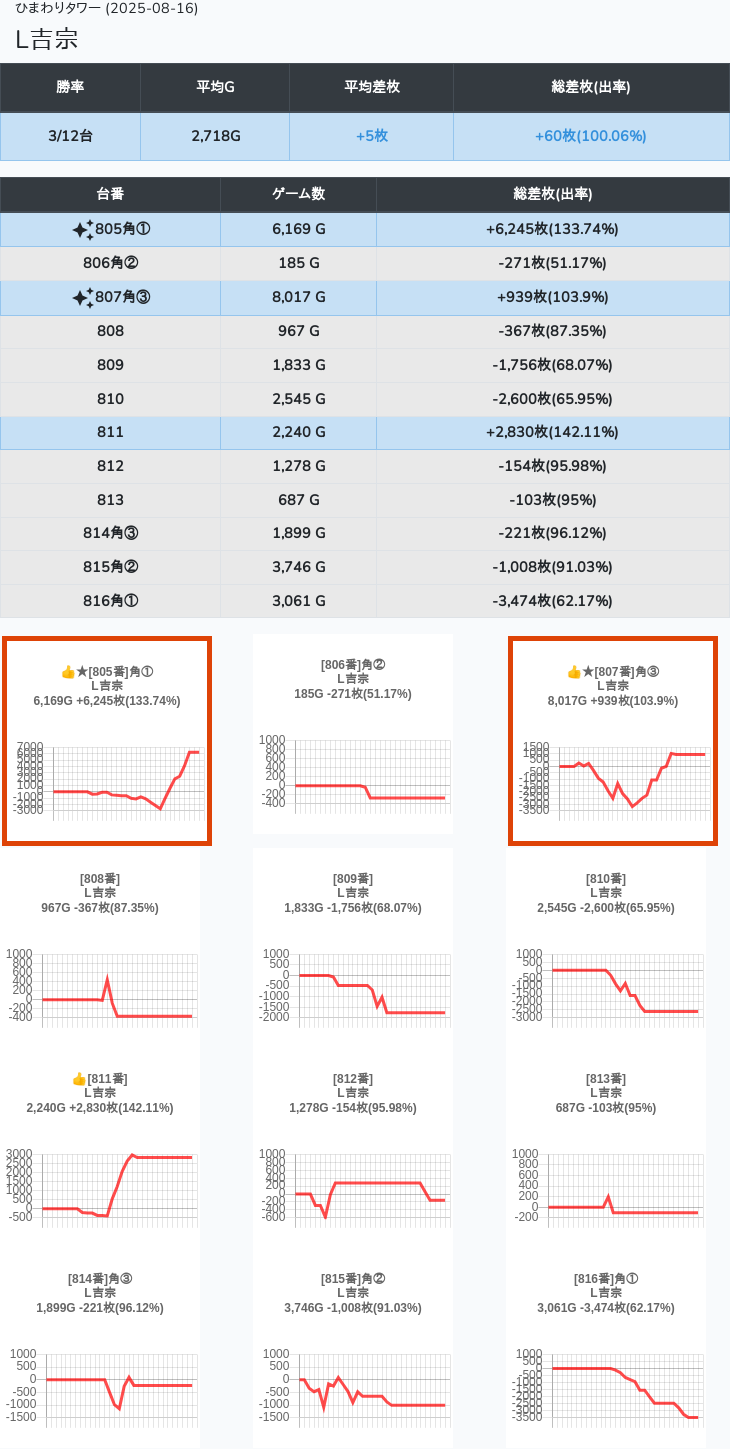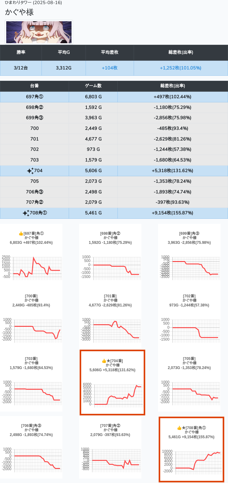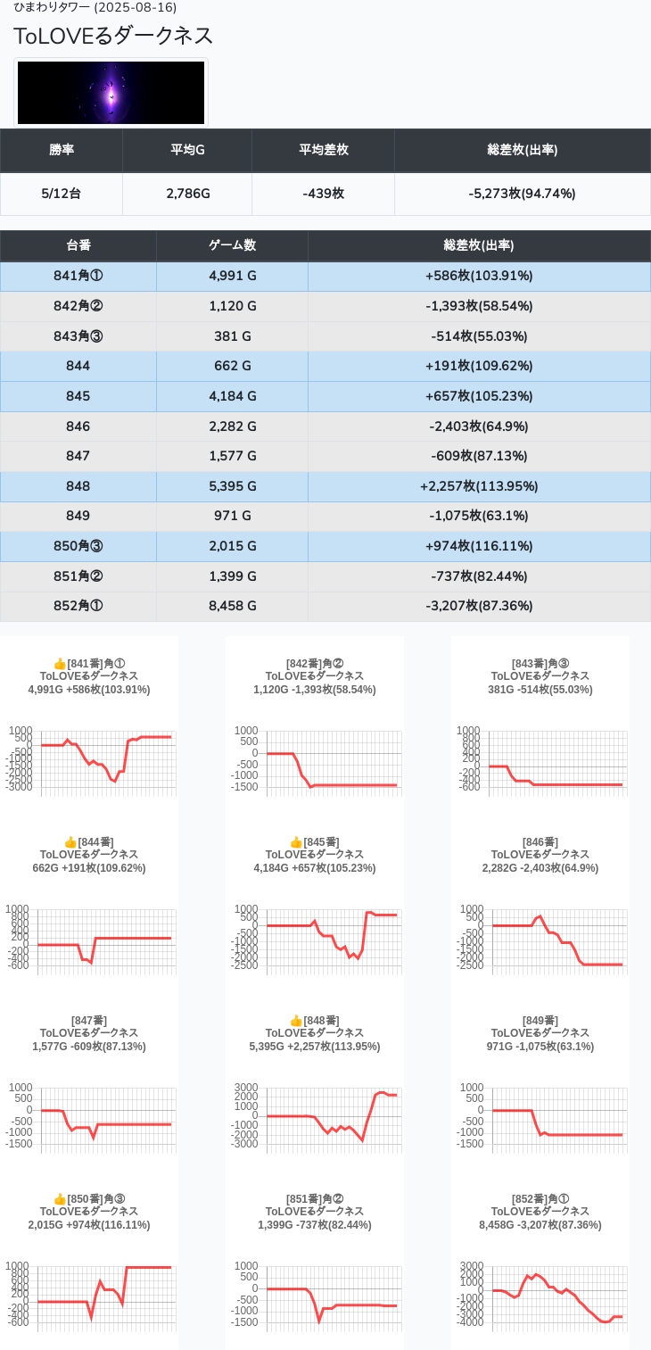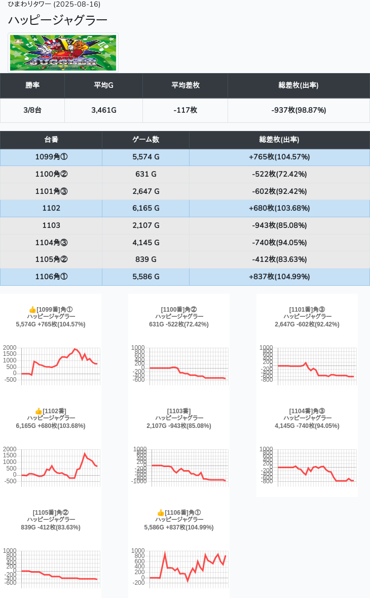 2026/01/27 aipos 【オンサロ要望】 8月16日 ひまわりタワー -83,572枚 甲鉄城のカバネリ 3/5台 Lスーパーブラックジャック 4/6台 Lモンスターハンターライズ 9/12台