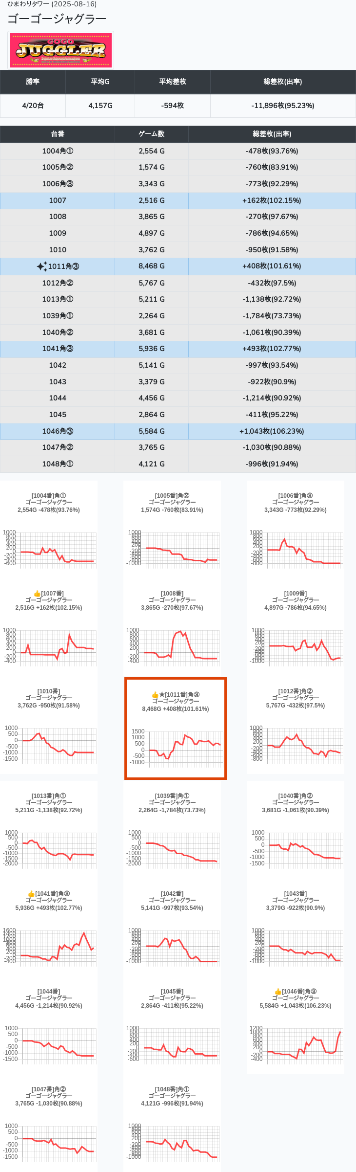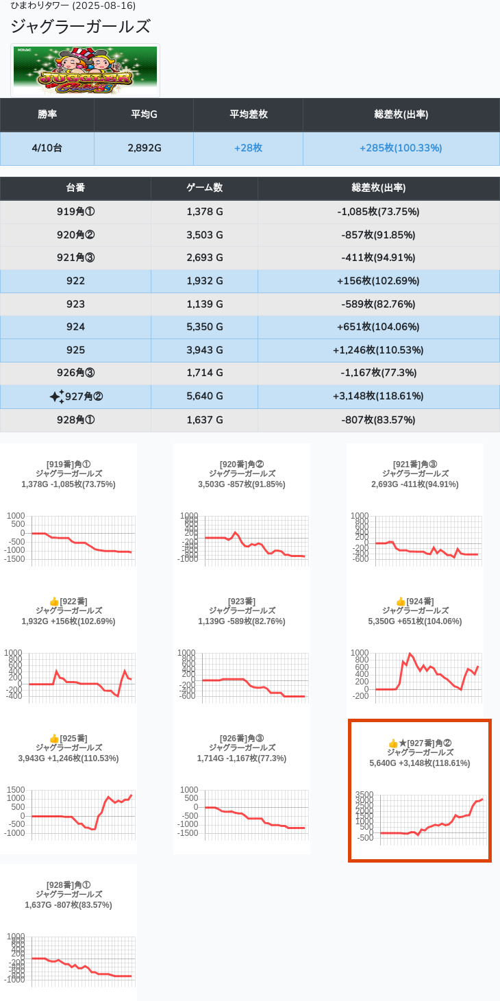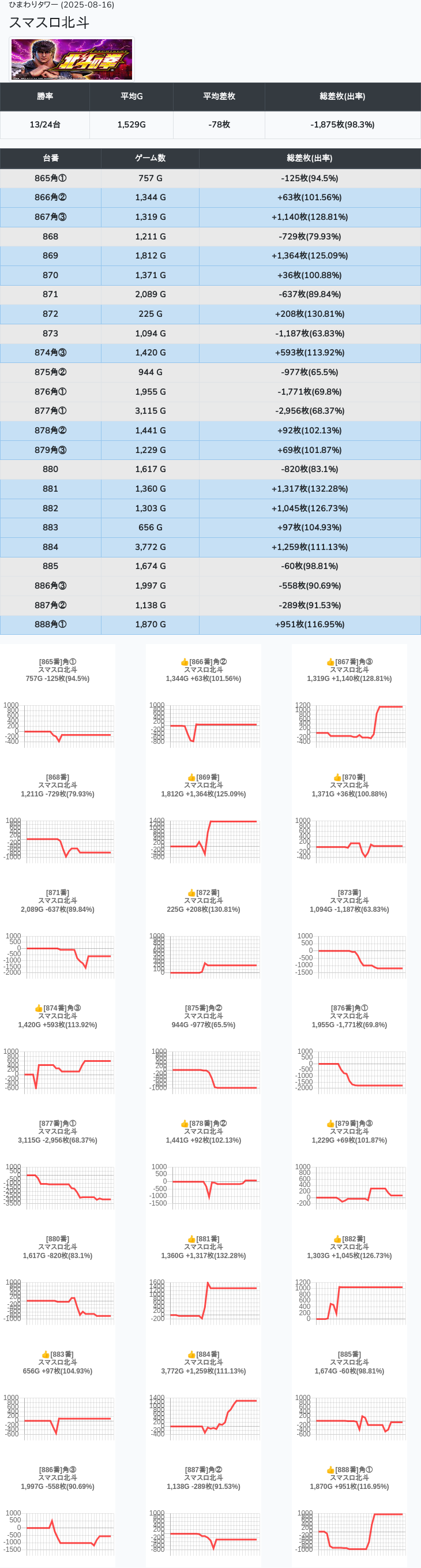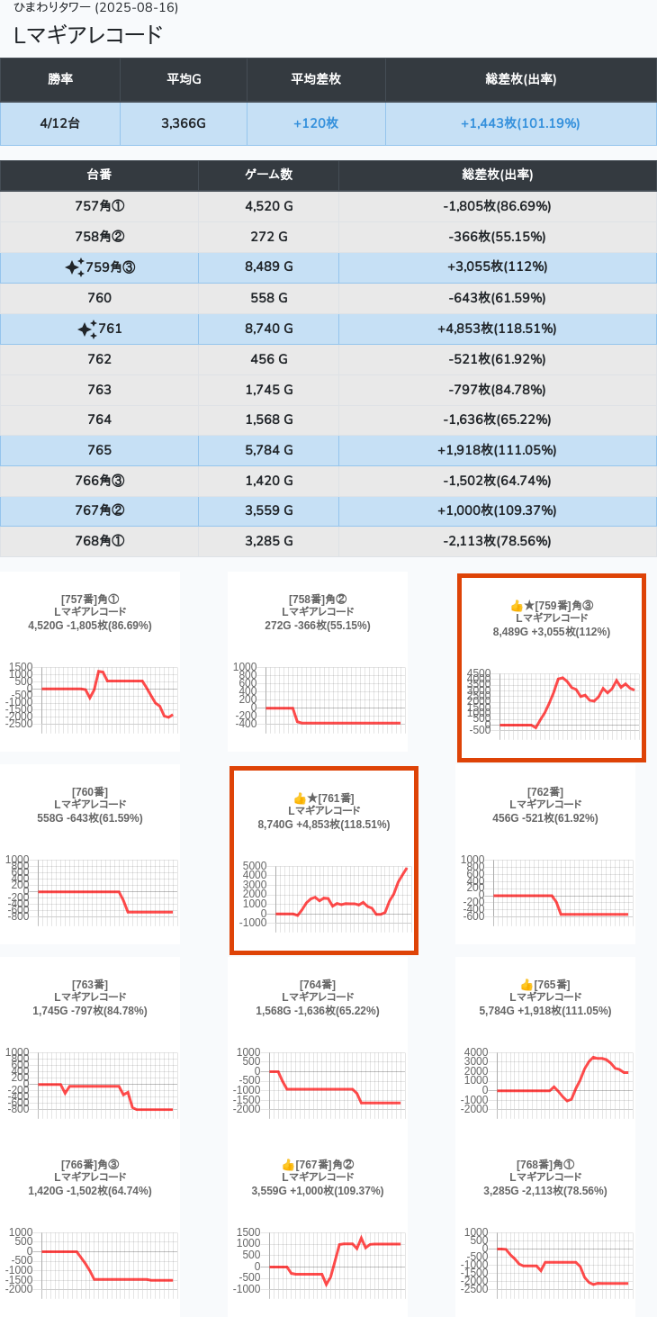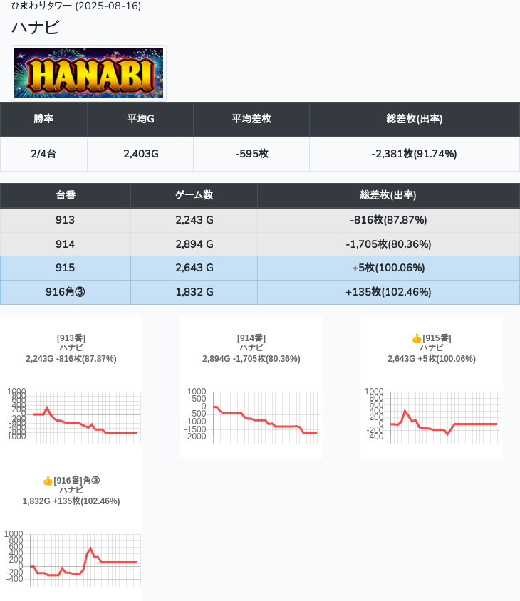 2026/01/27 aipos 【オンサロ要望】 8月16日 ひまわりタワー -83,572枚 甲鉄城のカバネリ 3/5台 Lスーパーブラックジャック 4/6台 Lモンスターハンターライズ 9/12台
