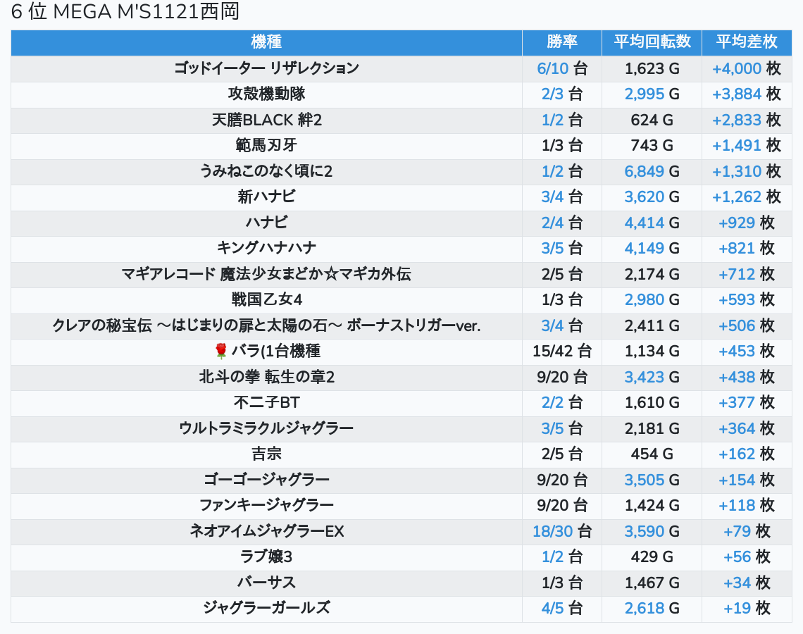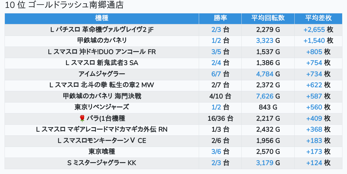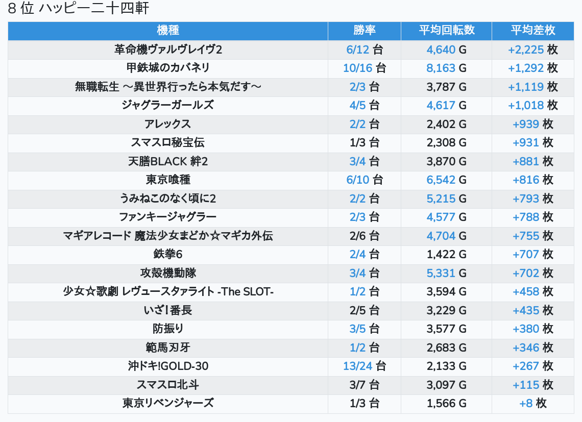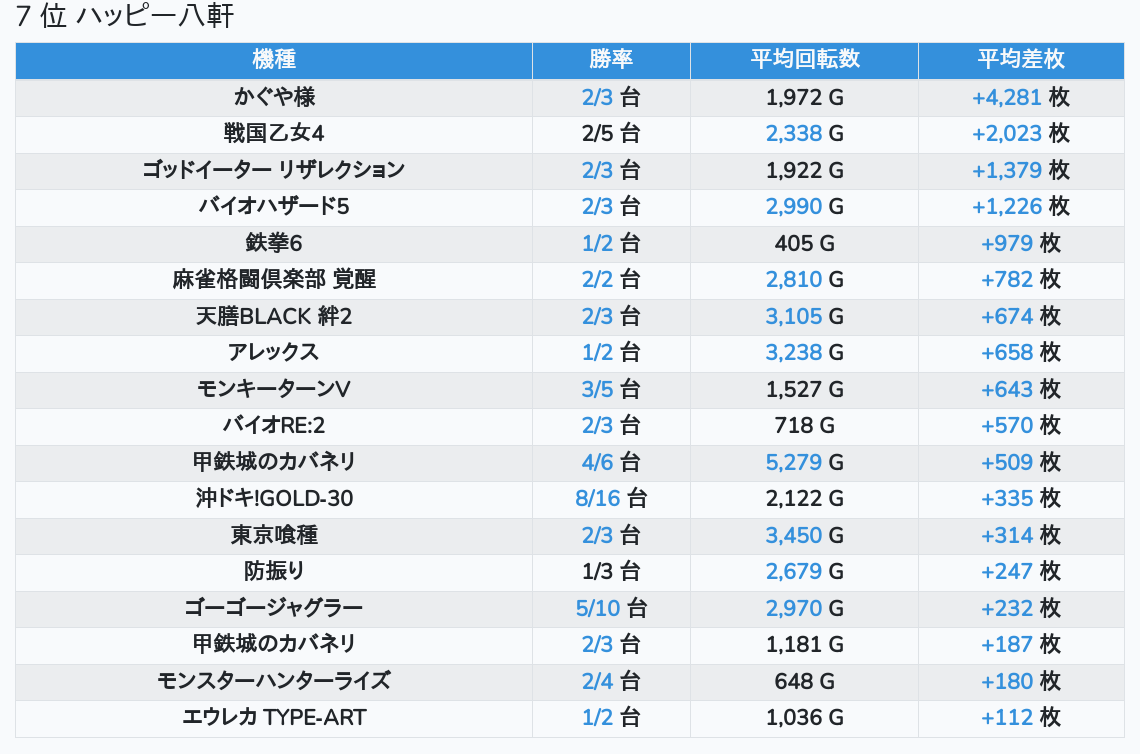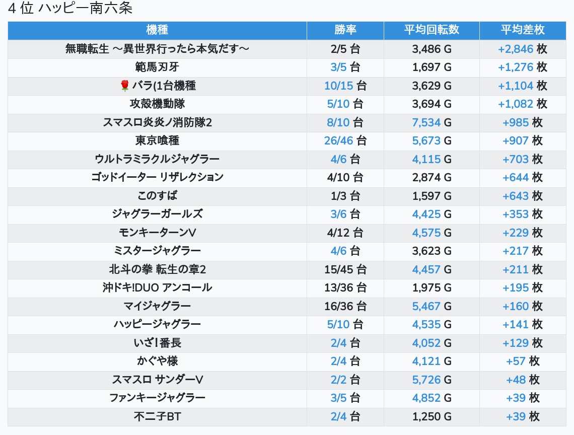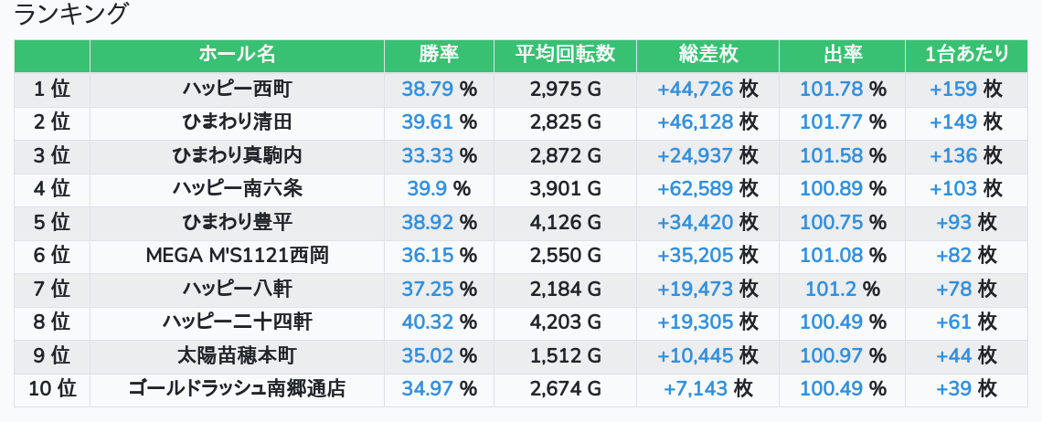 札幌ランキングの簡易データ 2026-03-11