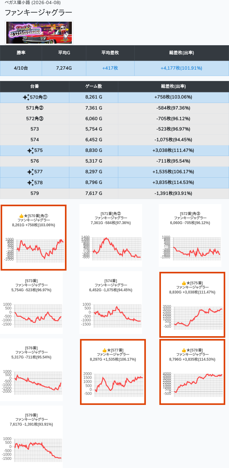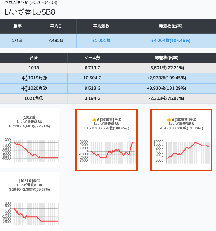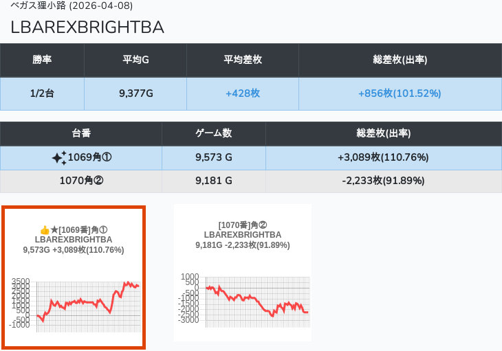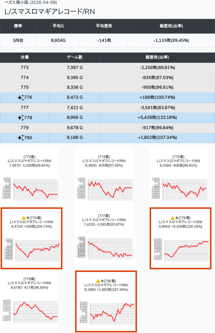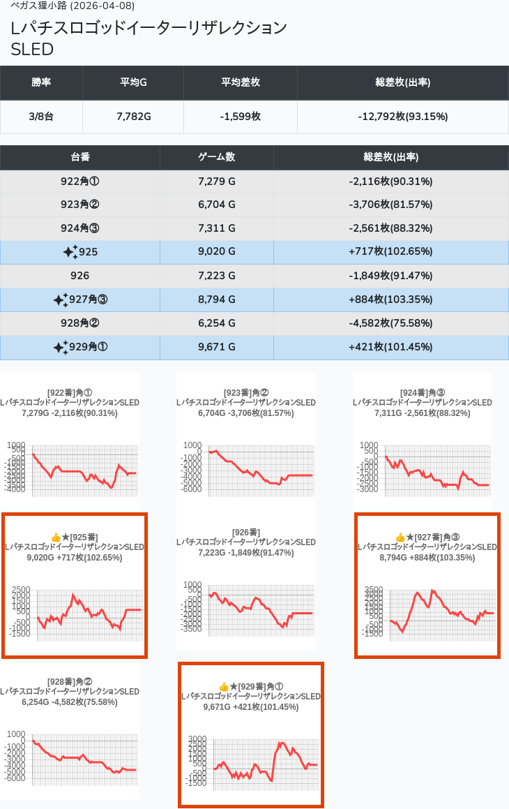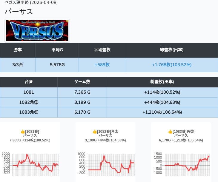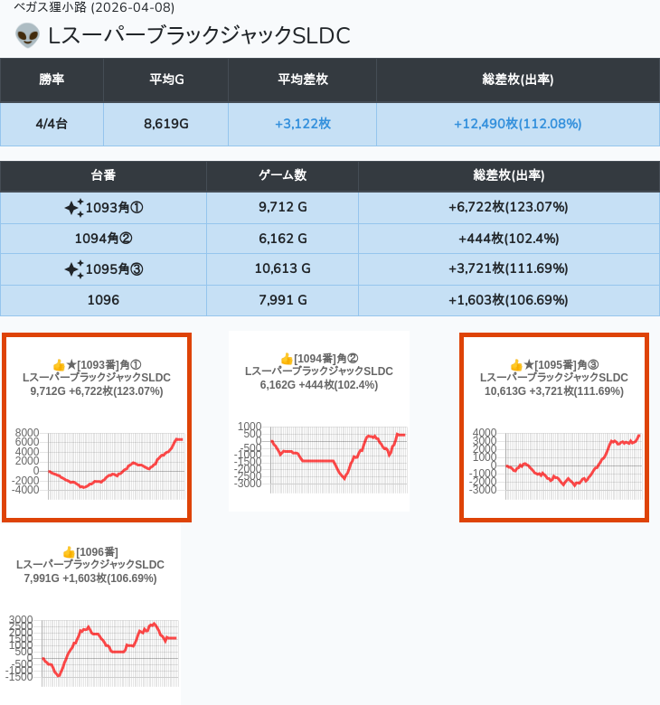【オンサロ要望】 4月8日 ベガス狸小路 +169,239枚 バーサス 3/3台 LスーパーブラックジャックSLDC 4/4台 ゴーゴージャグラー 10/14台