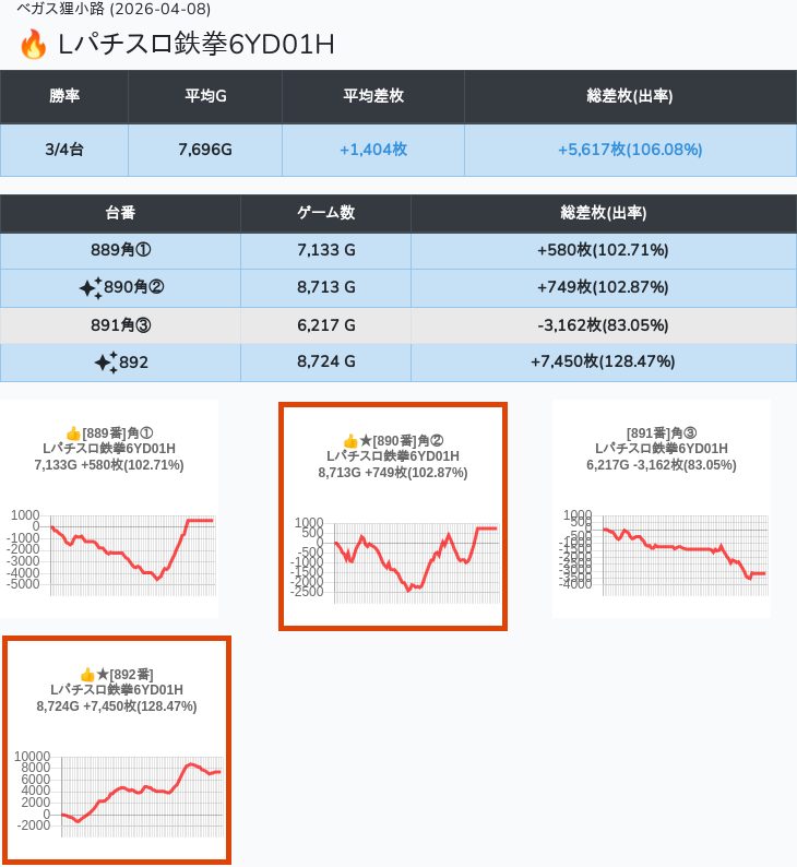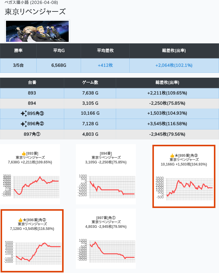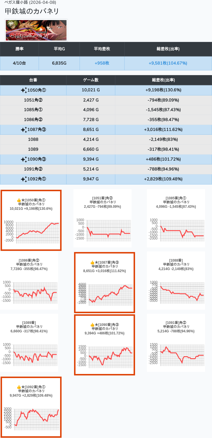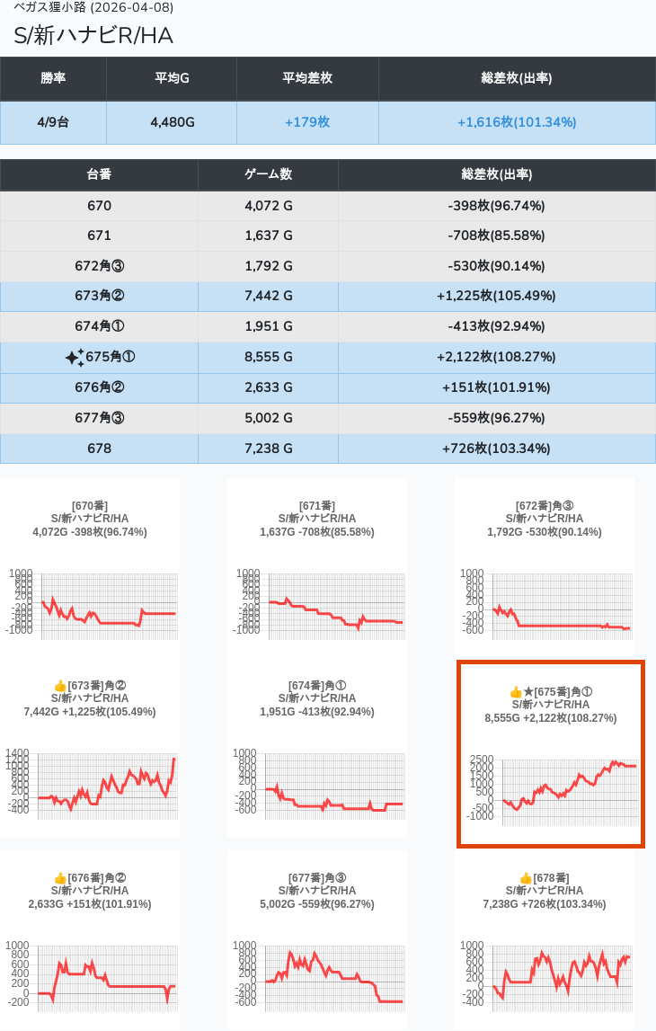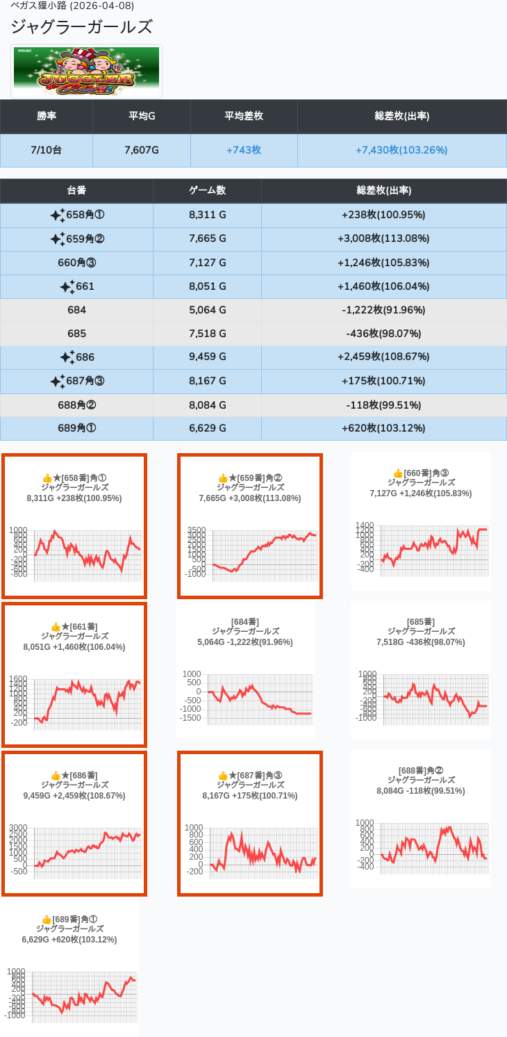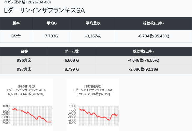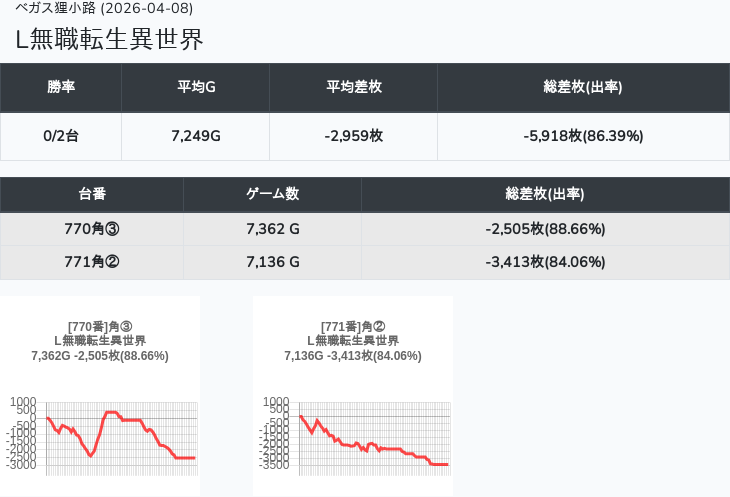 【オンサロ要望】 4月8日 ベガス狸小路 +169,239枚 バーサス 3/3台 LスーパーブラックジャックSLDC 4/4台 ゴーゴージャグラー 10/14台