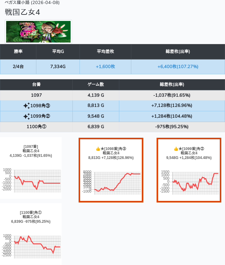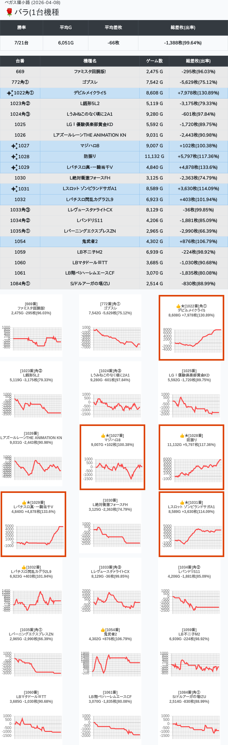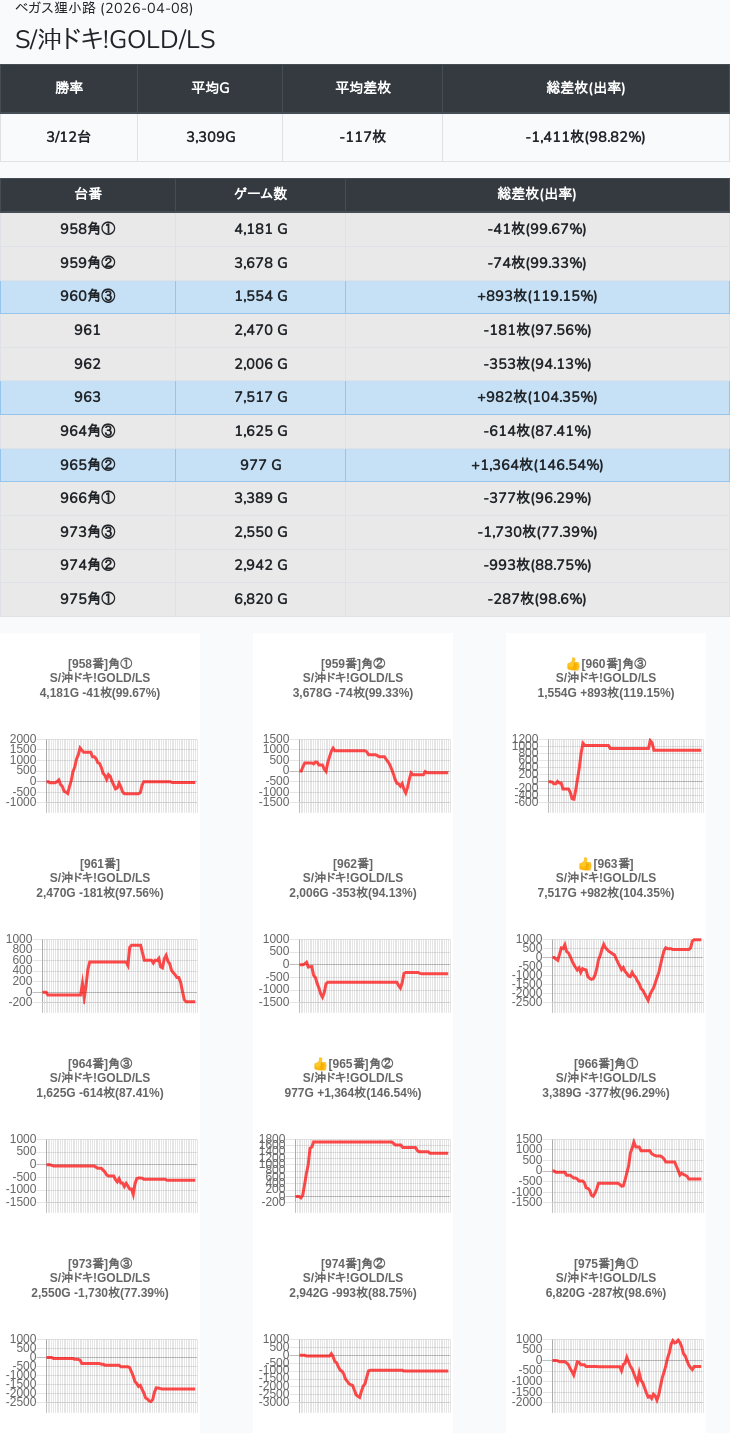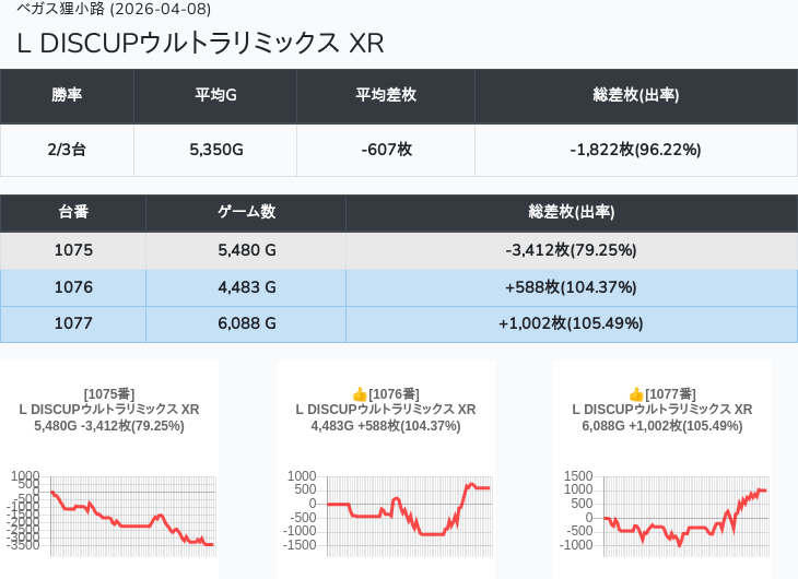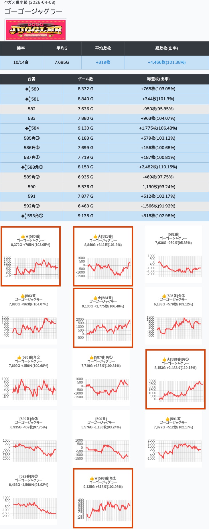 【オンサロ要望】 4月8日 ベガス狸小路 +169,239枚 バーサス 3/3台 LスーパーブラックジャックSLDC 4/4台 ゴーゴージャグラー 10/14台