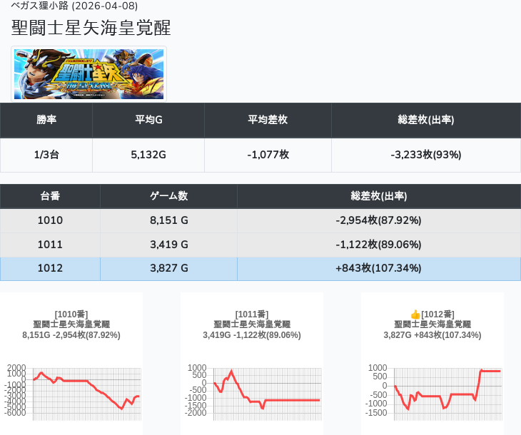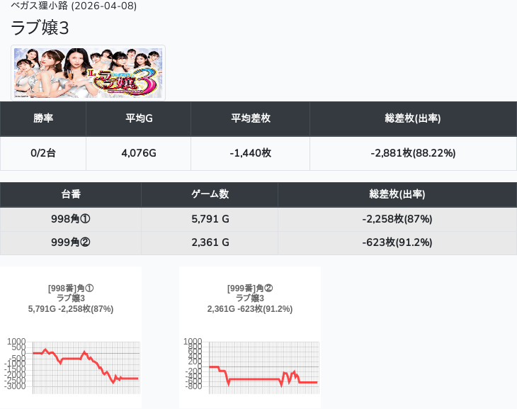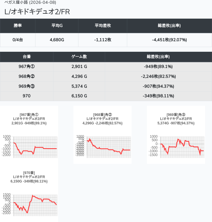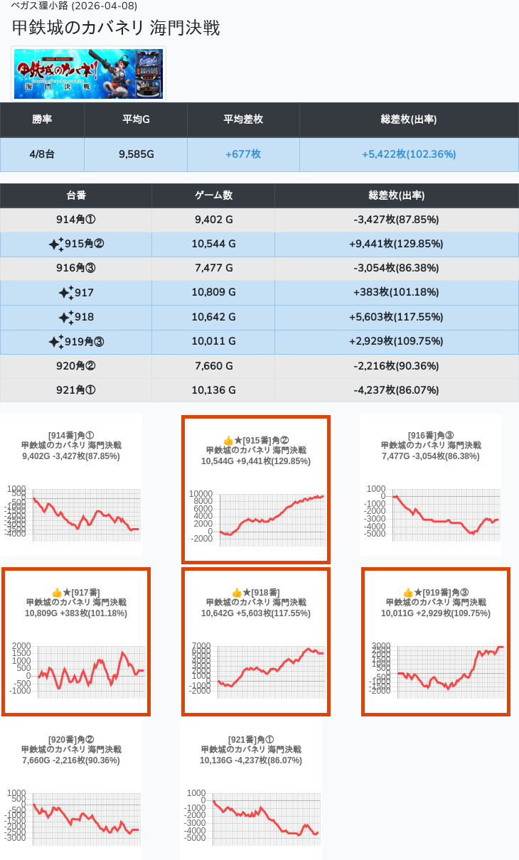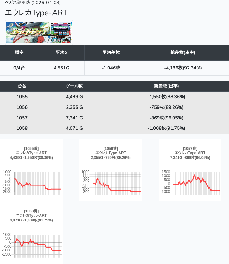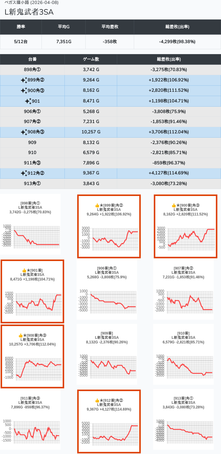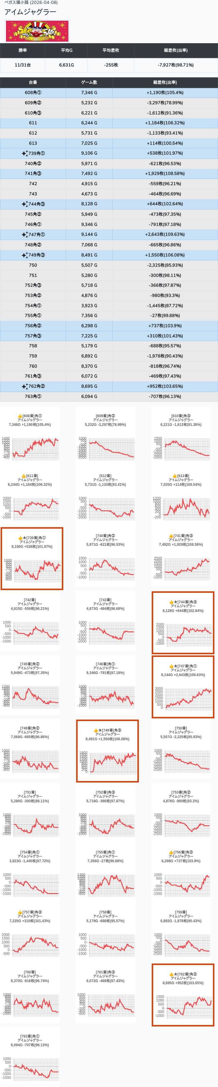 【オンサロ要望】 4月8日 ベガス狸小路 +169,239枚 バーサス 3/3台 LスーパーブラックジャックSLDC 4/4台 ゴーゴージャグラー 10/14台