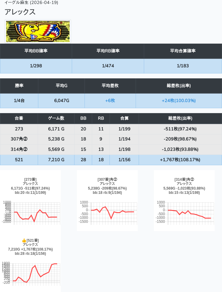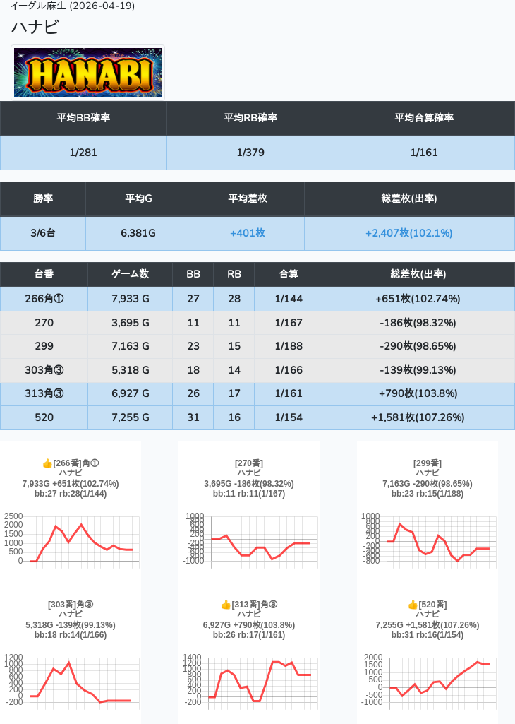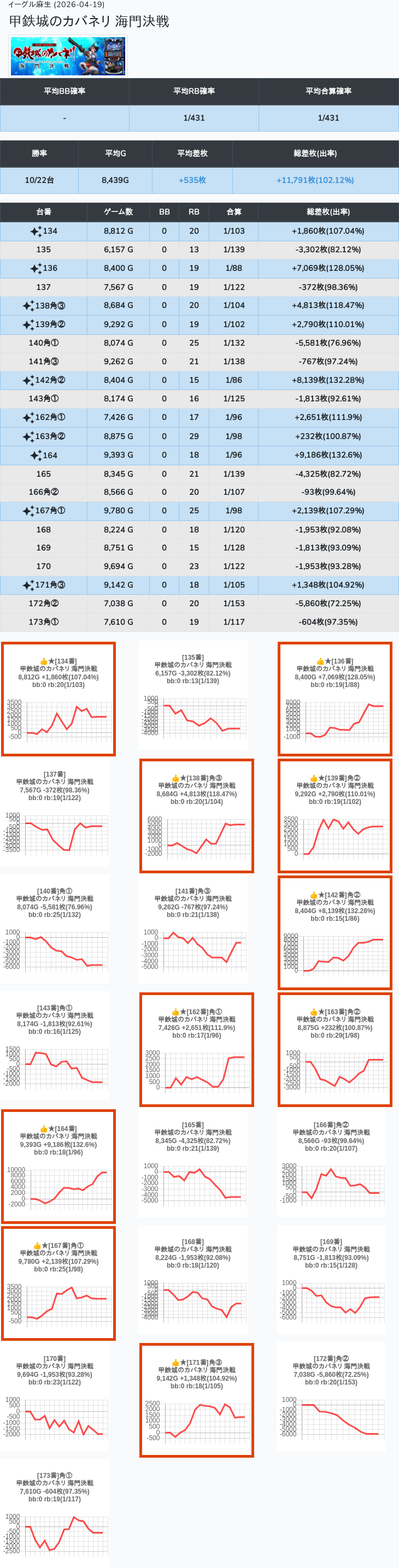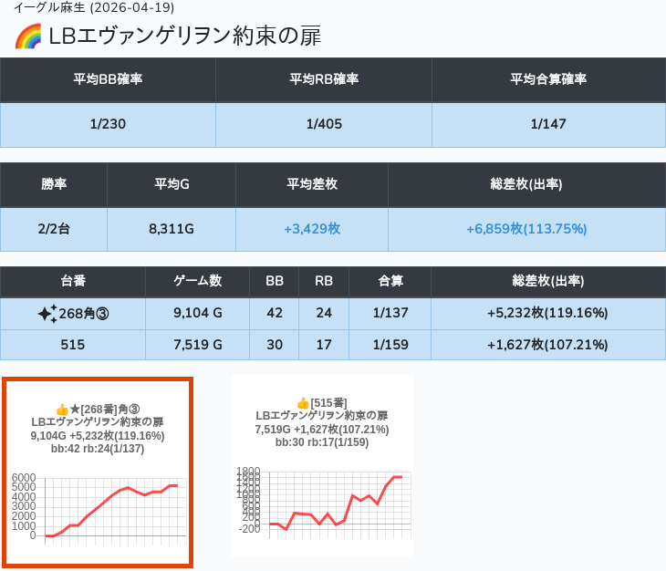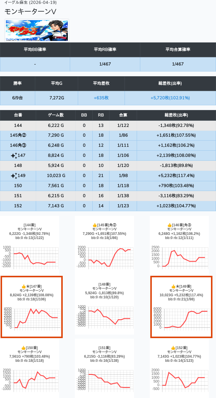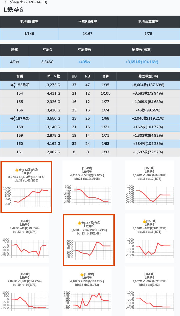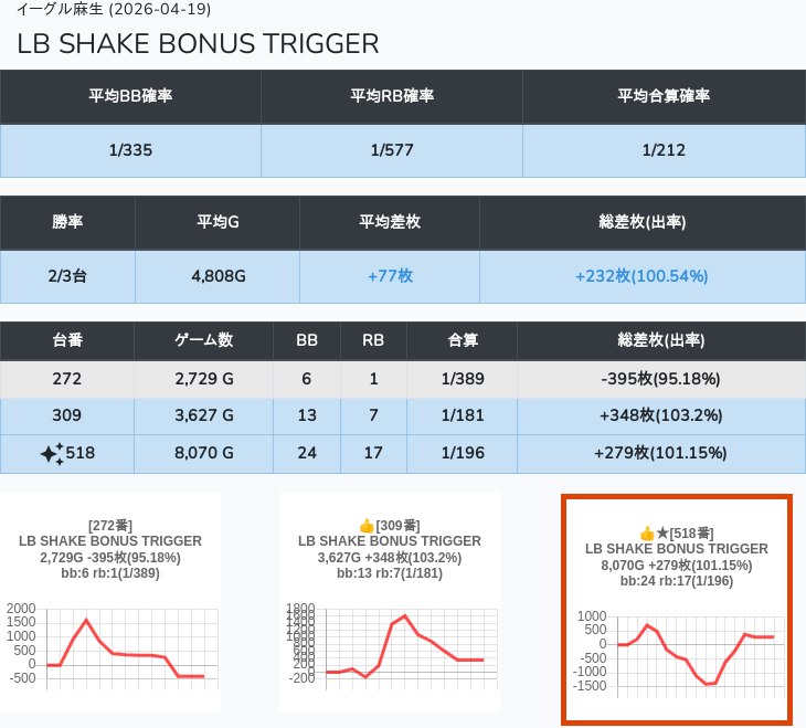 【オンサロ要望】 4月19日 イーグル麻生 -15,054枚 L真打吉宗 8/11台 L新鬼武者3 6/8台 L攻殻機動隊 6/10台