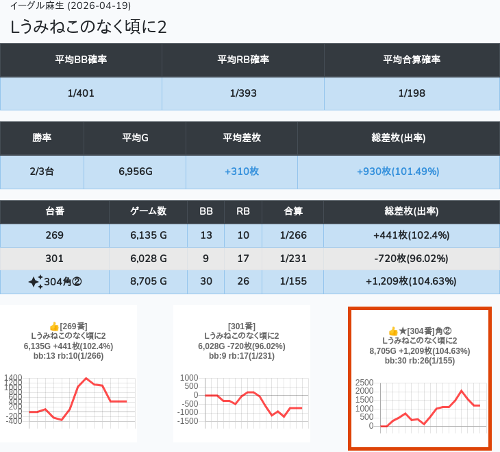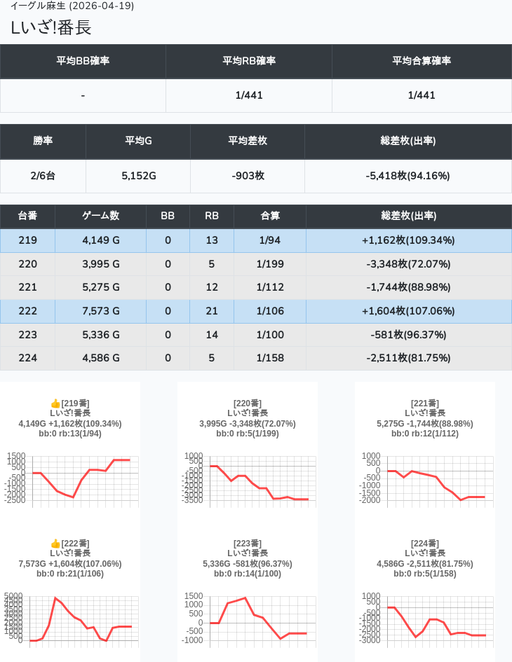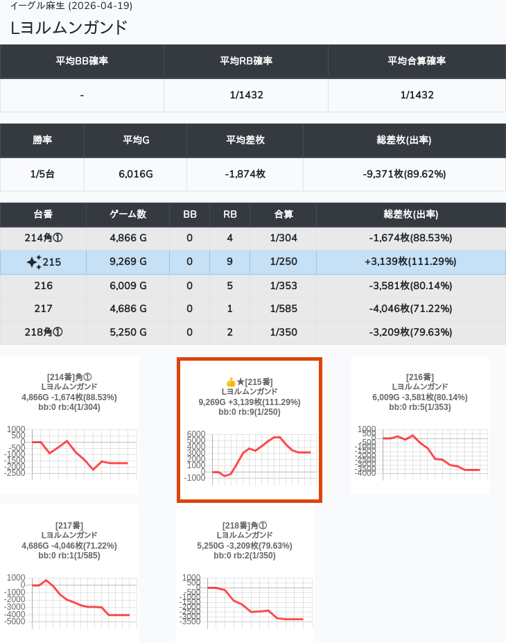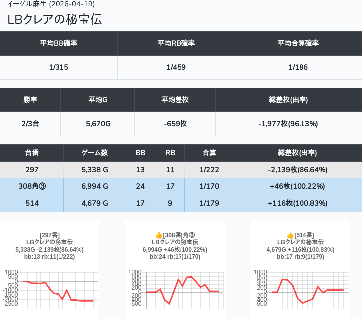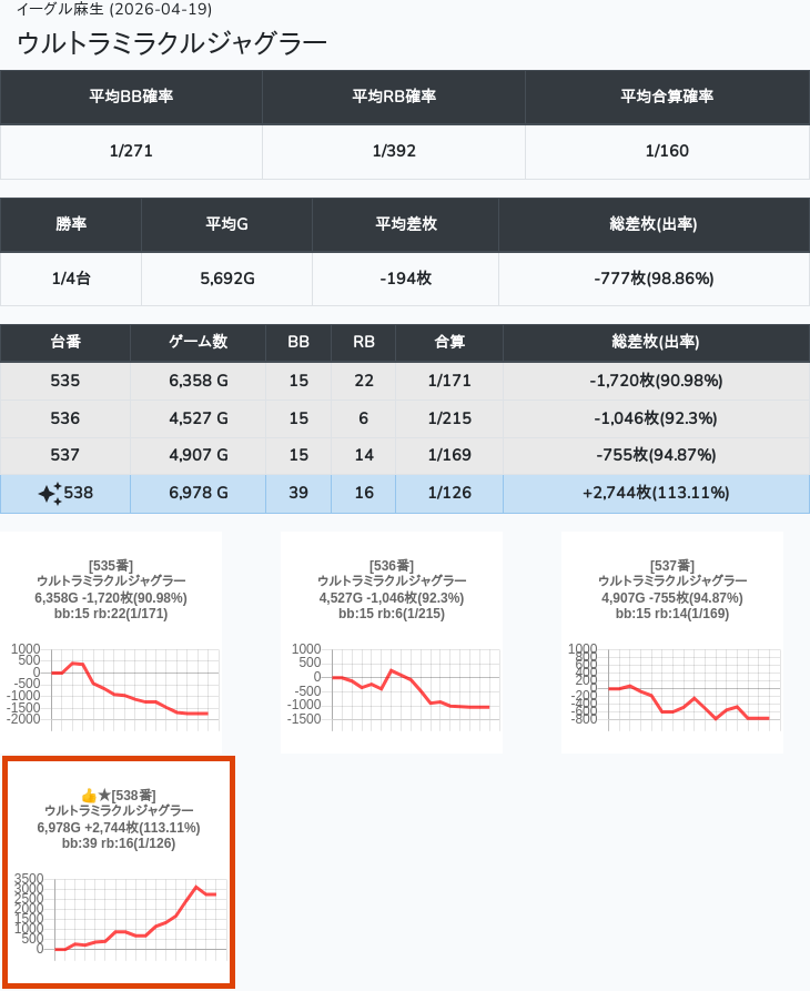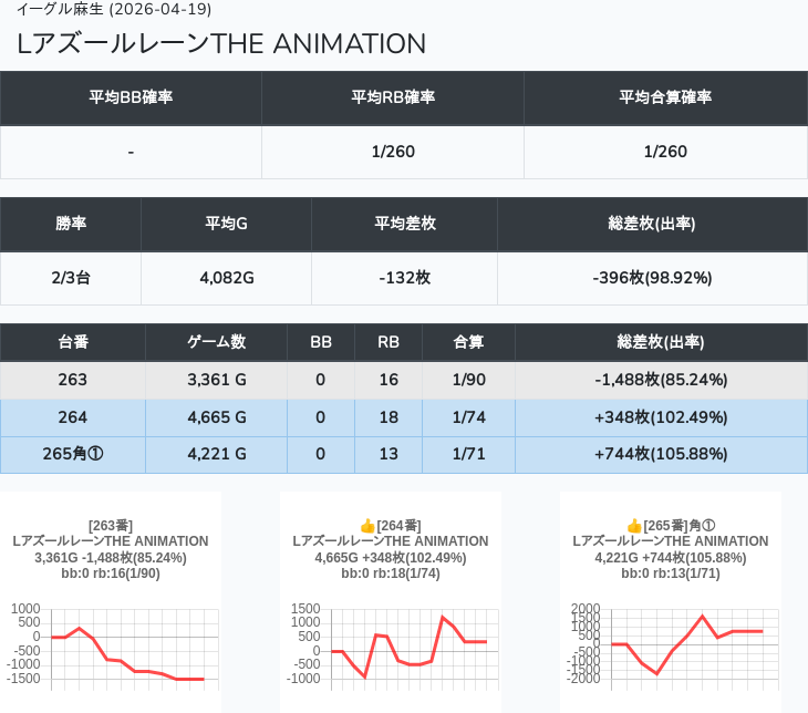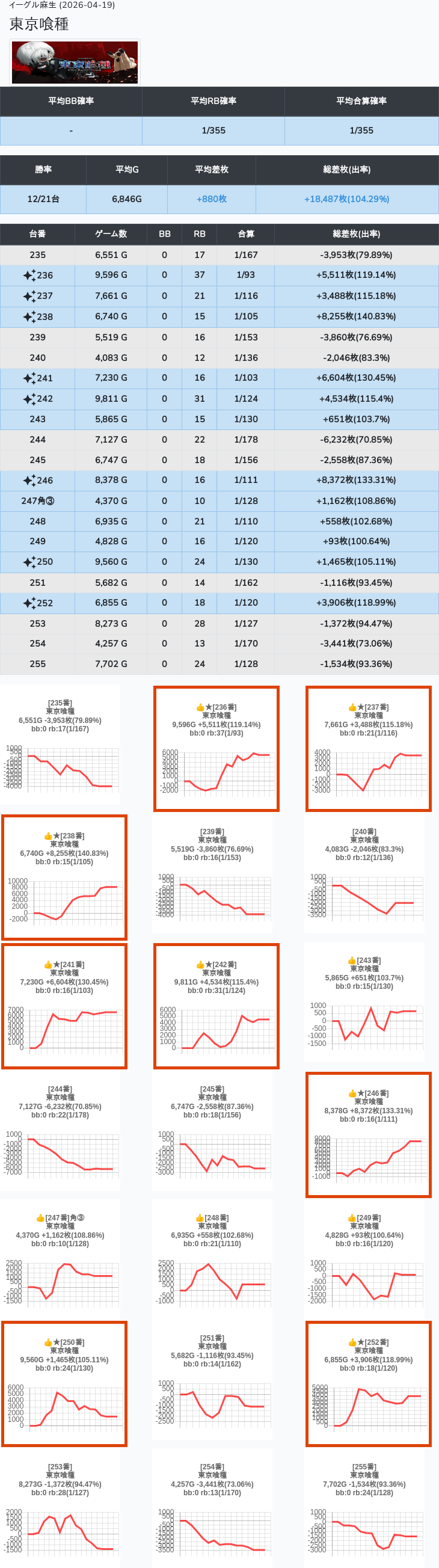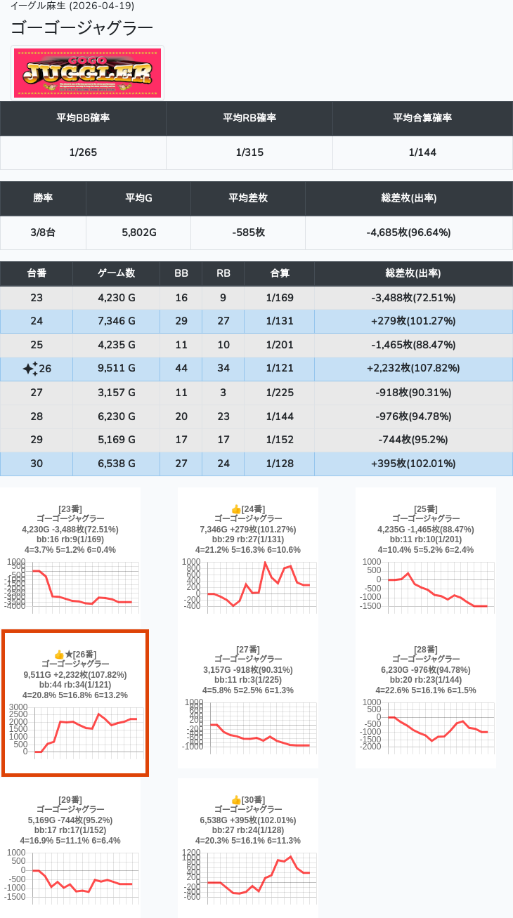【オンサロ要望】 4月19日 イーグル麻生 -15,054枚 L真打吉宗 8/11台 L新鬼武者3 6/8台 L攻殻機動隊 6/10台