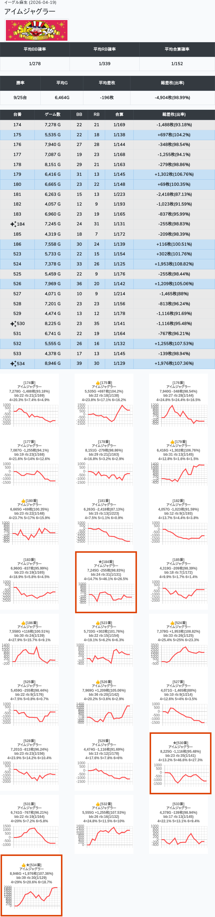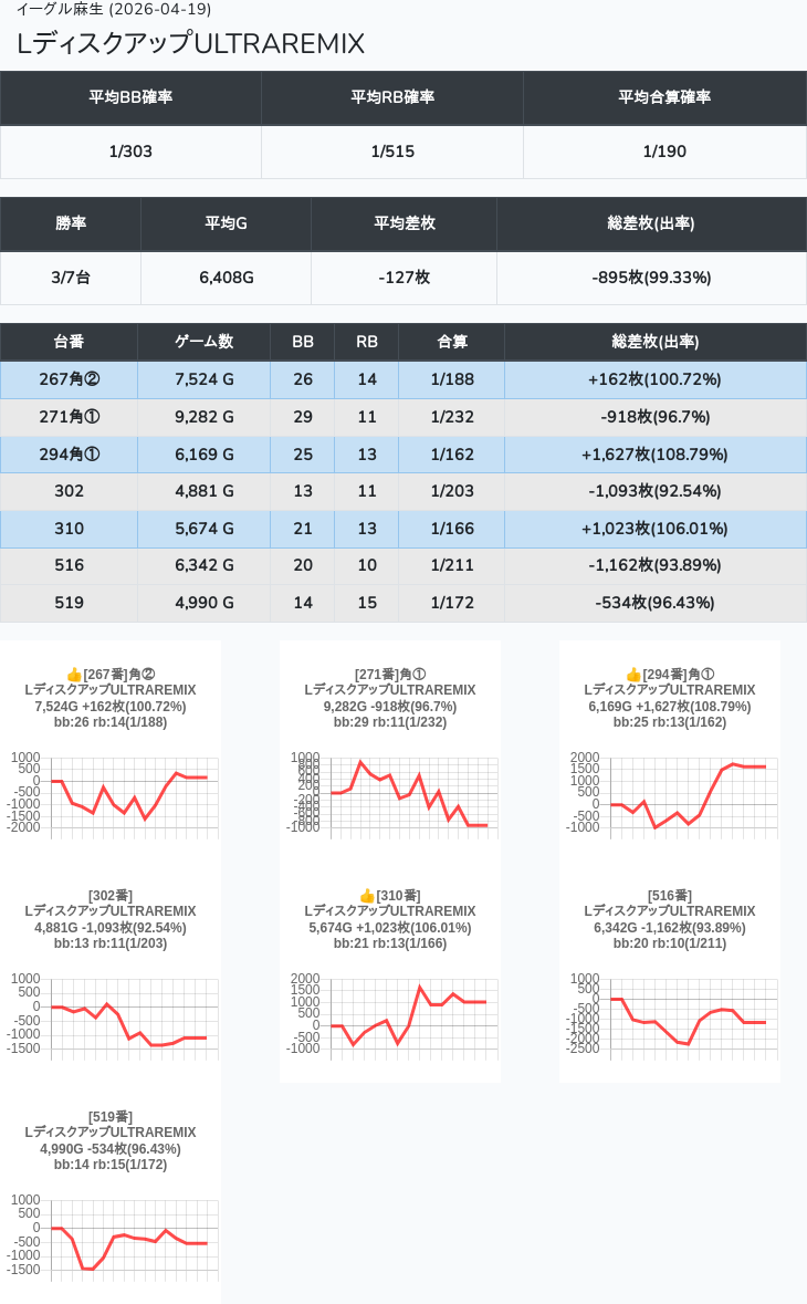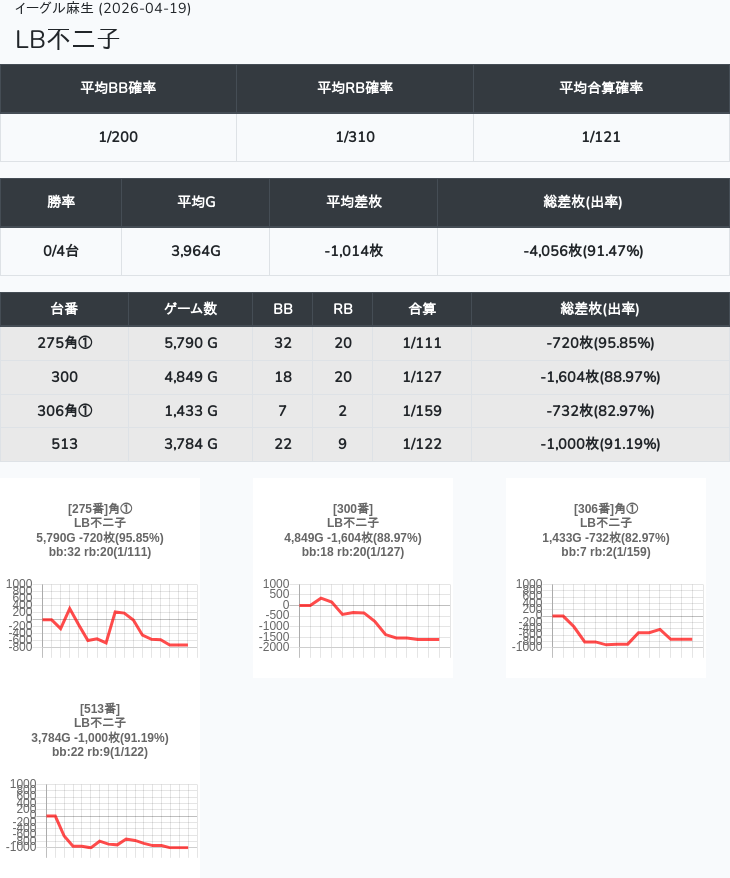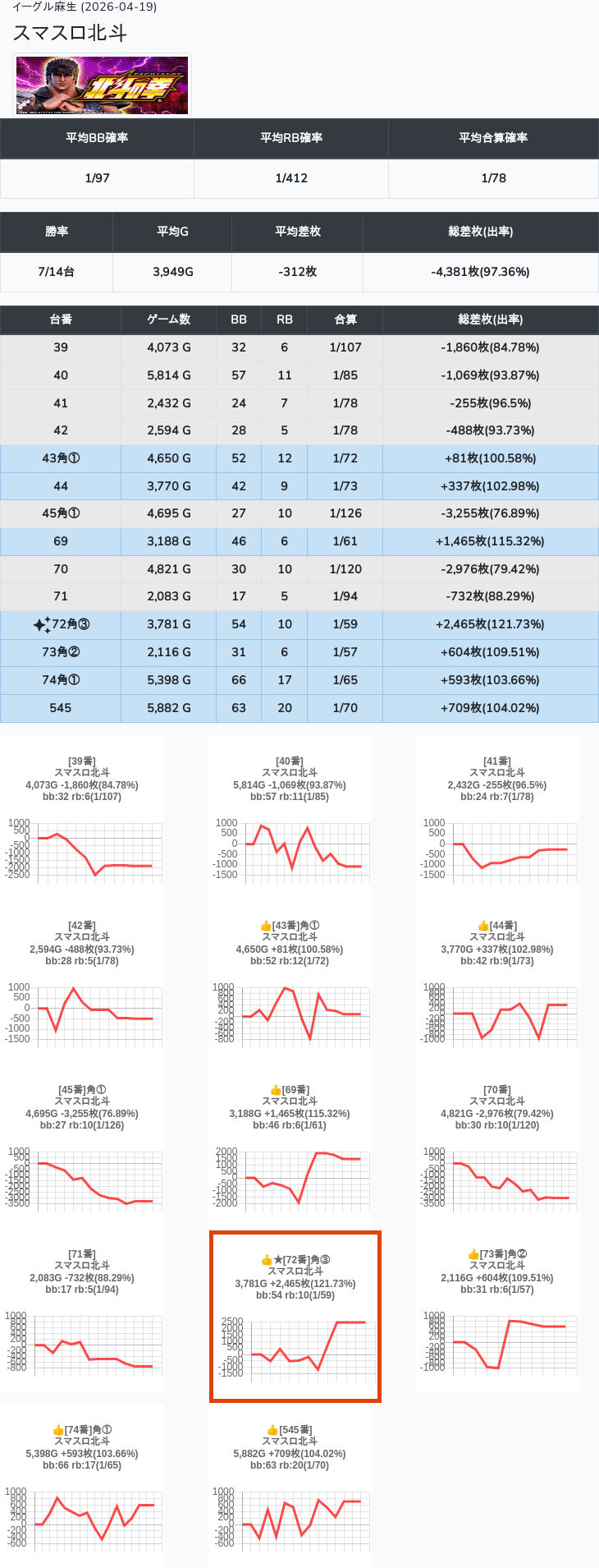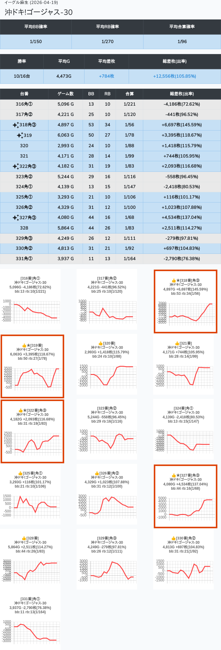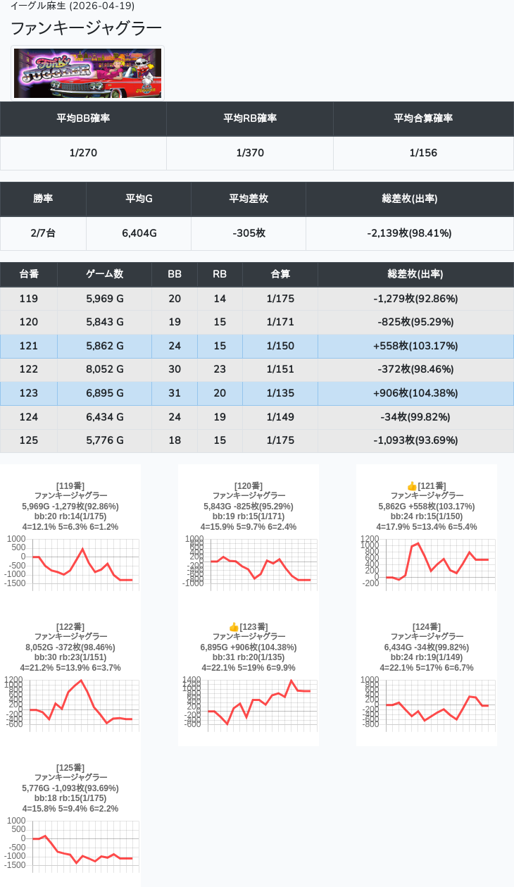 【オンサロ要望】 4月19日 イーグル麻生 -15,054枚 L真打吉宗 8/11台 L新鬼武者3 6/8台 L攻殻機動隊 6/10台