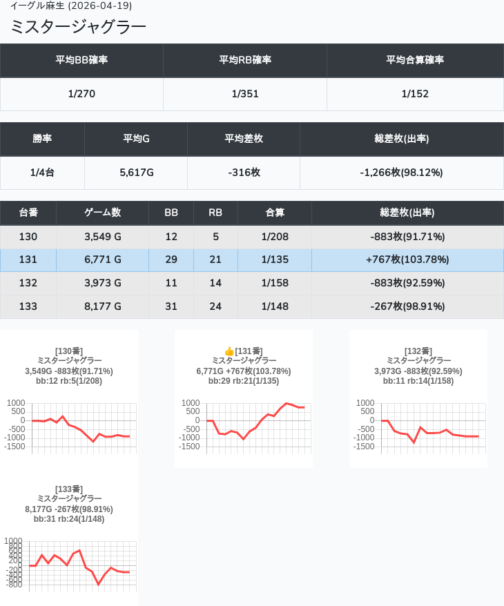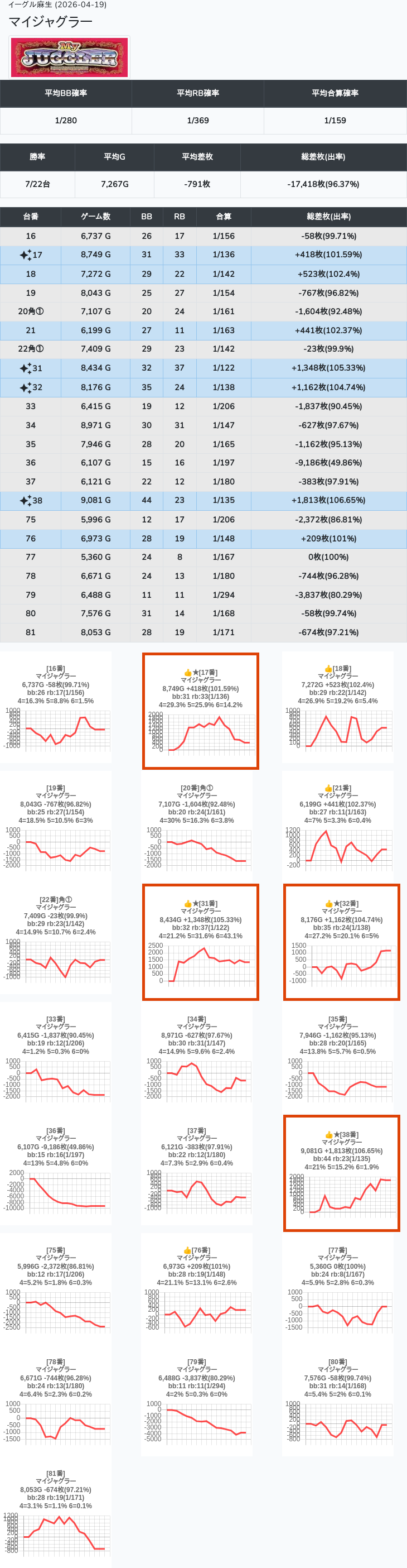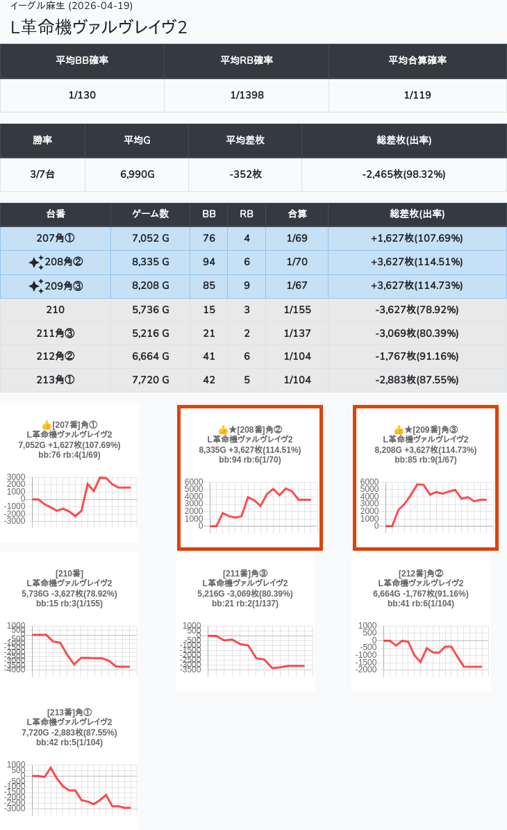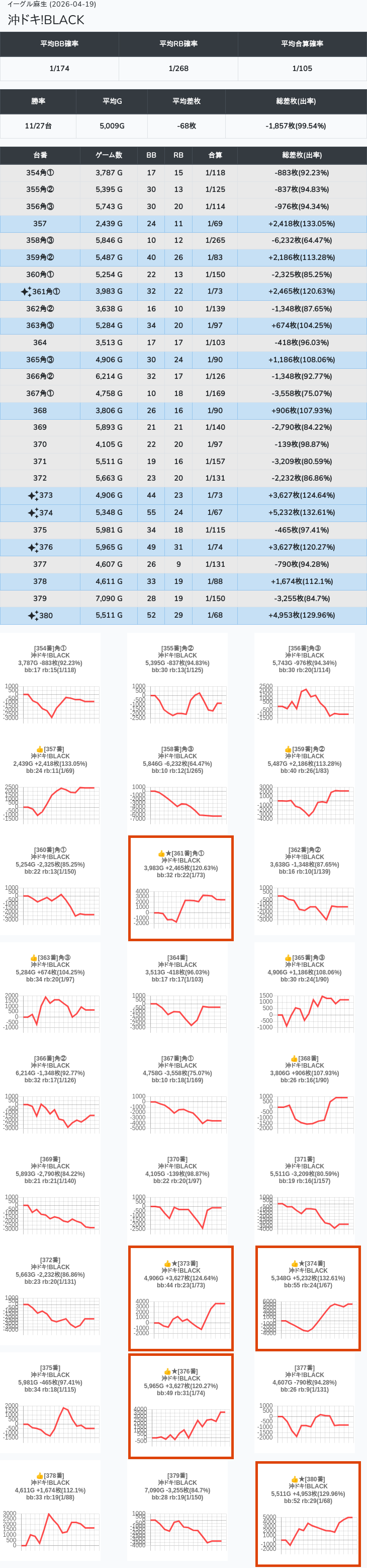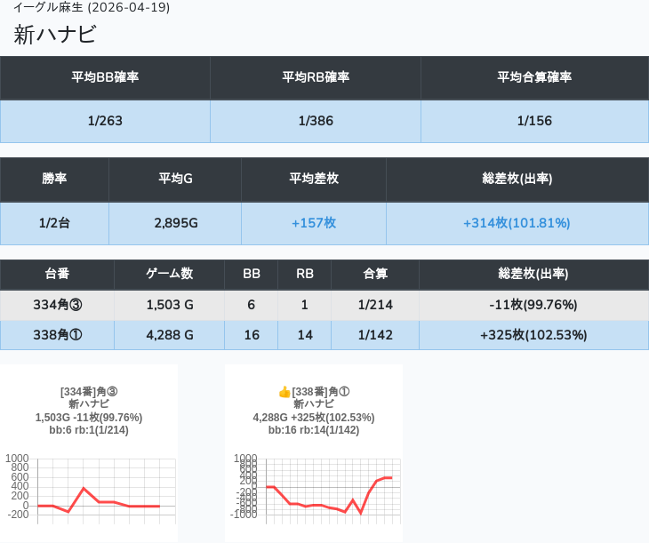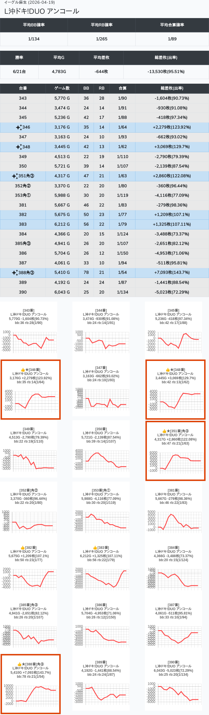 【オンサロ要望】 4月19日 イーグル麻生 -15,054枚 L真打吉宗 8/11台 L新鬼武者3 6/8台 L攻殻機動隊 6/10台