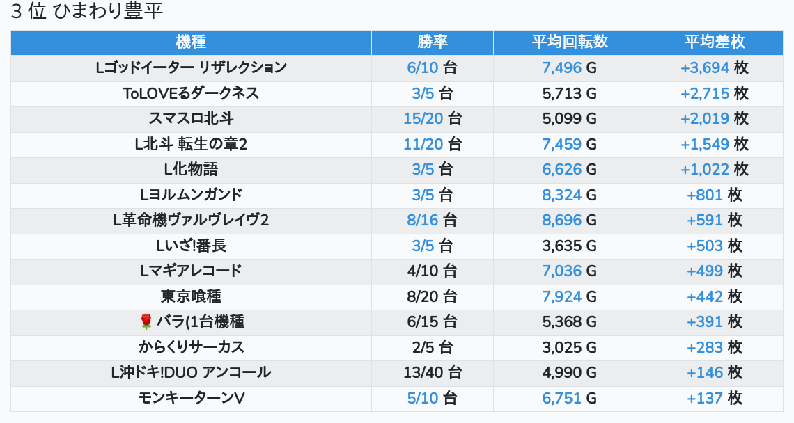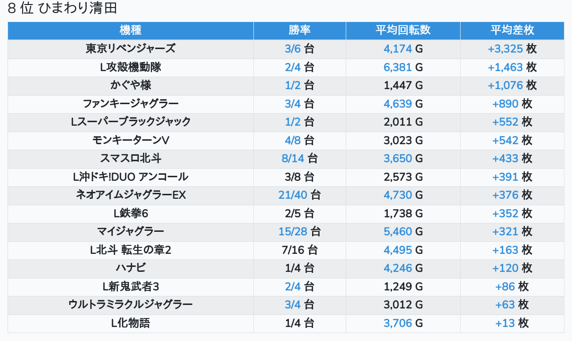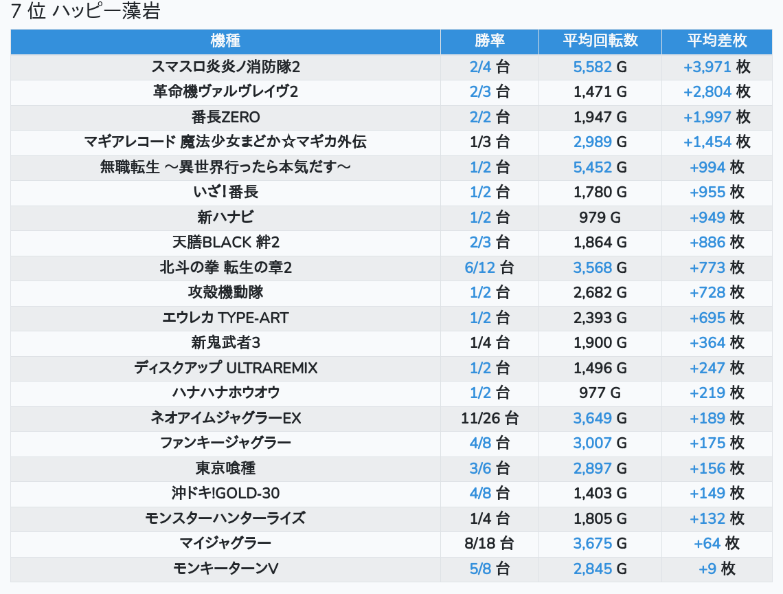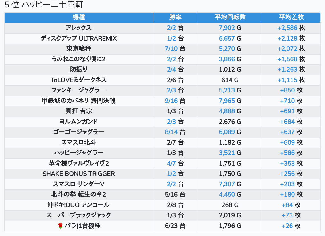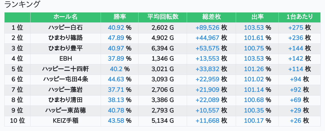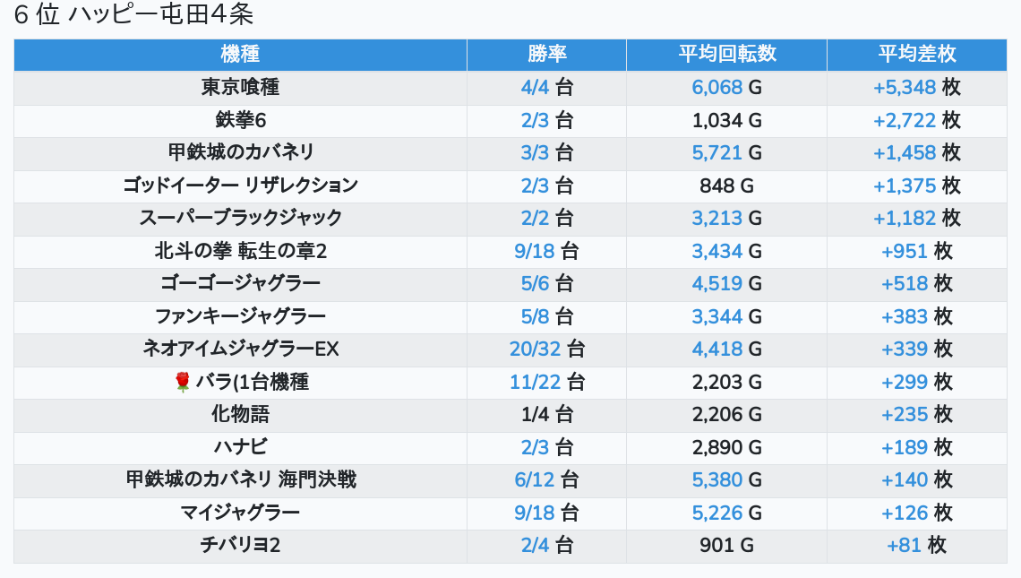 札幌ランキングの簡易データ 2026-04-20