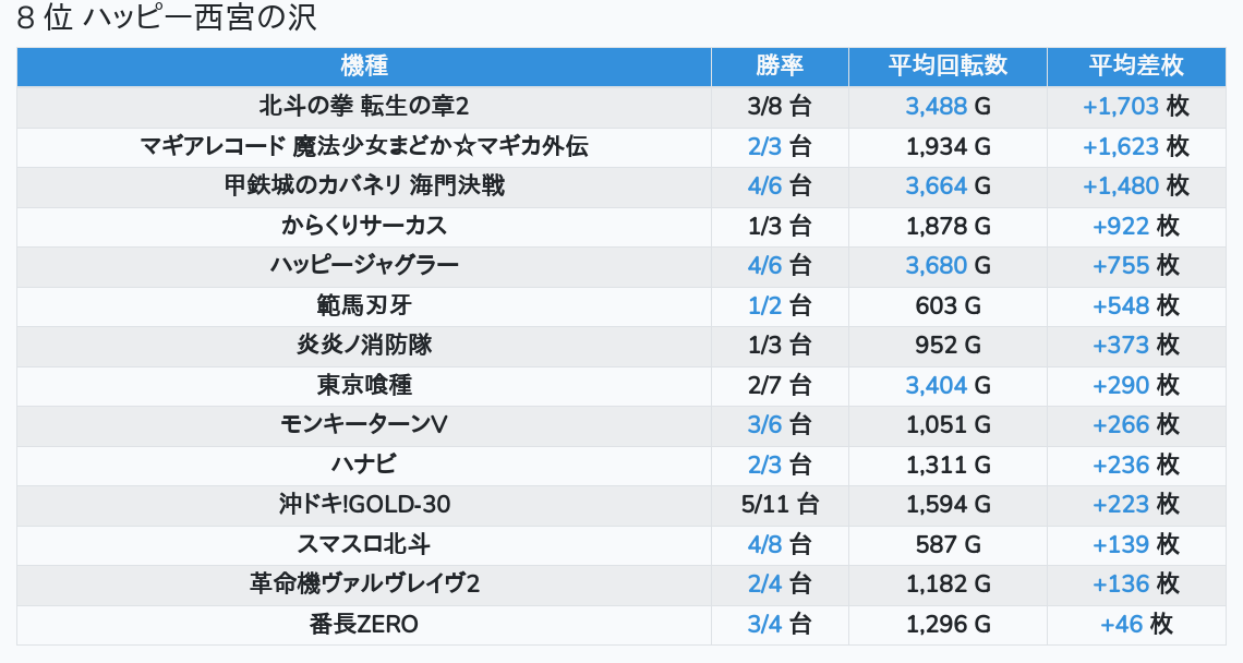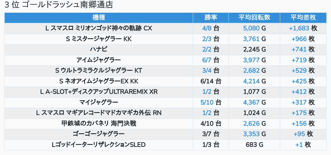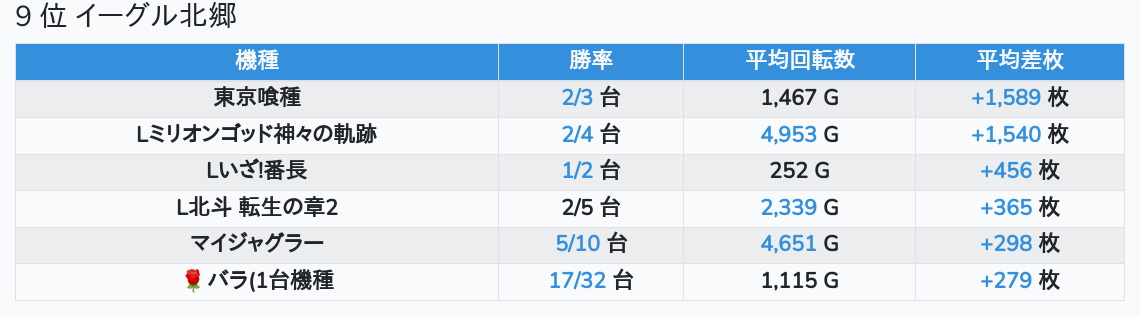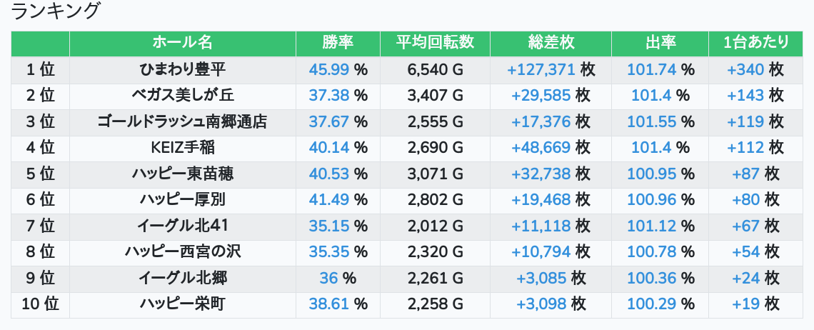 札幌ランキングの簡易データ 2026-04-23