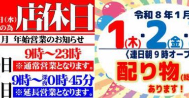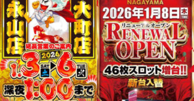 2026年1月3日札幌近郊ポスター一覧⭐パーラー太陽藤野 ⭐パーラー太陽南6条 ⭐パーラー太陽北24条 ⭐パーラー太陽苗穂本町 ⭐パーラー太陽平岸 ⭐パーラー太陽青葉 ゴールドラッシュ南郷通店 ゴールドラッシュ南郷通 ゴールデン大宝花川 ... -
