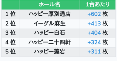 札幌ランキングの簡易データ 2026-01-19