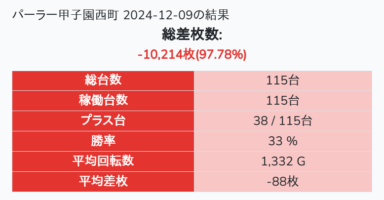 【オンサロ要望】 12月9日 パーラー甲子園西町 -10,214枚 ハッピージャグラー 3/4台
