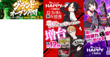 2025年12月5日札幌近郊ポスター一覧ゴールデン大宝川沿 ゴールデン大宝花川 ゾーン澄川 パーラー恵み野 ガイア 遊び工房恵庭 パーラー甲子園南郷通 SLOTBARM’s がちゃぽん新川 パーラー大和キング パーラージャパン遊パチ館 クラ... -