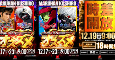 12月18日 マルハン琴似 +109,449枚 甲鉄城のカバネリ 12/20台 マイジャグラー 35/63台 ディスクアップ 5/6台 -