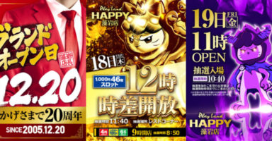2025年12月18日札幌圏外ポスター一覧⭐ハッピー本通り ⭐プレイランドハッピー三光 ⭐ハッピー三光 ⭐ライジング帯広 パーラー太陽釧路星が浦 パーラー太陽山下通 パーラー太陽中標津 パーラー太陽帯広 アーリーバード春採 パチンコジャイアン... -